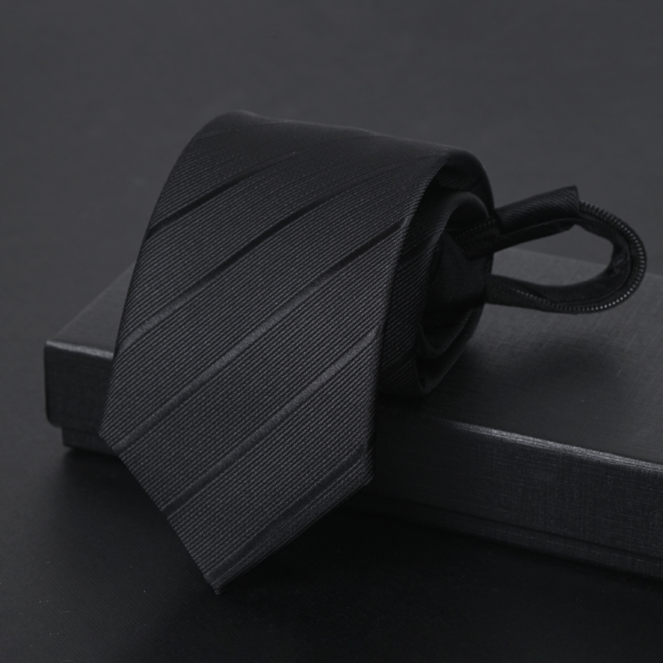 7CM 지퍼 넥타이 신랑 웨딩 타이 블랙 그레이 대각선 스트라이프 세트 액세서리 넥타이 무료 도매 재고