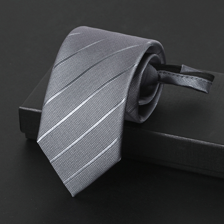 7CM 지퍼 넥타이 신랑 웨딩 타이 블랙 그레이 대각선 스트라이프 세트 액세서리 넥타이 무료 도매 재고스토어 가기