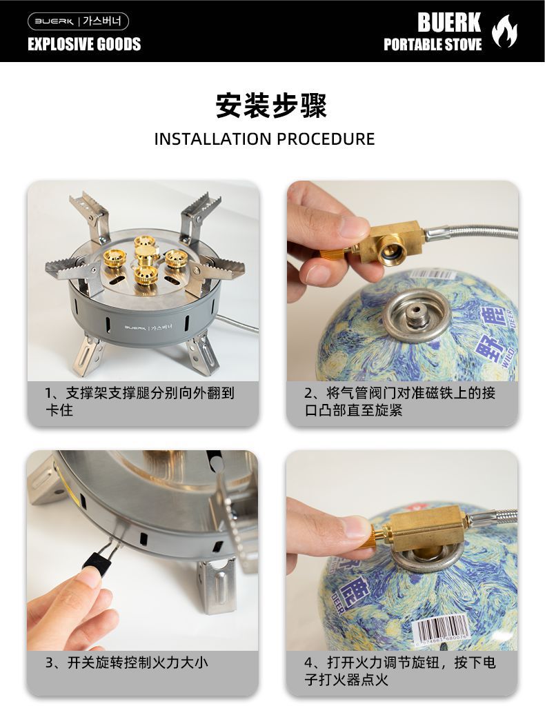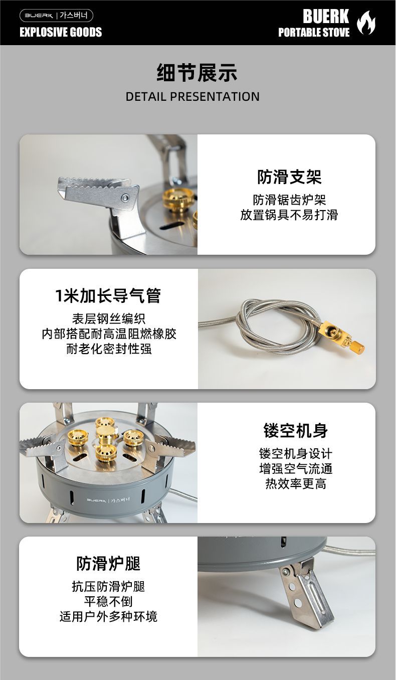휴대용 5 성급 스토브 야외 스토브 캠핑 야외 방풍 가스 스토브 맹렬한 화재 카드 스토브 도매스토어 가기