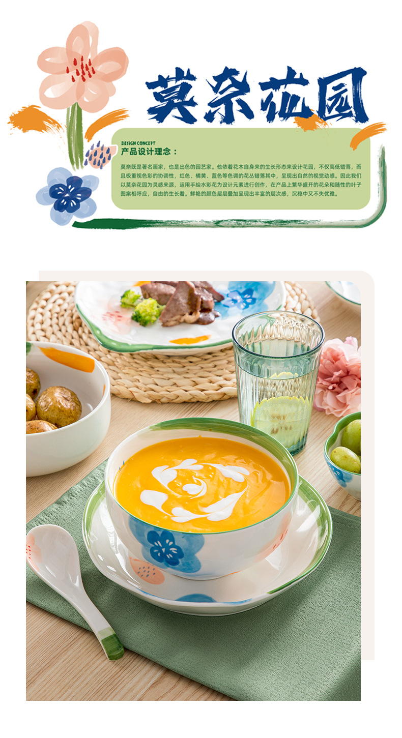도매 모네 정원 일본 목가적 스타일 세라믹 밥 그릇 맛 접시 에 높은 색상 가치 Chaozhou 식기 세트스토어 가기