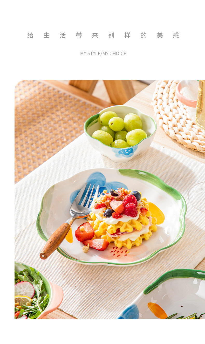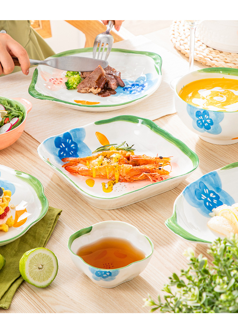도매 모네 정원 일본 목가적 스타일 세라믹 밥 그릇 맛 접시 에 높은 색상 가치 Chaozhou 식기 세트