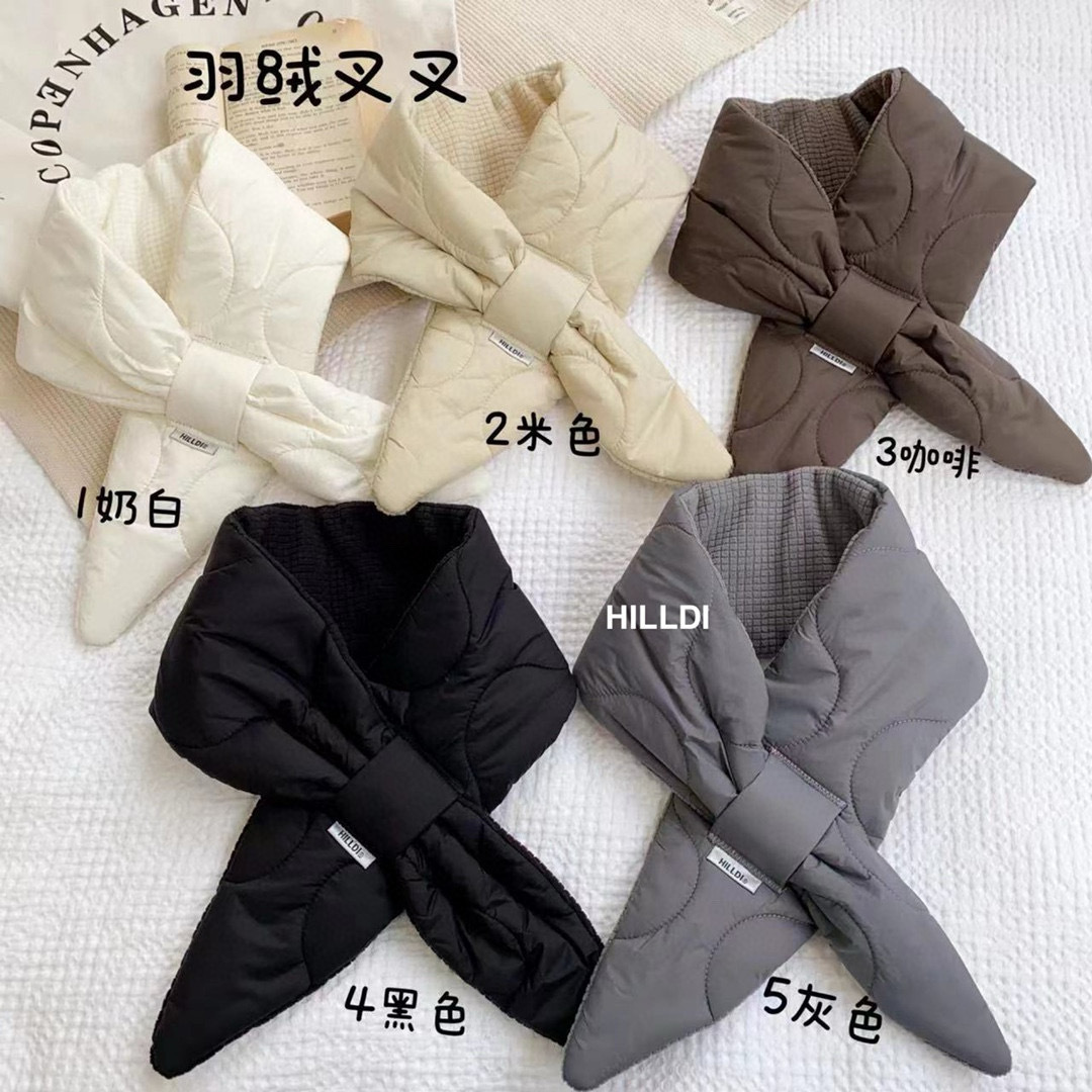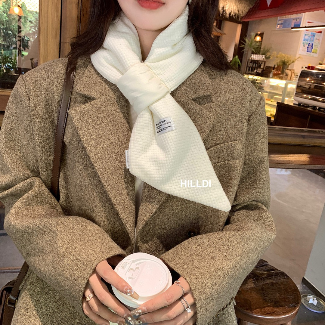 새로운 다운 코튼 크로스 스카프 가을과 겨울 한국 스타일 심플 올 매치 두꺼운 따뜻한 장식 목 보호 작은 스카프 숄