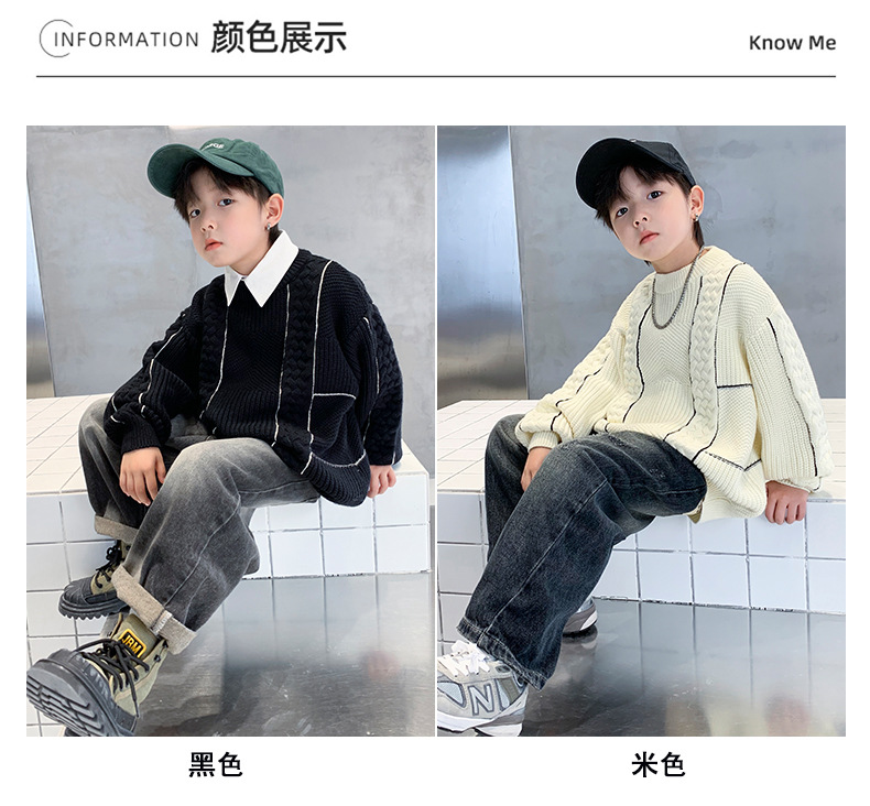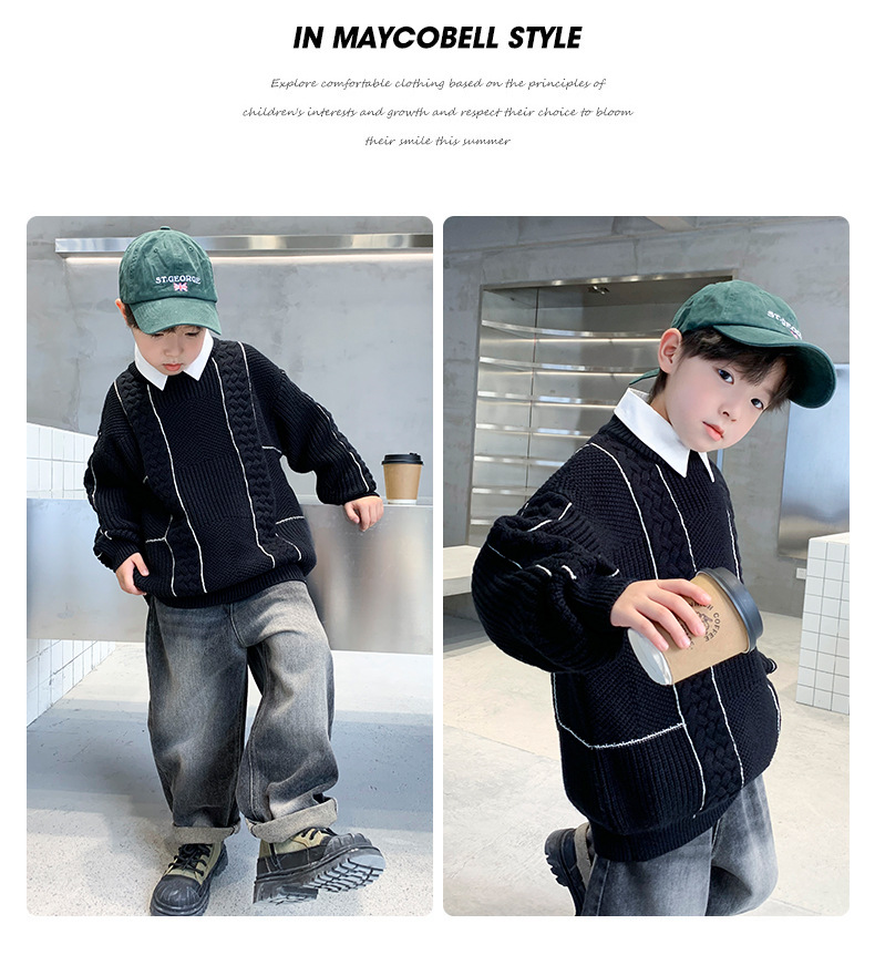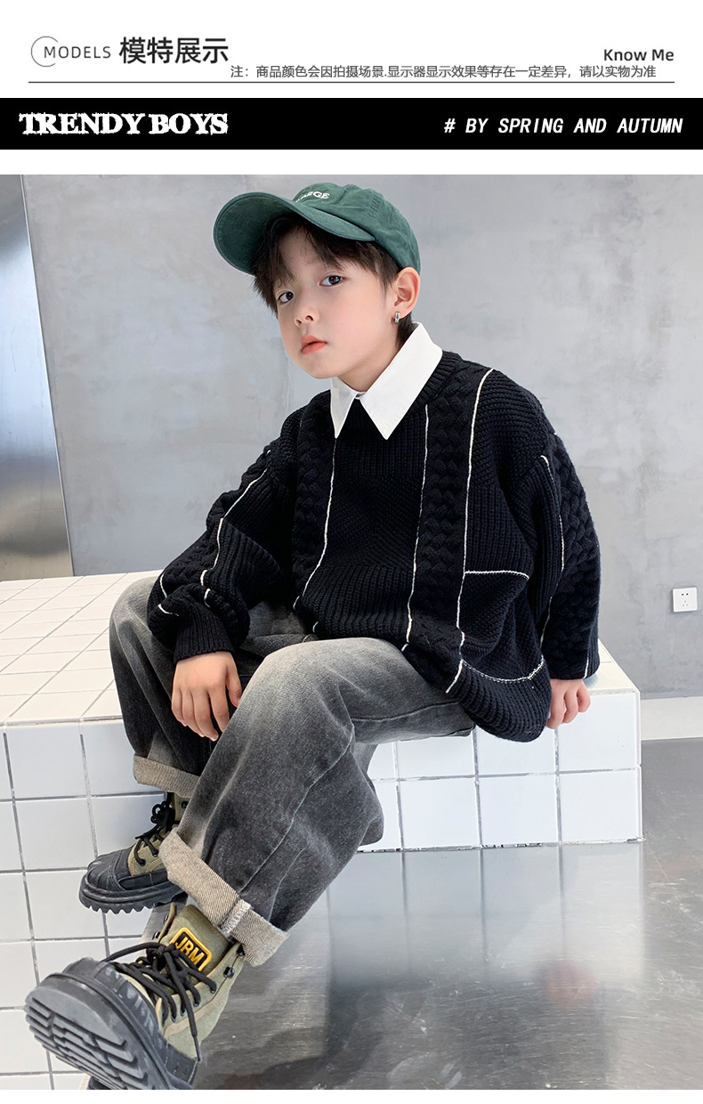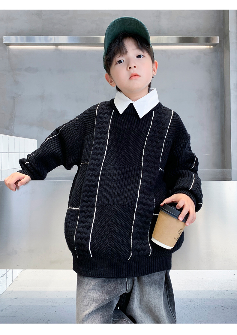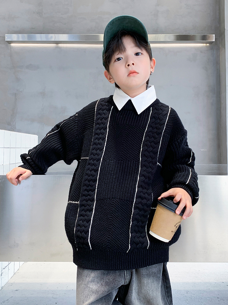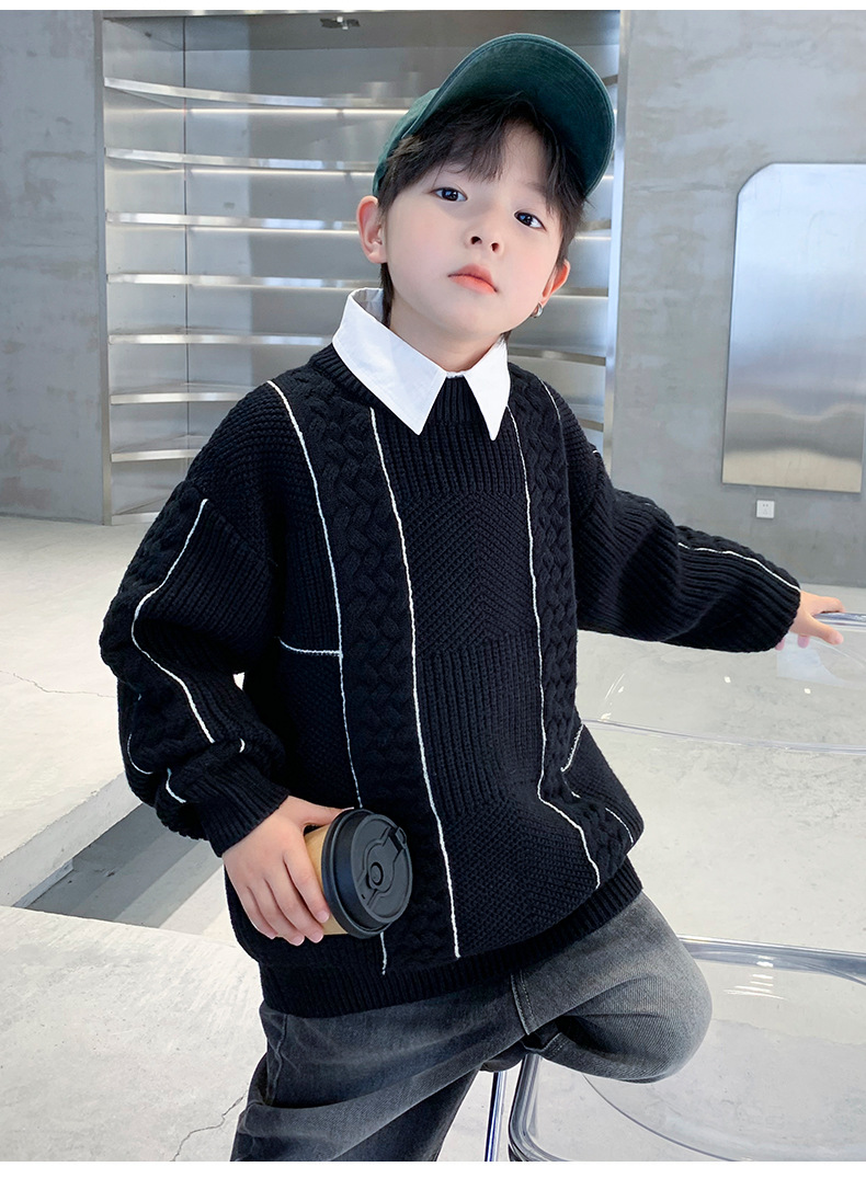 아동복 소년 스웨터 가을 겨울 2025 새로운 멋진 소년 아동 니트 스웨터 겨울 기본 레이어 탑스토어 가기