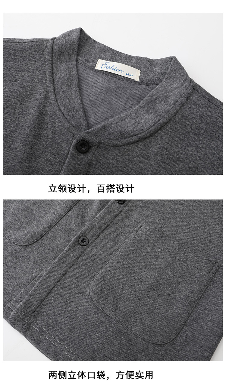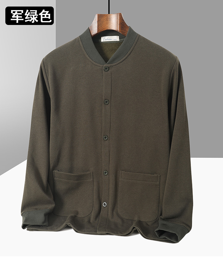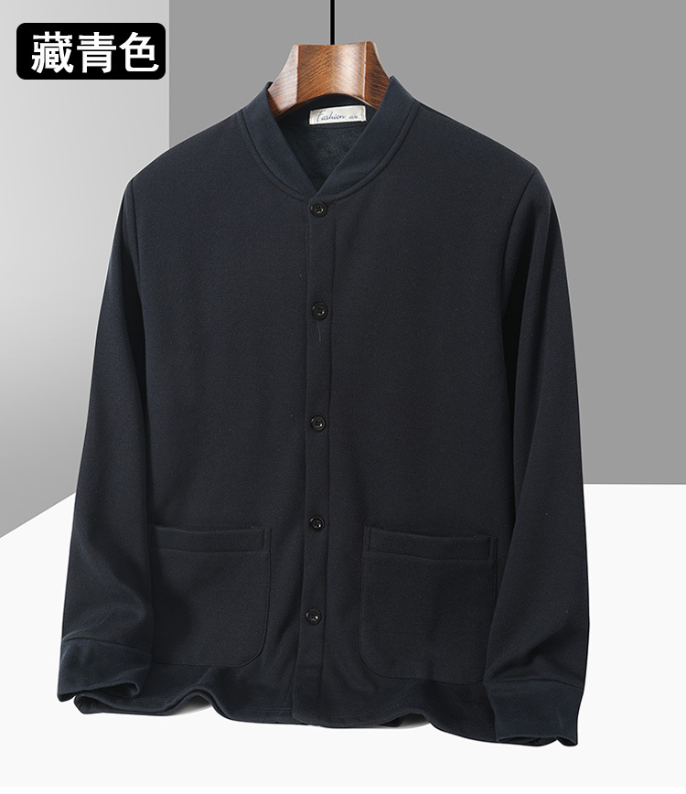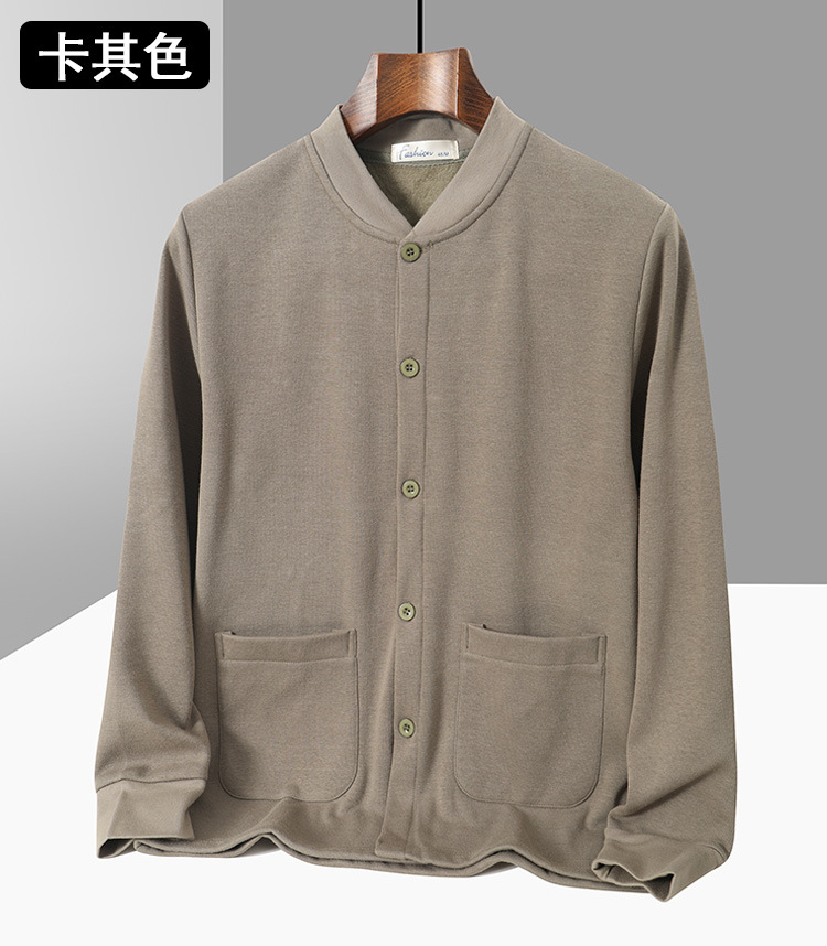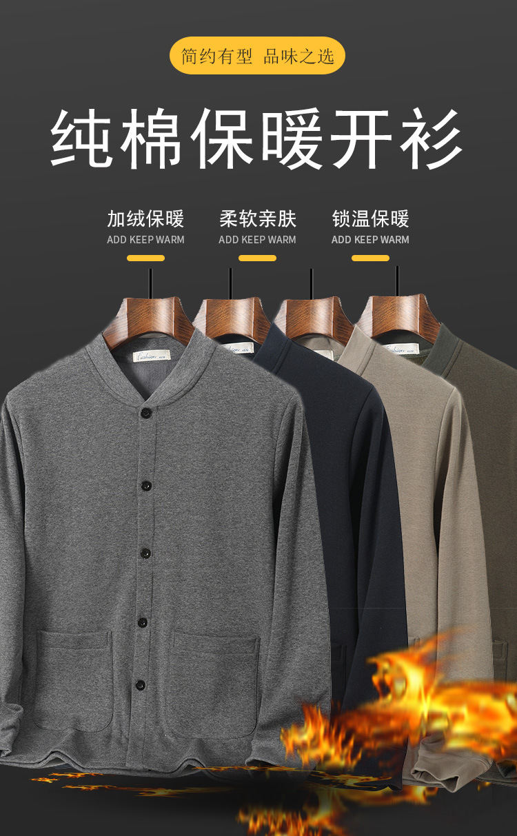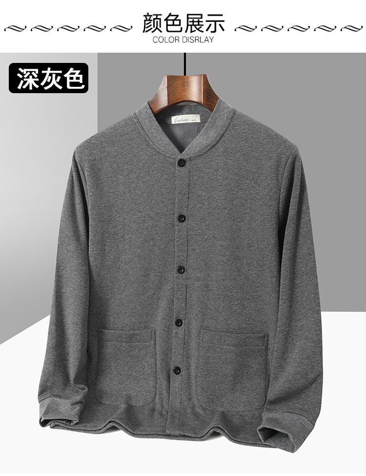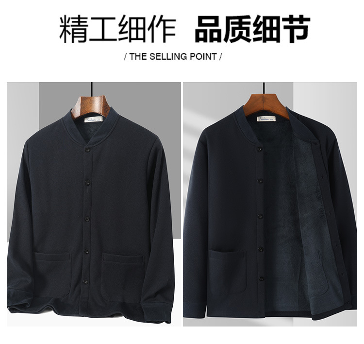 아빠의 카디건 면 기모 긴팔 티셔츠 가을과 겨울 중년 및 노인 남성의 따뜻한 탑 할아버지 두꺼운베이스 셔츠스토어 가기