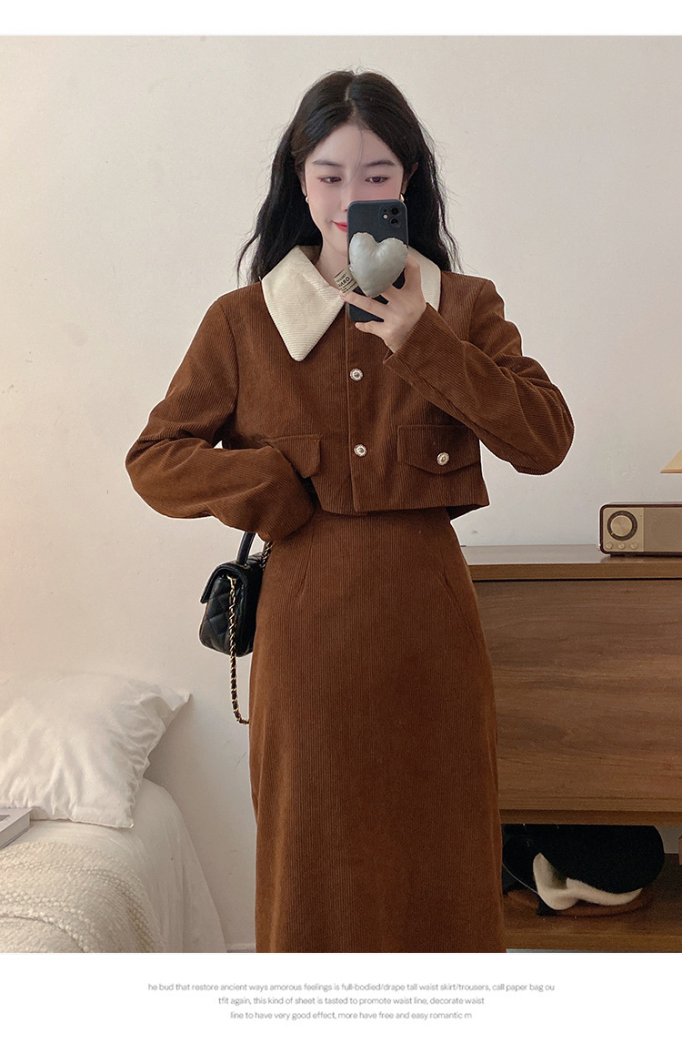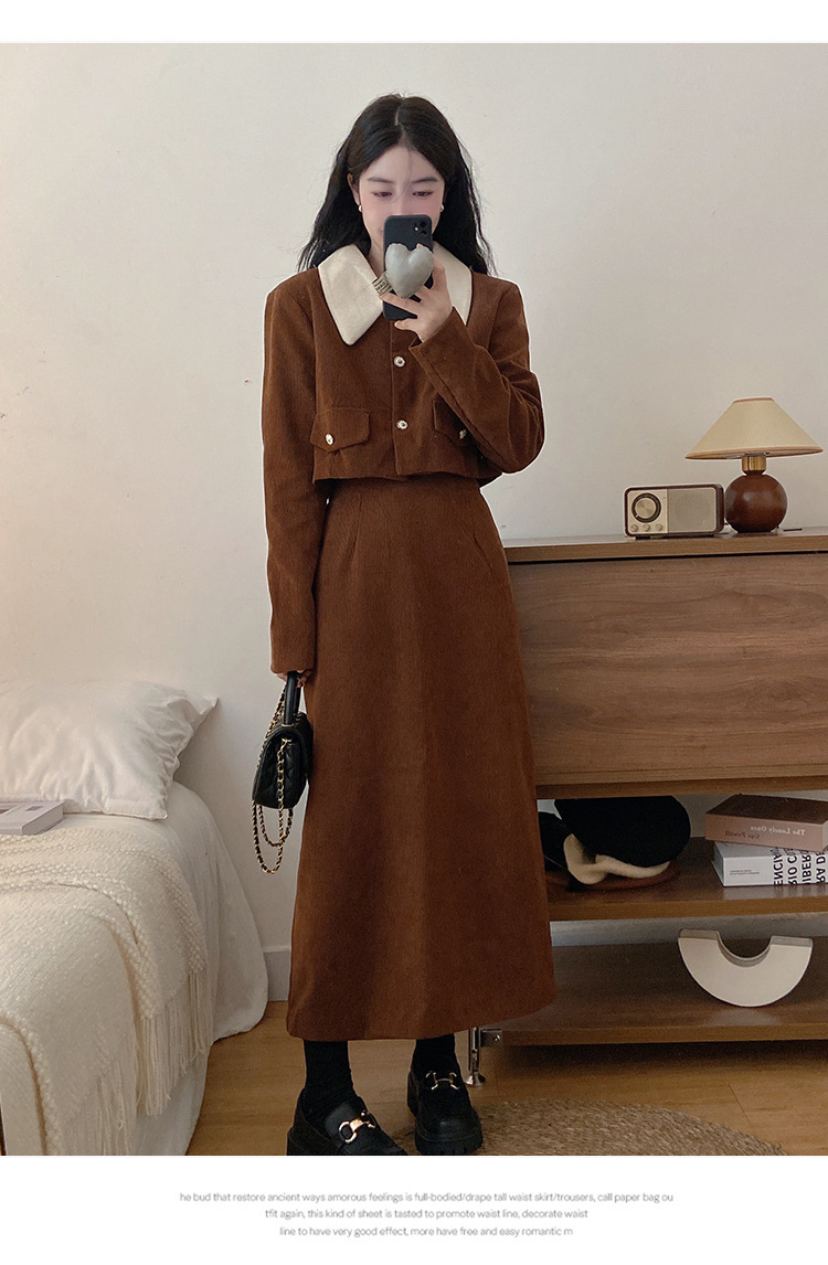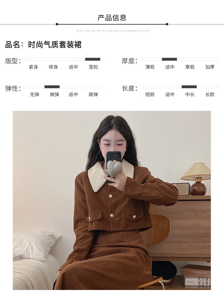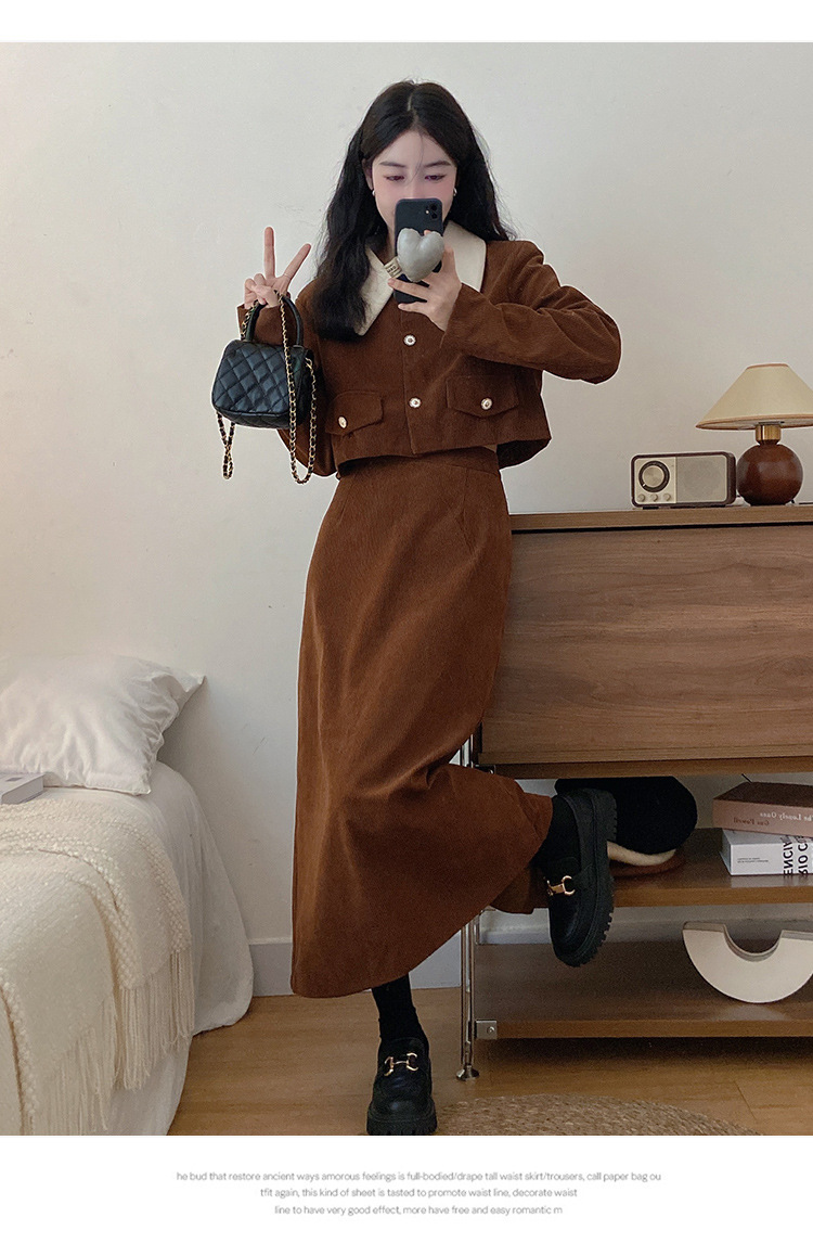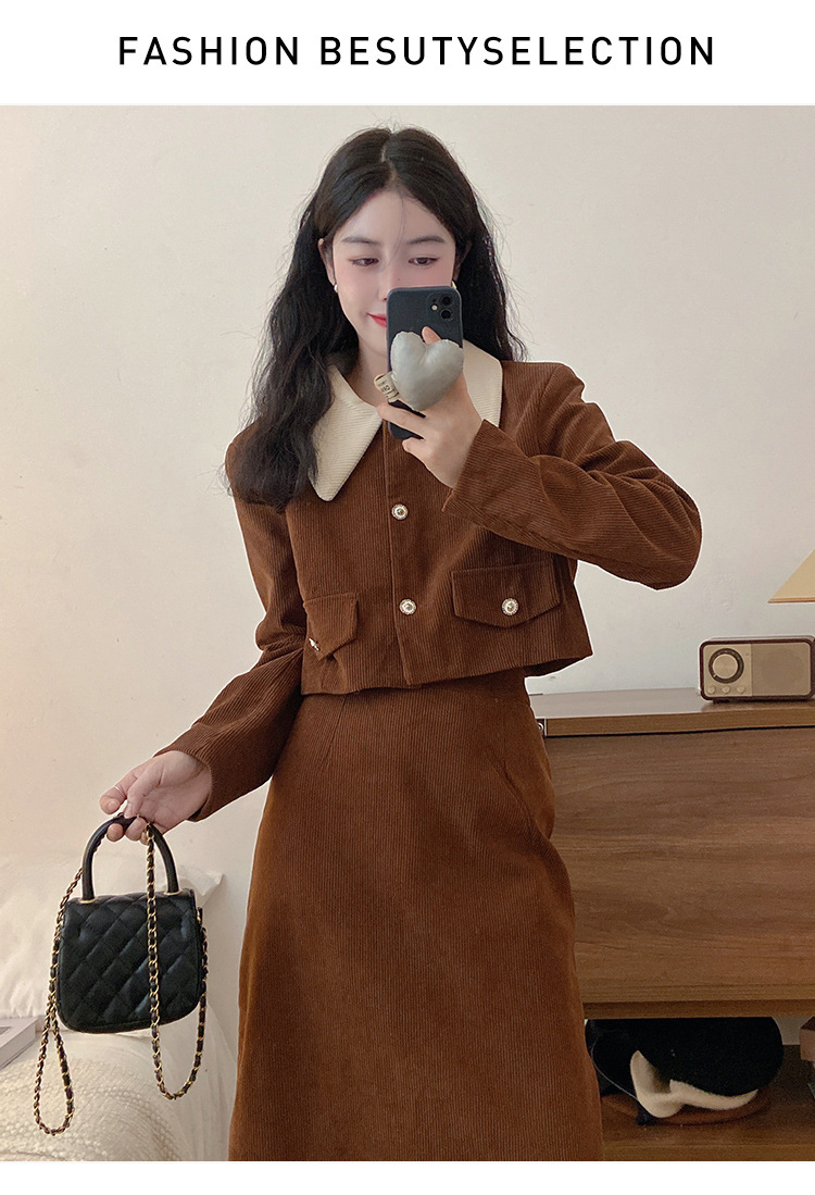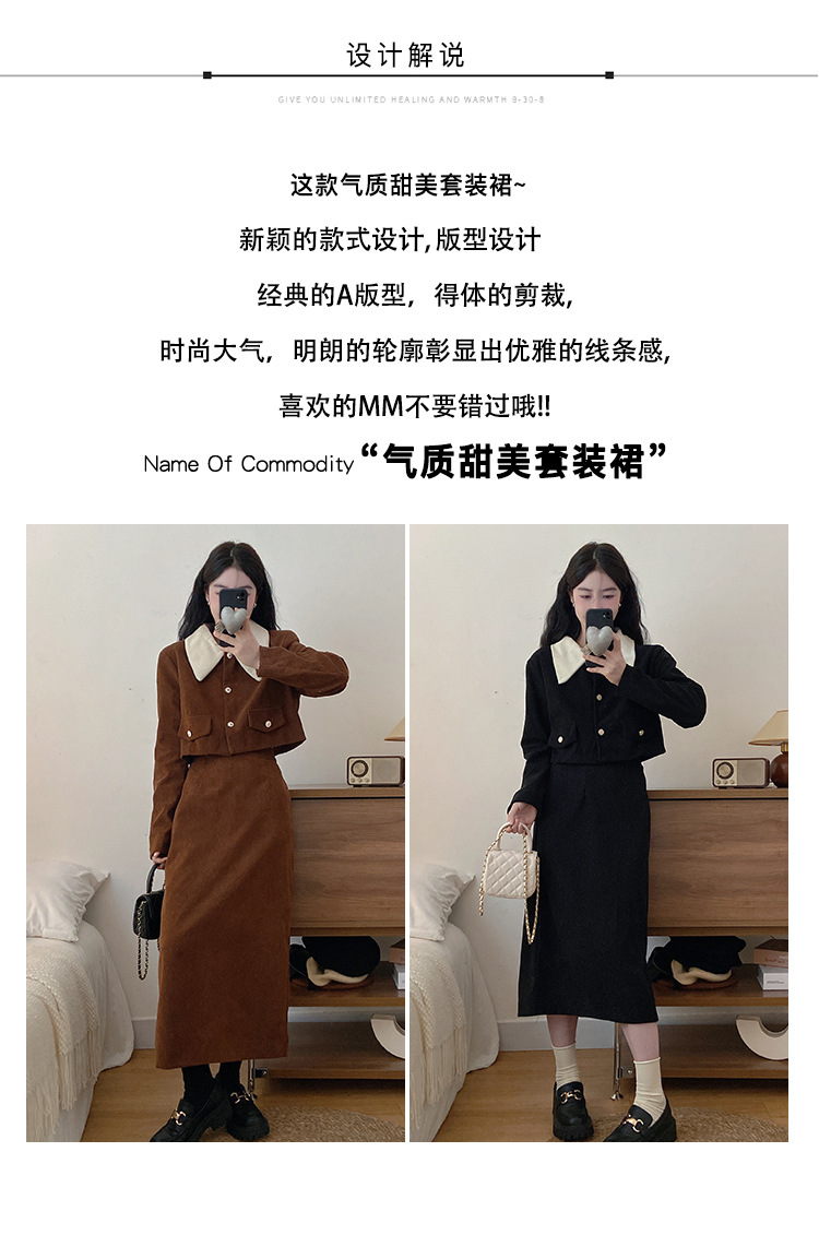 2025 봄과 가을 새로운 스타일 뚱뚱한 소녀 코듀로이 패션 재킷 작은 향기 슈트 스커트 트렌디 한 여성용 투피스 세트스토어 가기