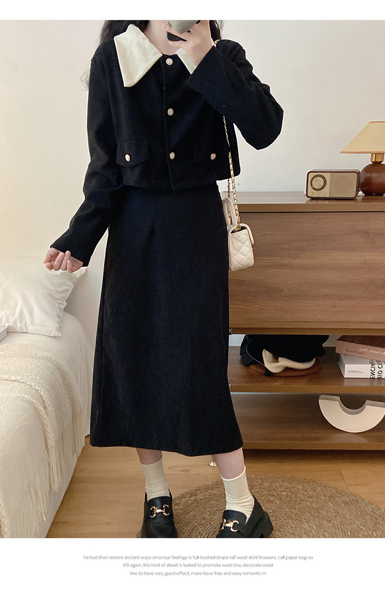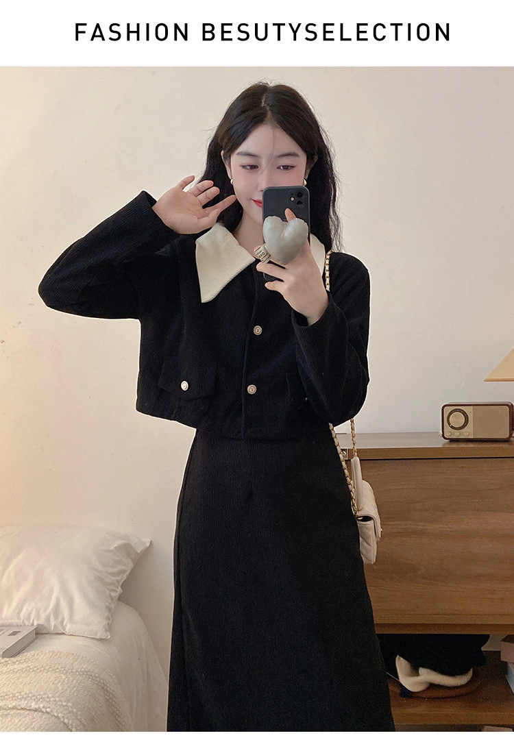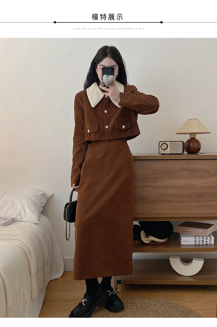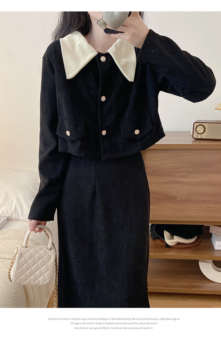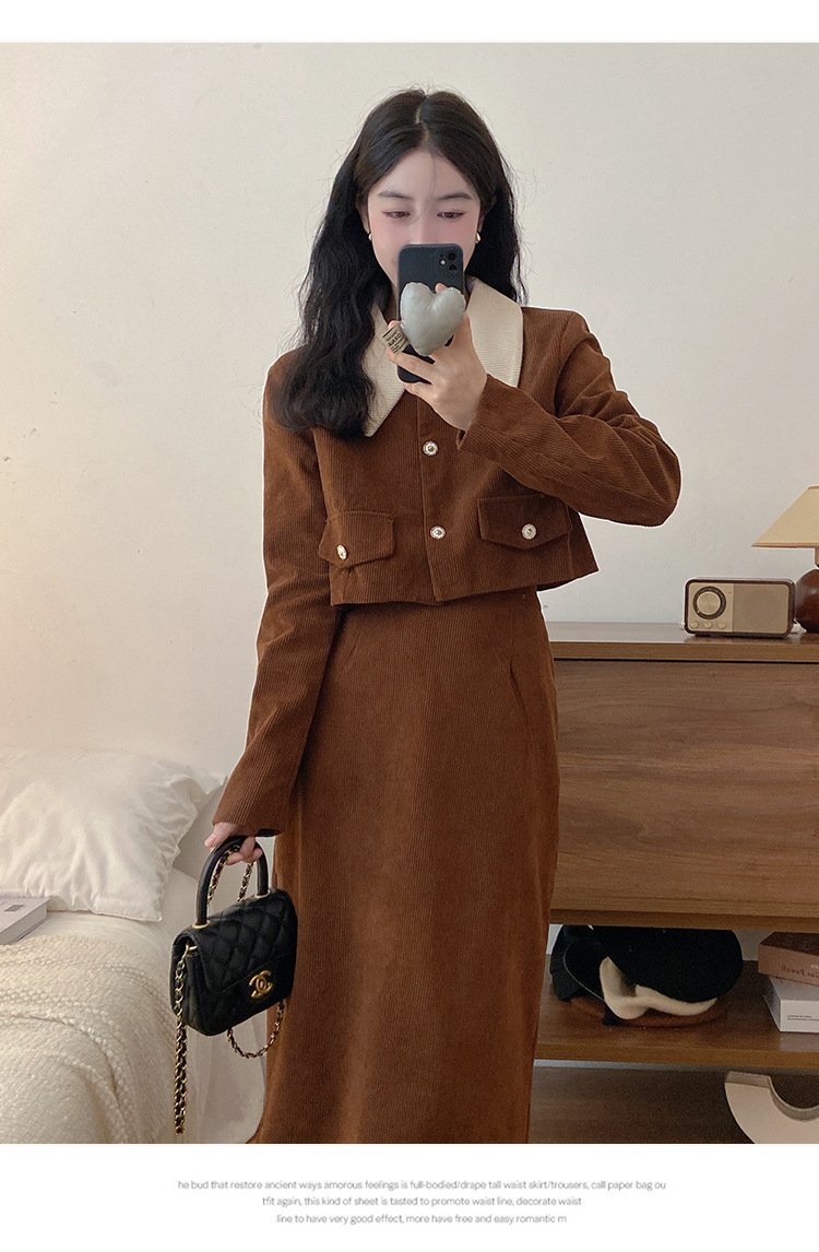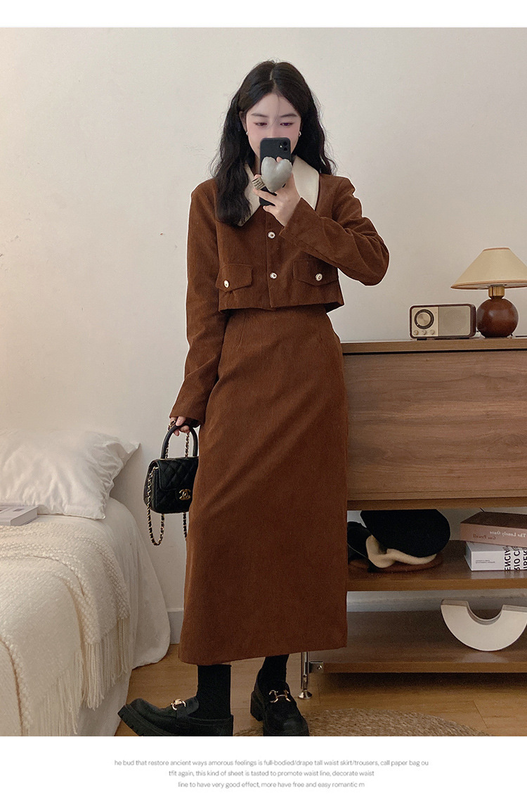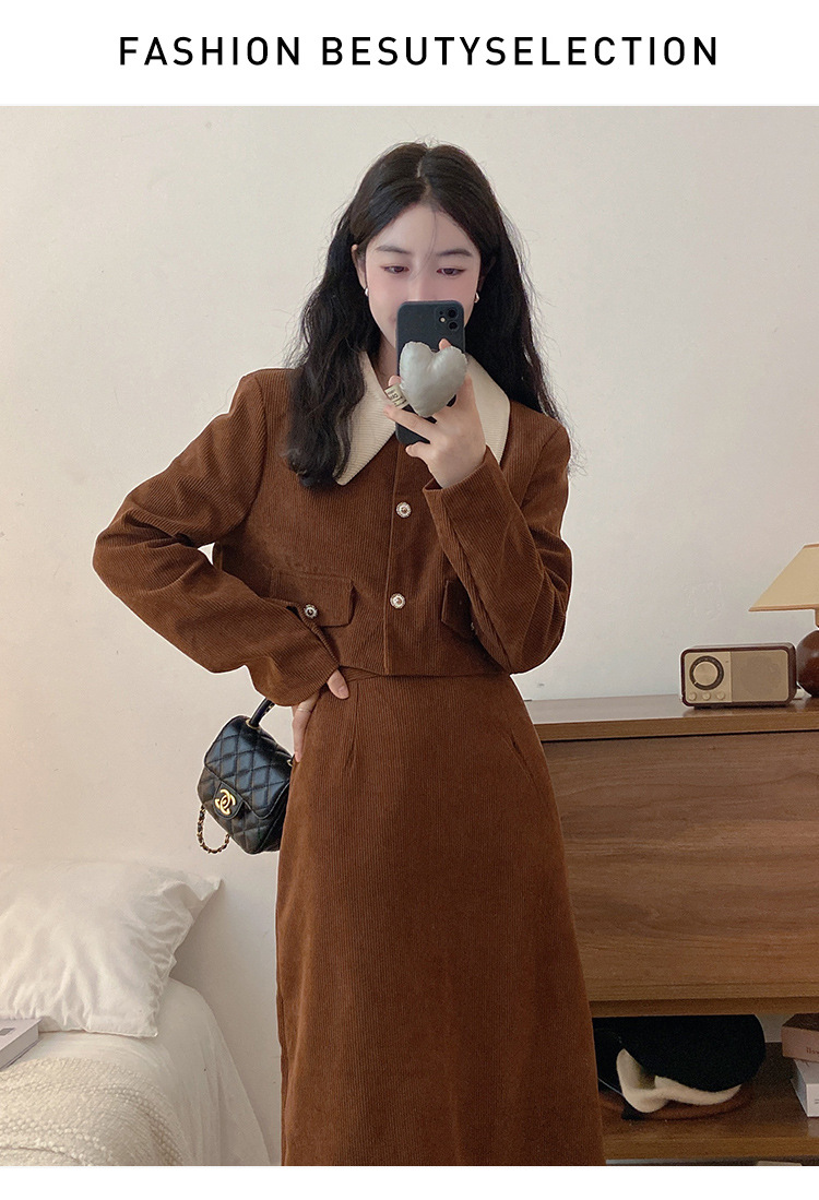 2025 봄과 가을 새로운 스타일 뚱뚱한 소녀 코듀로이 패션 재킷 작은 향기 슈트 스커트 트렌디 한 여성용 투피스 세트스토어 가기