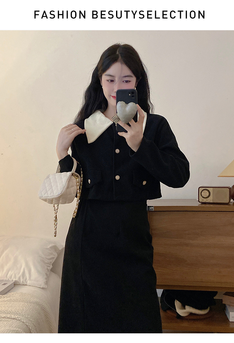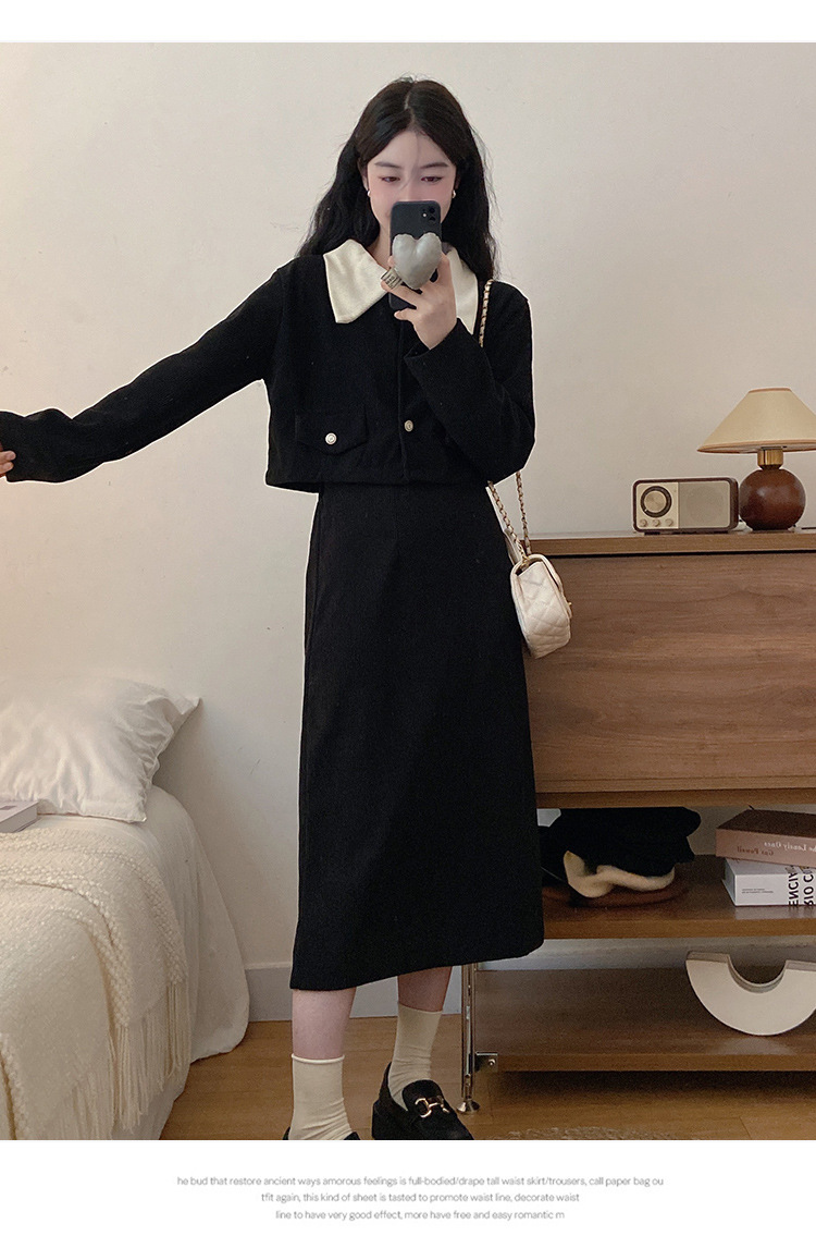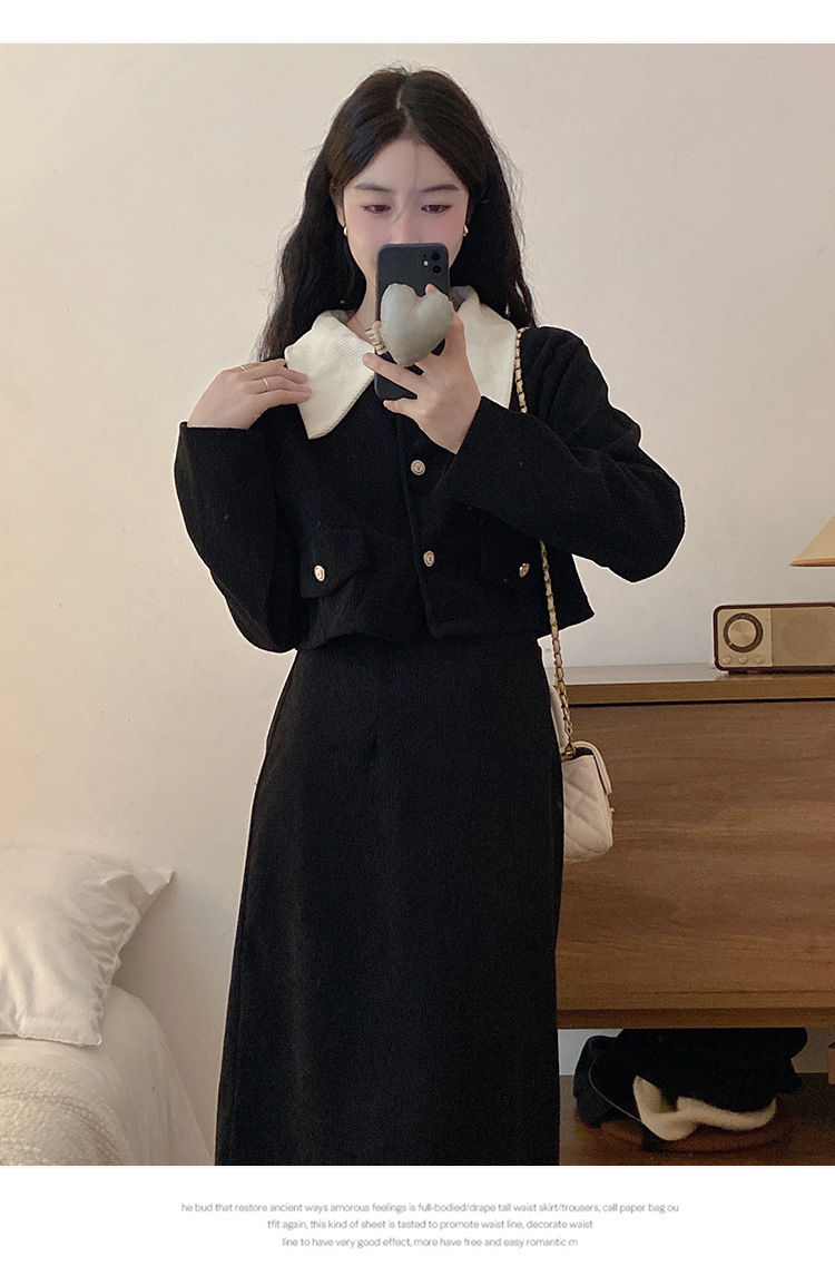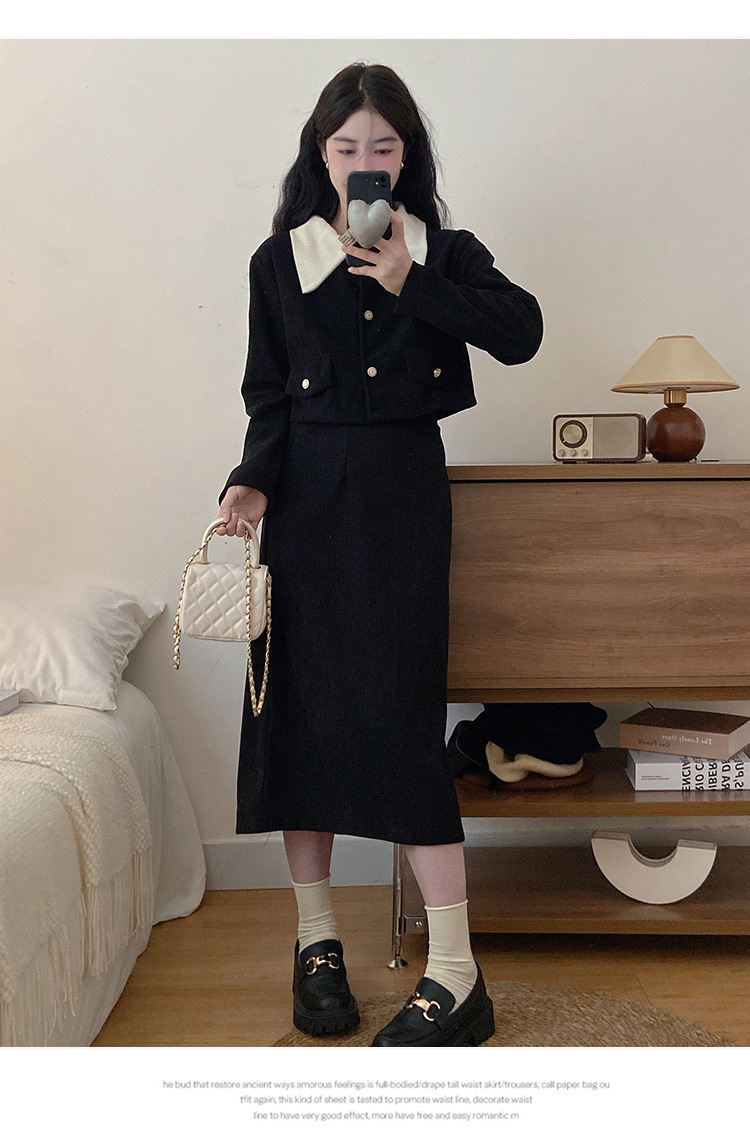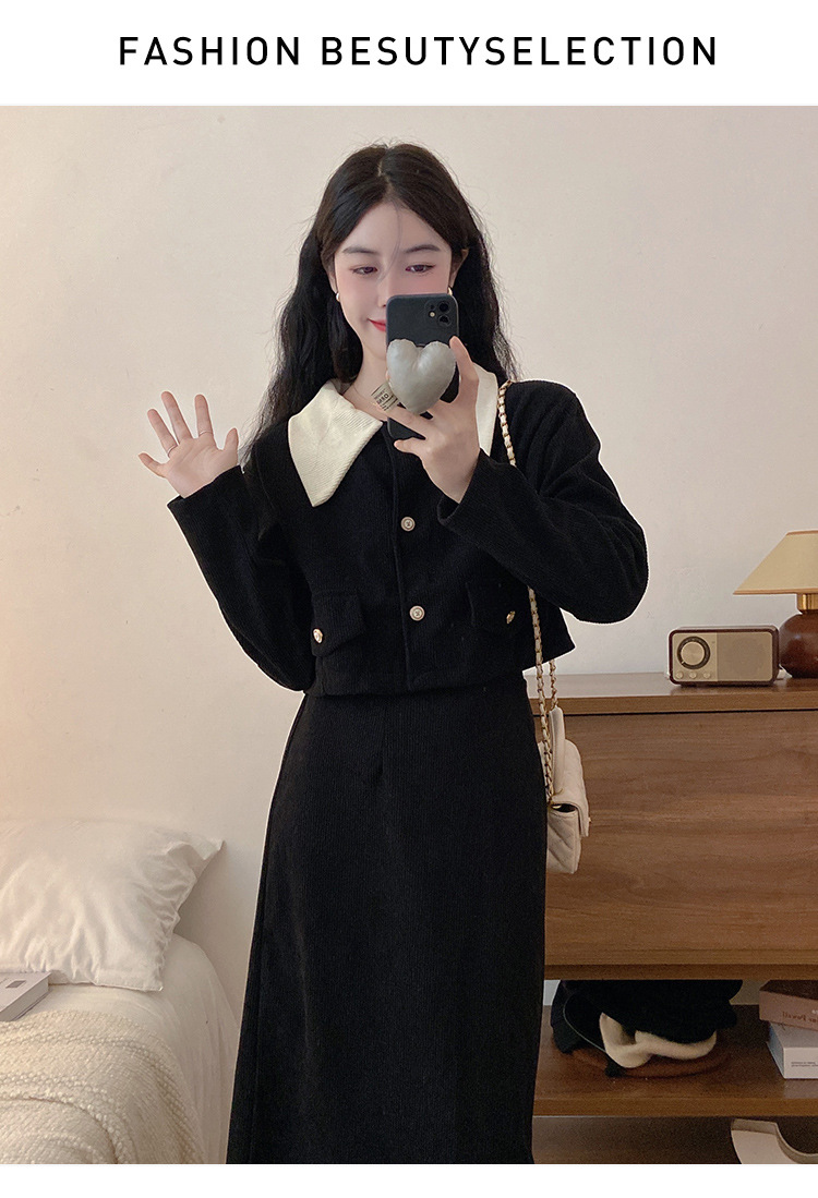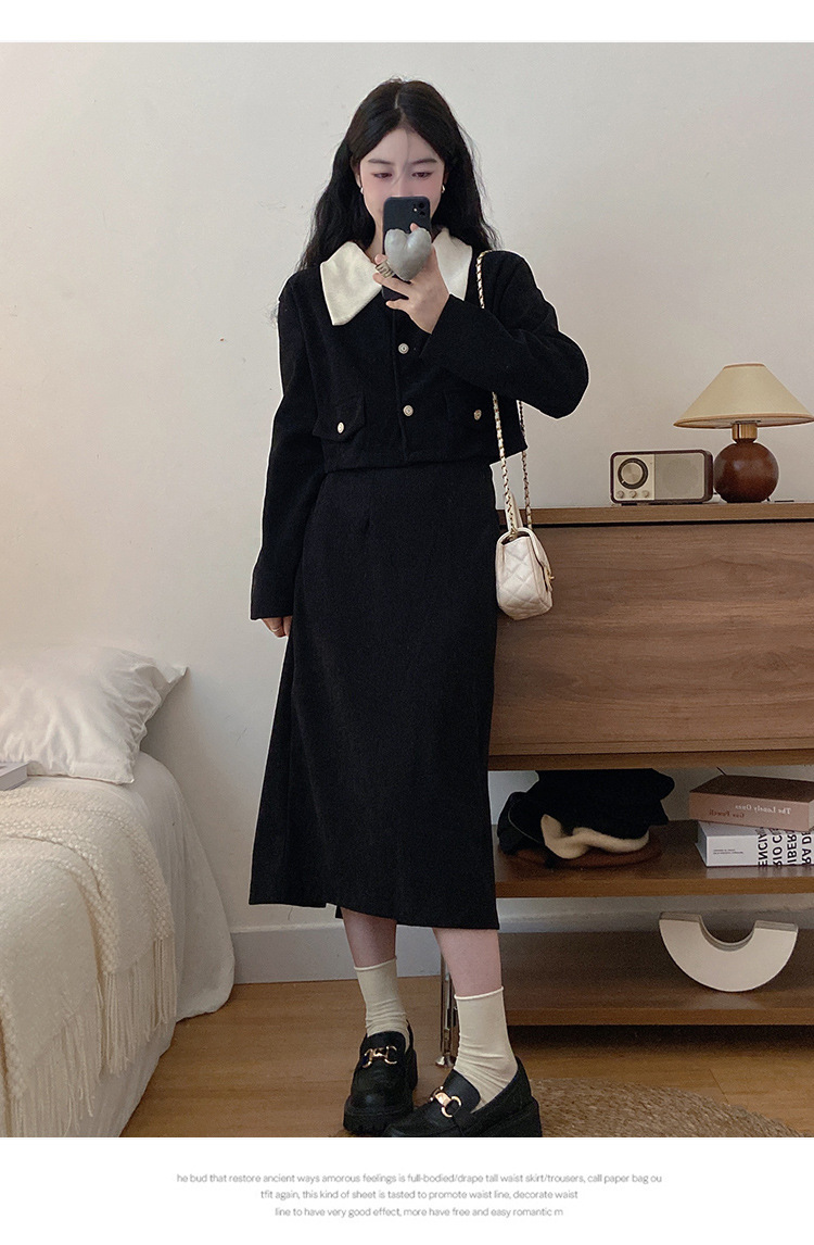 2025 봄과 가을 새로운 스타일 뚱뚱한 소녀 코듀로이 패션 재킷 작은 향기 슈트 스커트 트렌디 한 여성용 투피스 세트스토어 가기