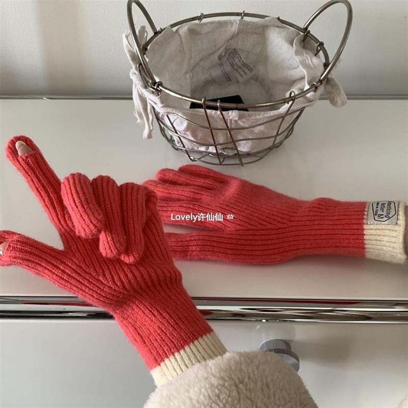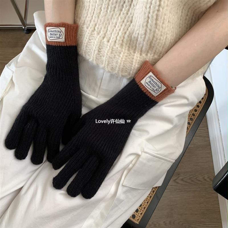 Ouqi in Blogger 색상 일치 따뜻한 동결 방지 여성 대비 컬러 터치 스크린 손가락 다섯 손가락 장갑 가을과 겨울에 모든 일치