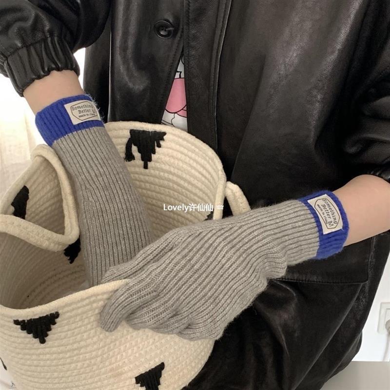 Ouqi in Blogger 색상 일치 따뜻한 동결 방지 여성 대비 컬러 터치 스크린 손가락 다섯 손가락 장갑 가을과 겨울에 모든 일치스토어 가기