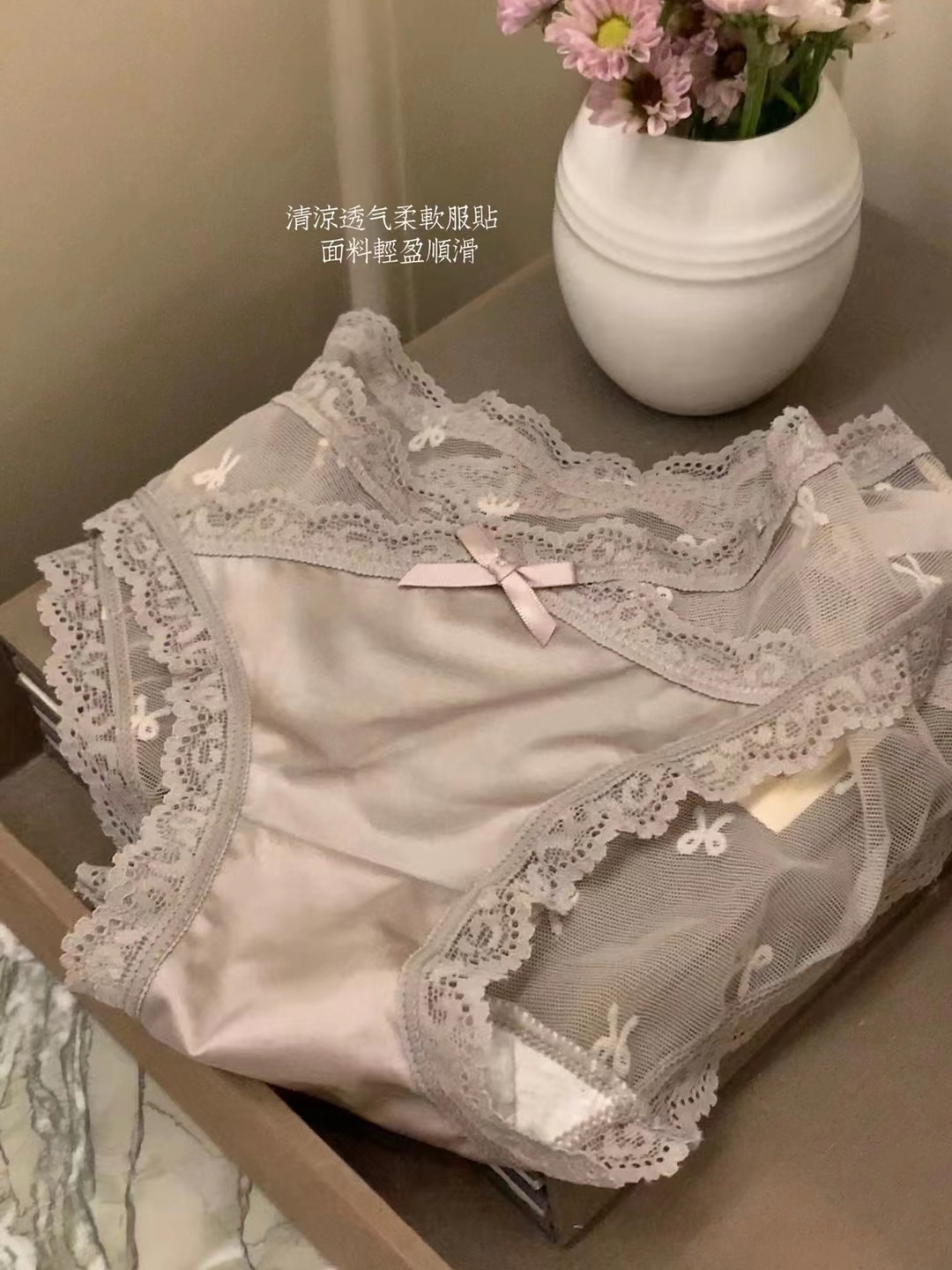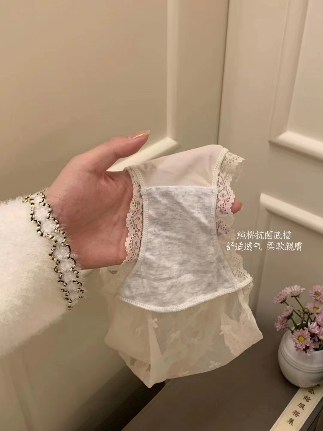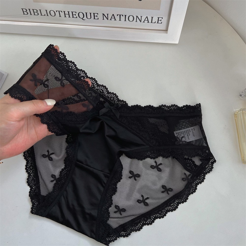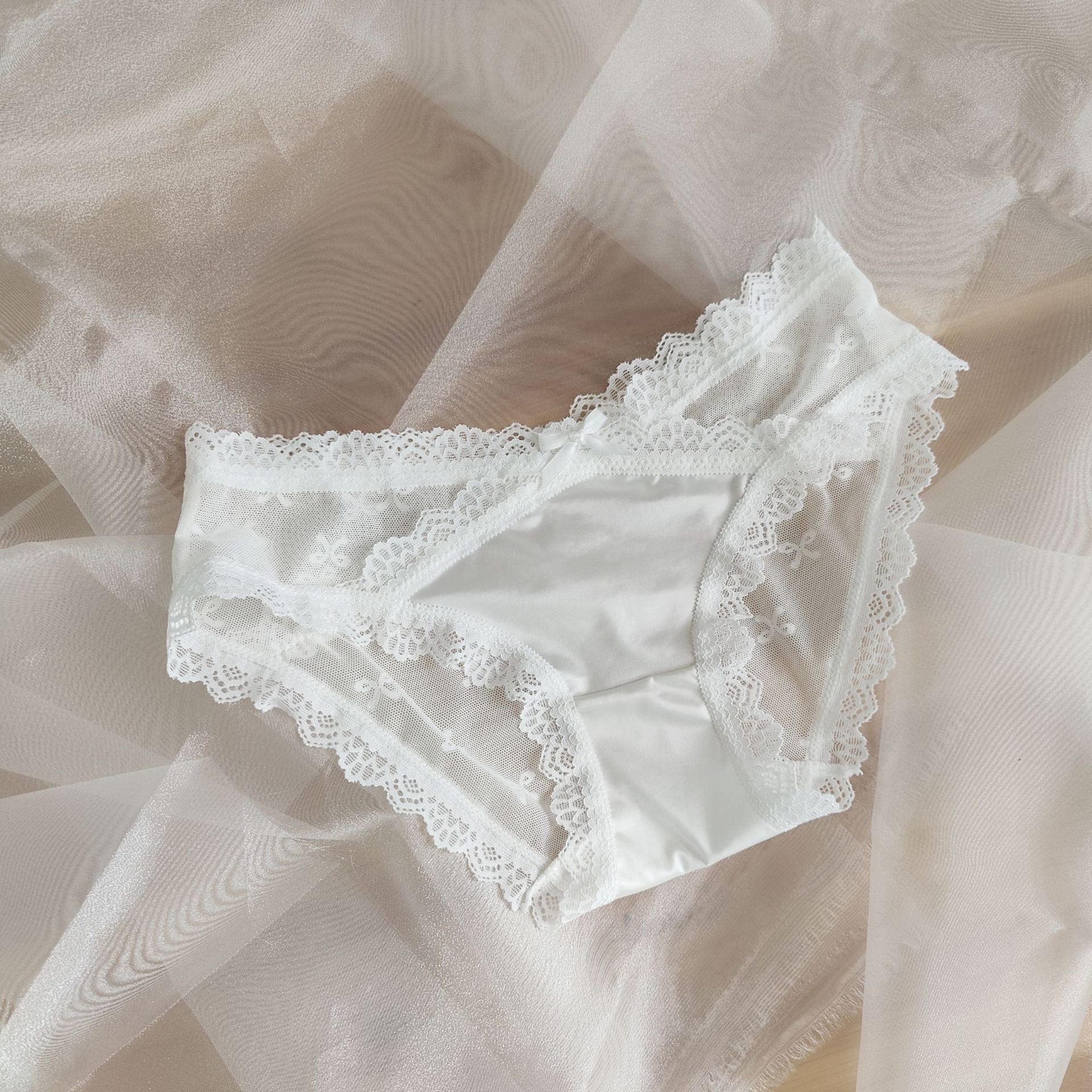 프랑스 레이스 순수한 욕망 속옷 여자의 낮은 허리 순수한 욕망 투명 중공 메쉬 소녀를위한 흰색 팬티