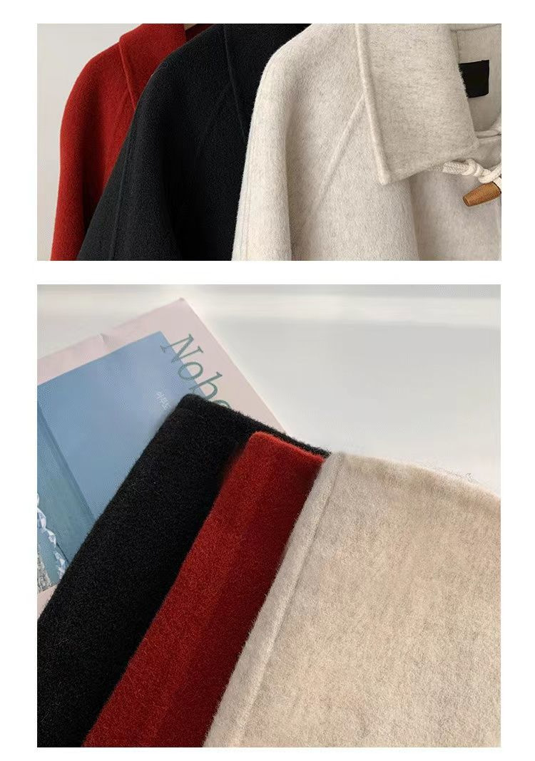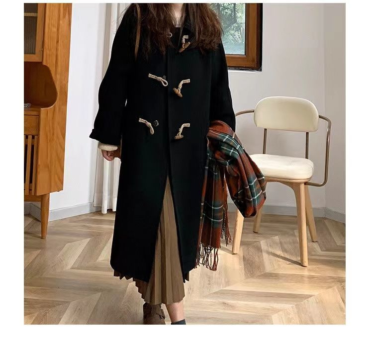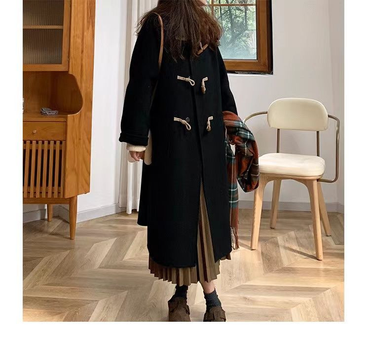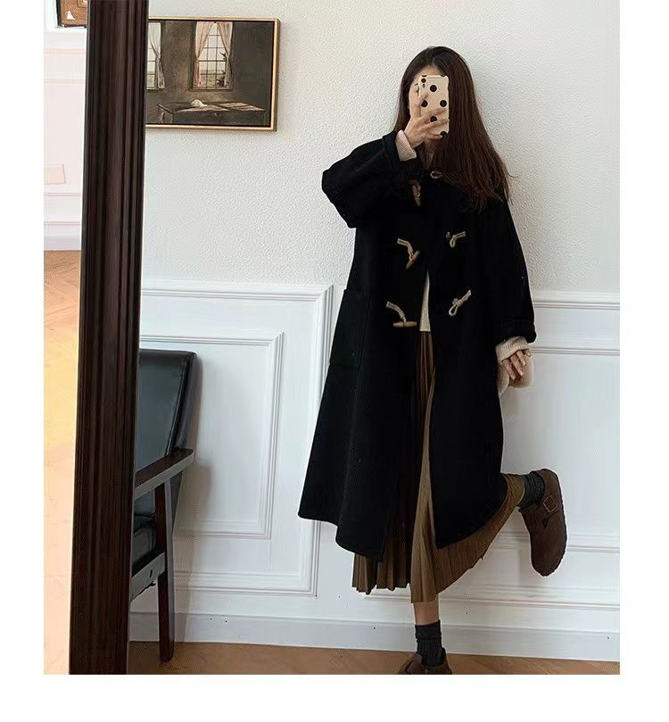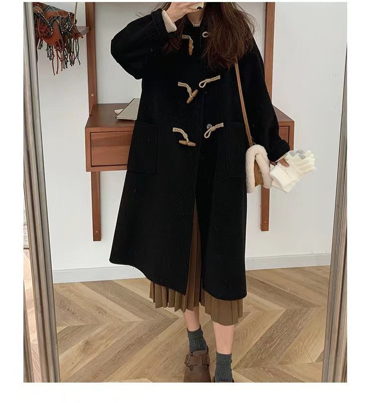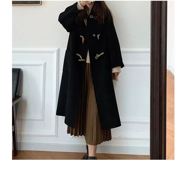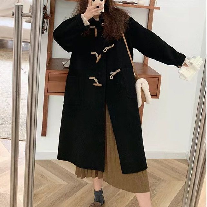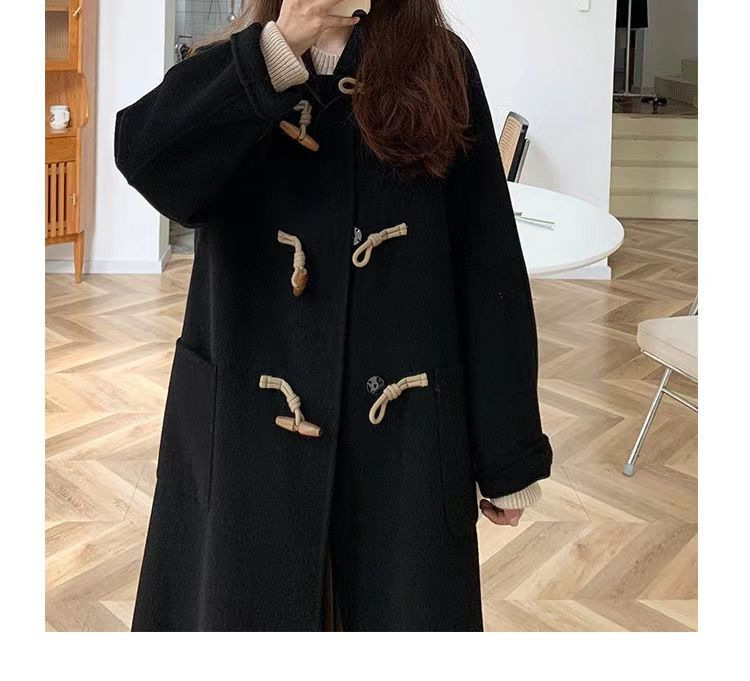 검은 일본 옥수수 단추 모직 코트 여자의 2023 가을과 겨울 새로운 스타일 작은 두꺼운 대학 스타일 모직 코트스토어 가기