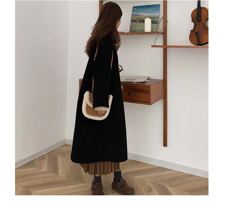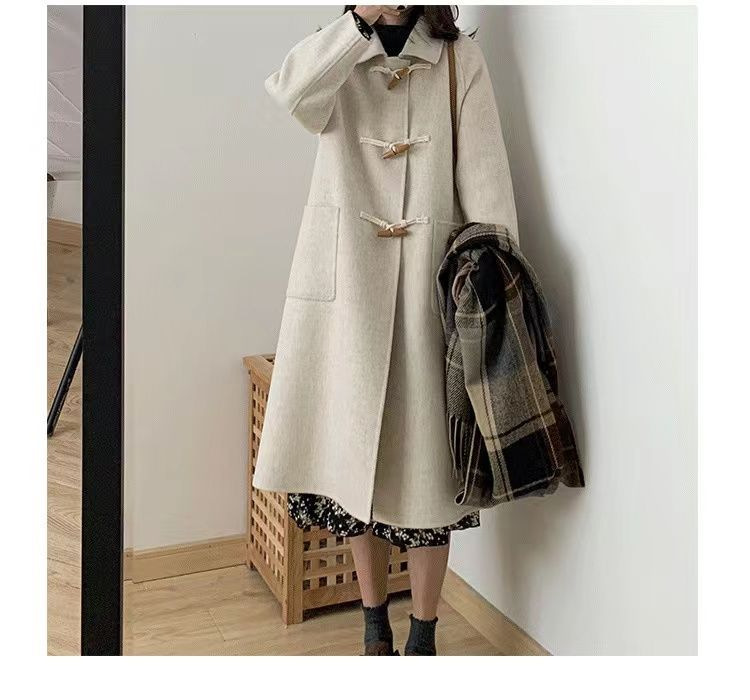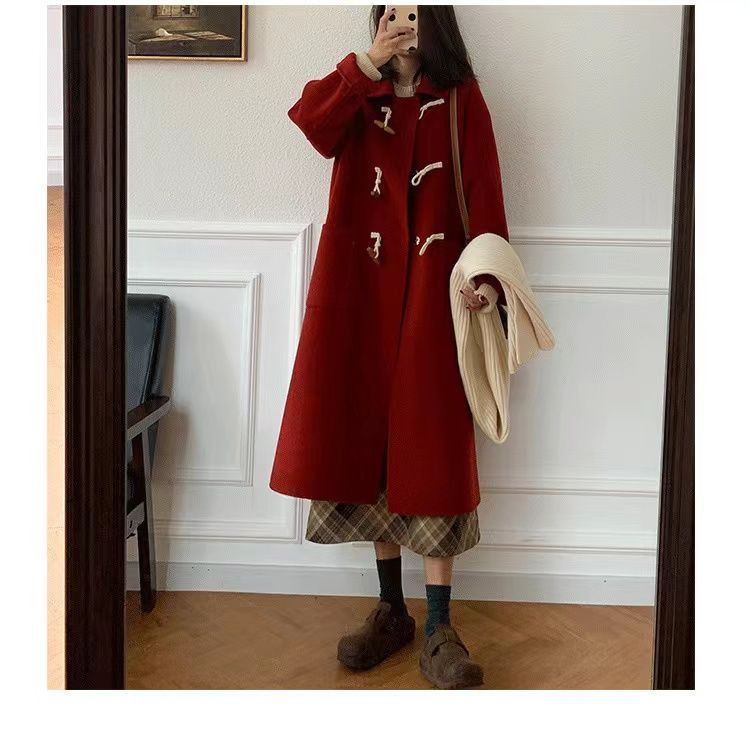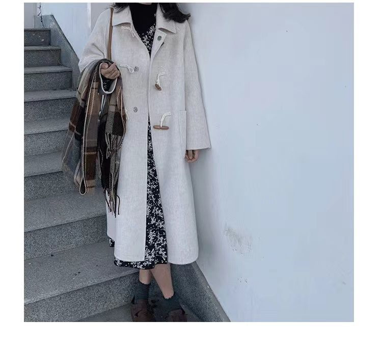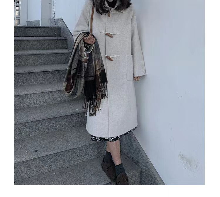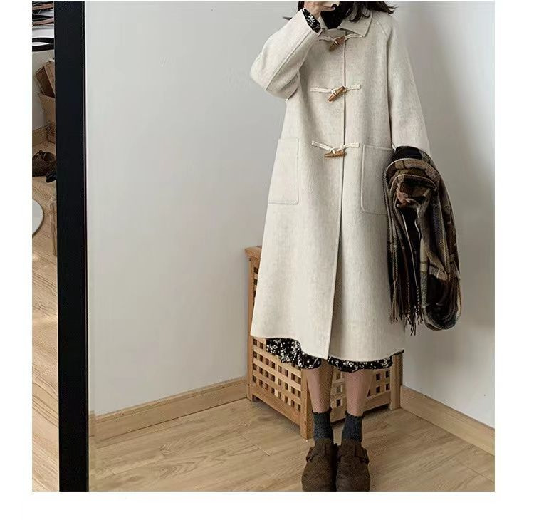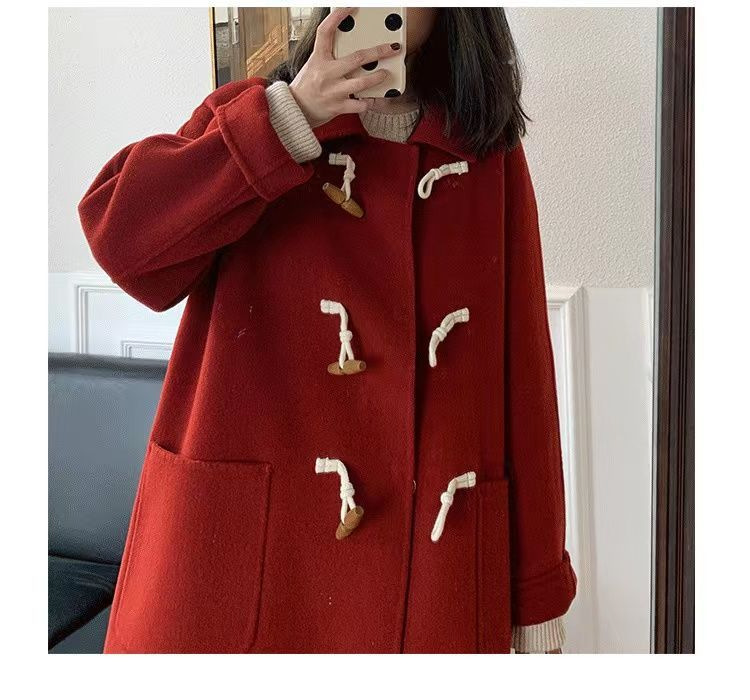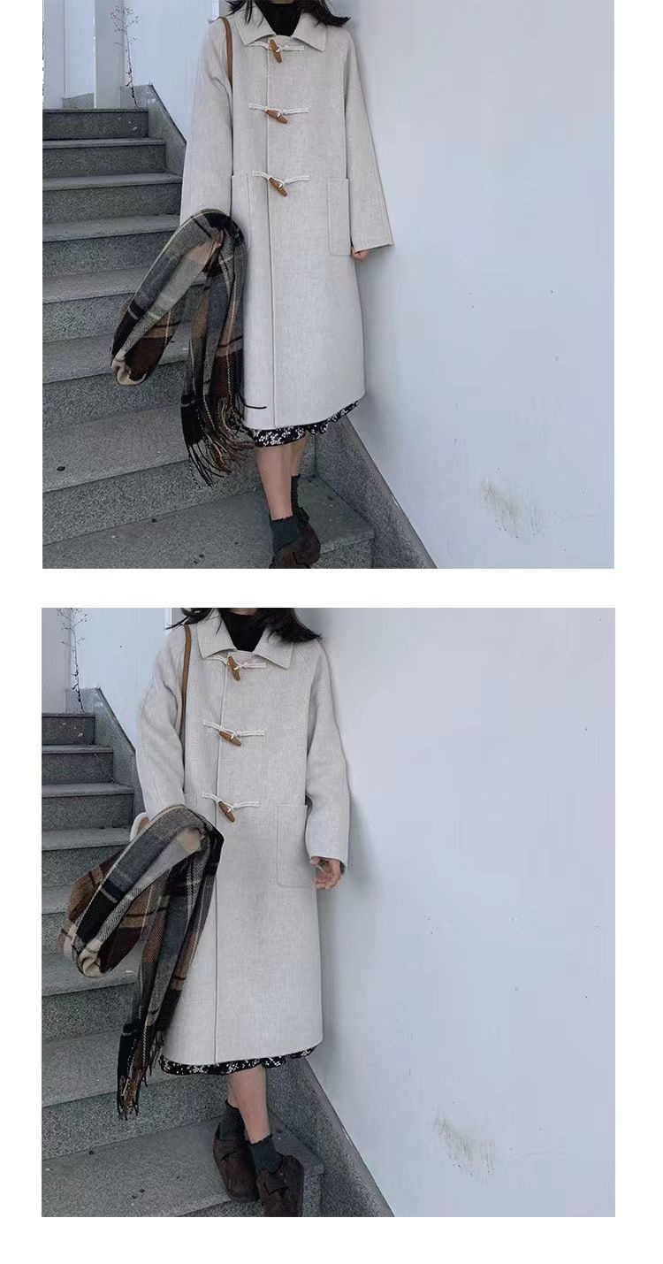검은 일본 옥수수 단추 모직 코트 여자의 2023 가을과 겨울 새로운 스타일 작은 두꺼운 대학 스타일 모직 코트스토어 가기