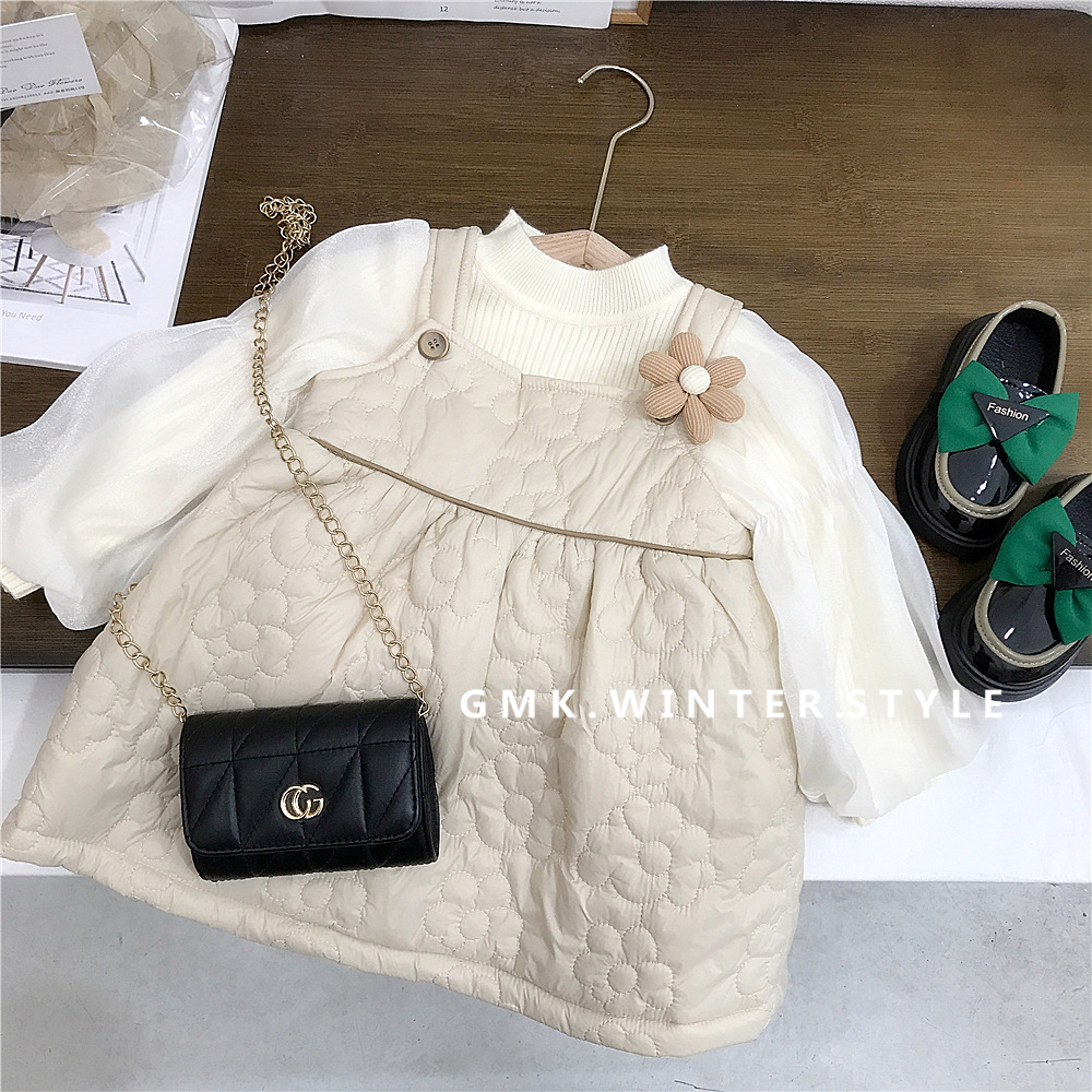 여아 원피스 가을 겨울 신상 패션 누빔 아기 스트랩 공주 드레스 어린이 세트 겨울 외국 무역