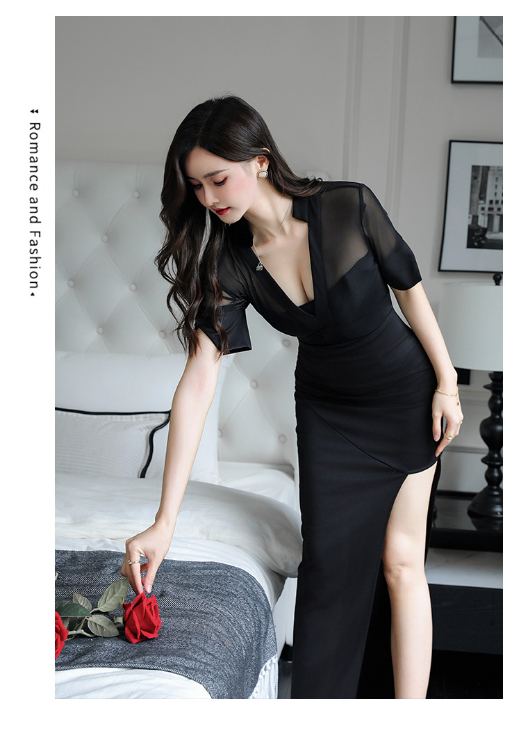 로우 컷 슬리밍 사우나 기술자 기질 깊은 V 분할 원피스 사우나 목욕 발 목욕 기술자 작업복스토어 가기