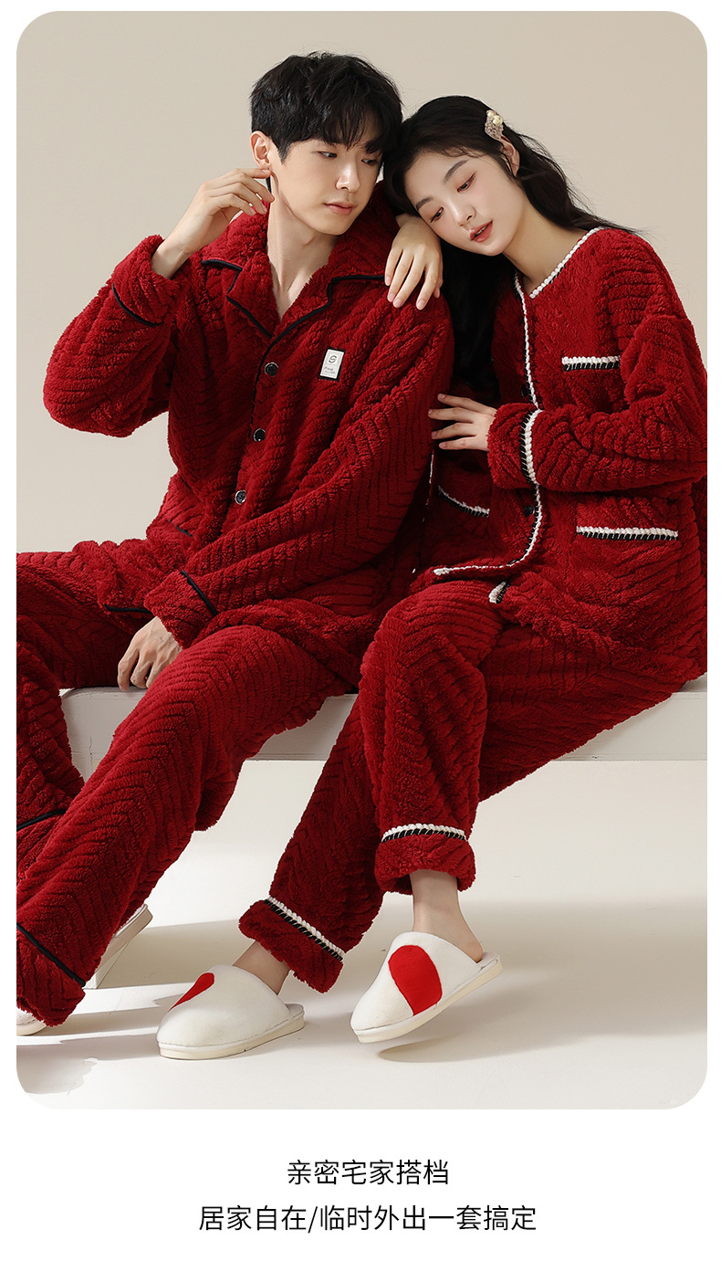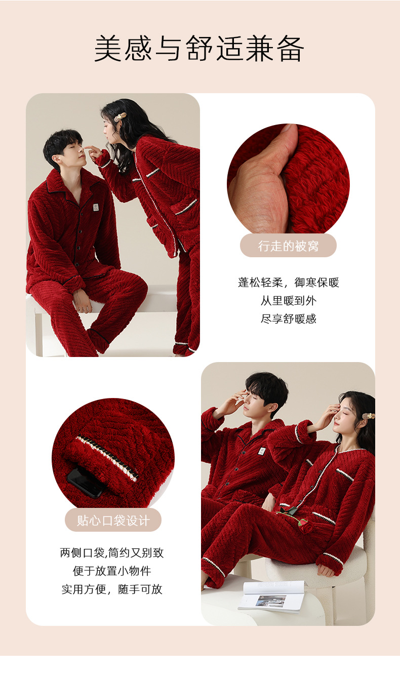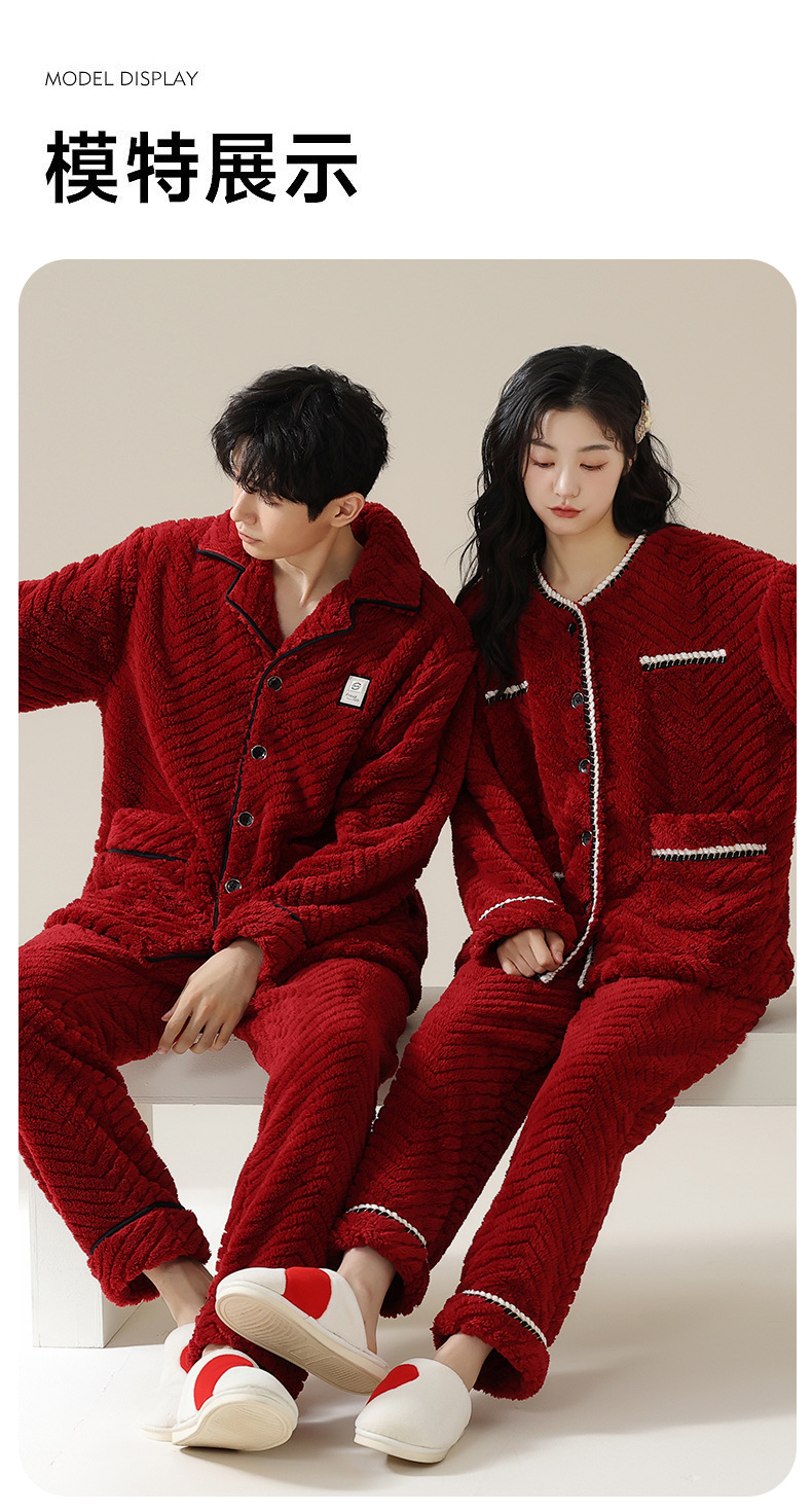 웨딩 커플 잠옷 가을과 겨울 산호 양털 두꺼운 기모 빨간색 남성과 여성의 가족 년 신혼 가정 옷 세트스토어 가기