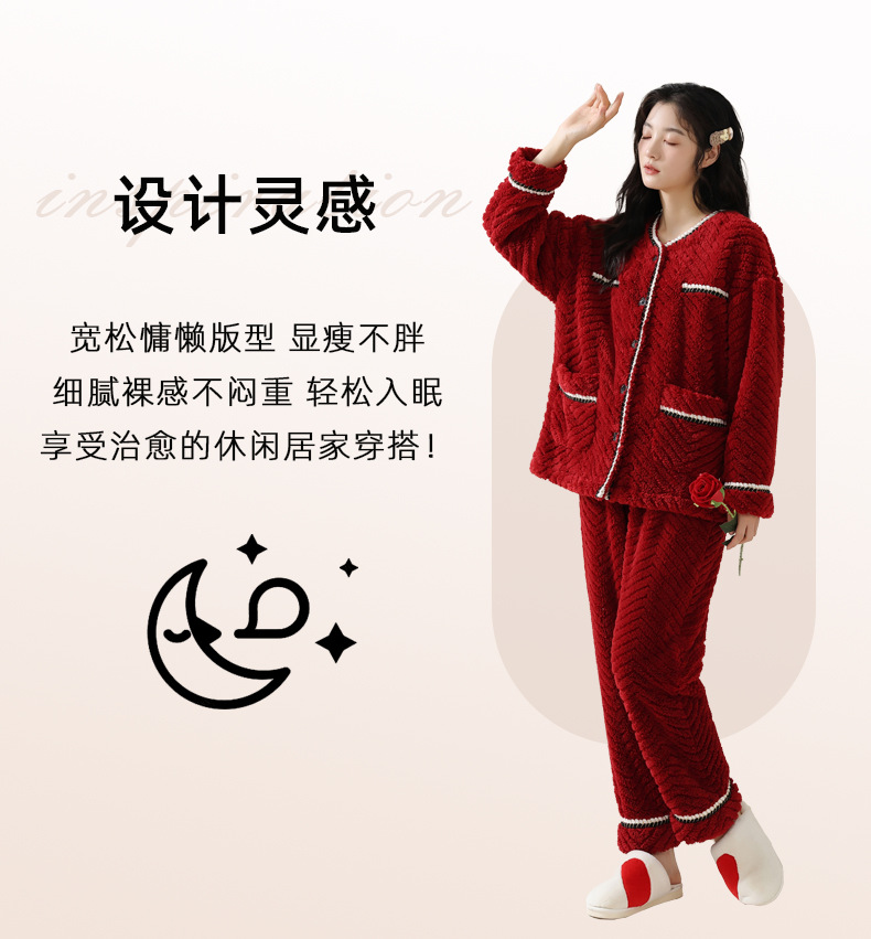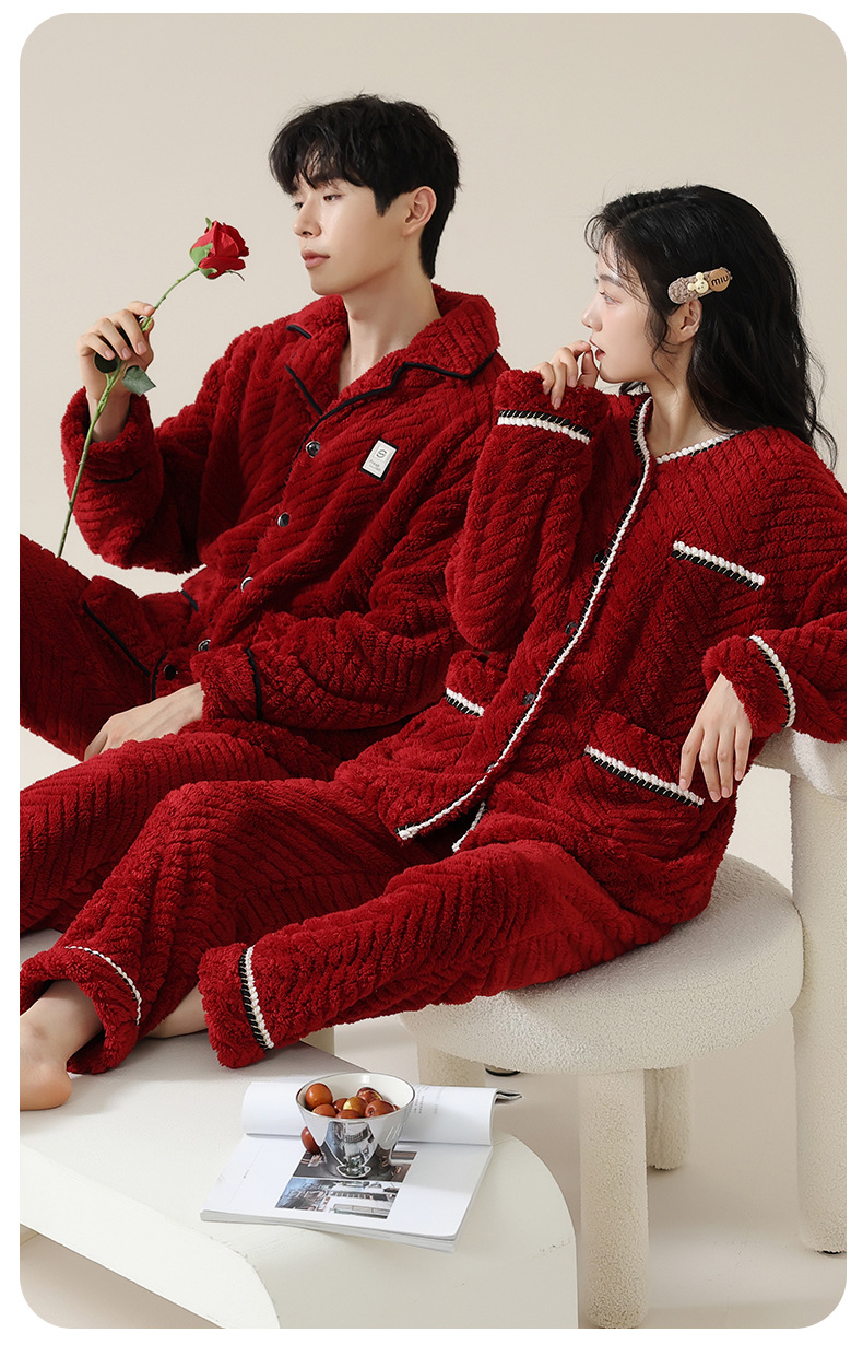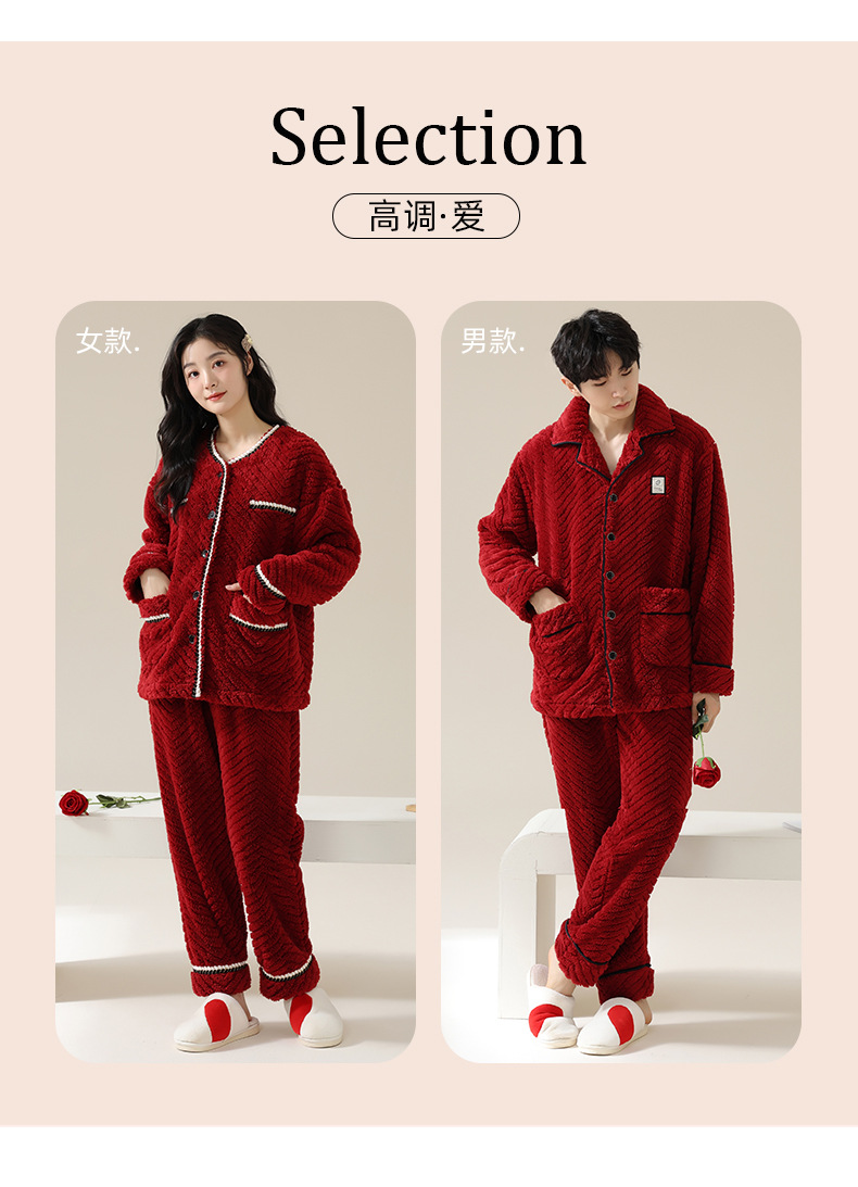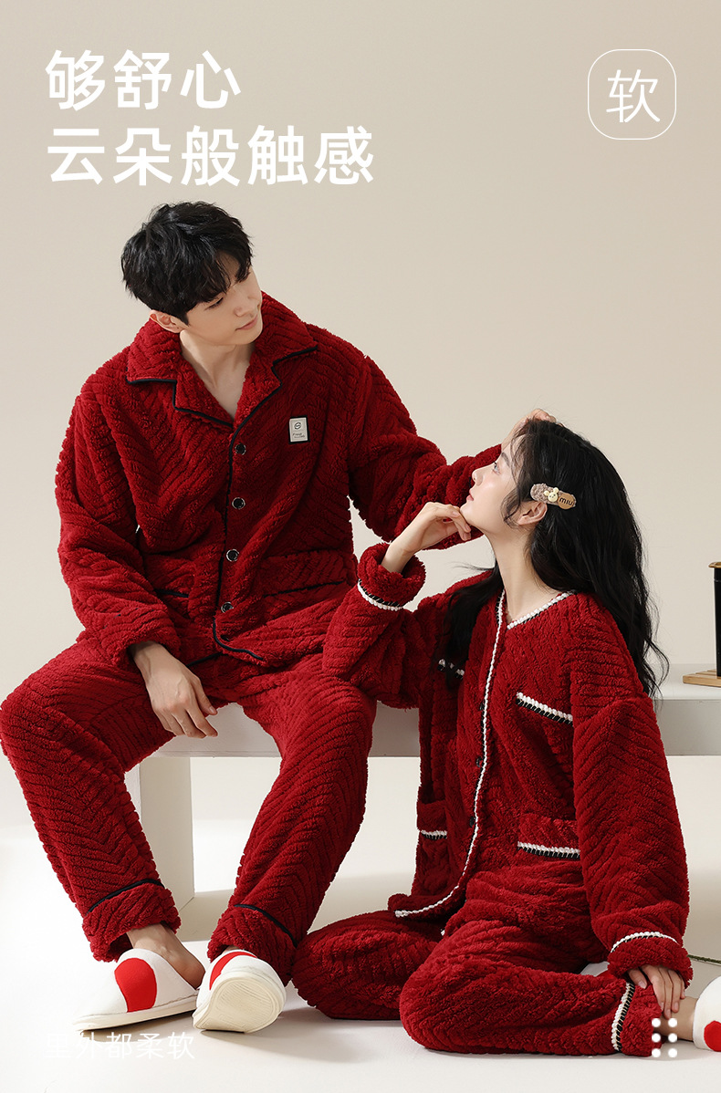 웨딩 커플 잠옷 가을과 겨울 산호 양털 두꺼운 기모 빨간색 남성과 여성의 가족 년 신혼 가정 옷 세트스토어 가기