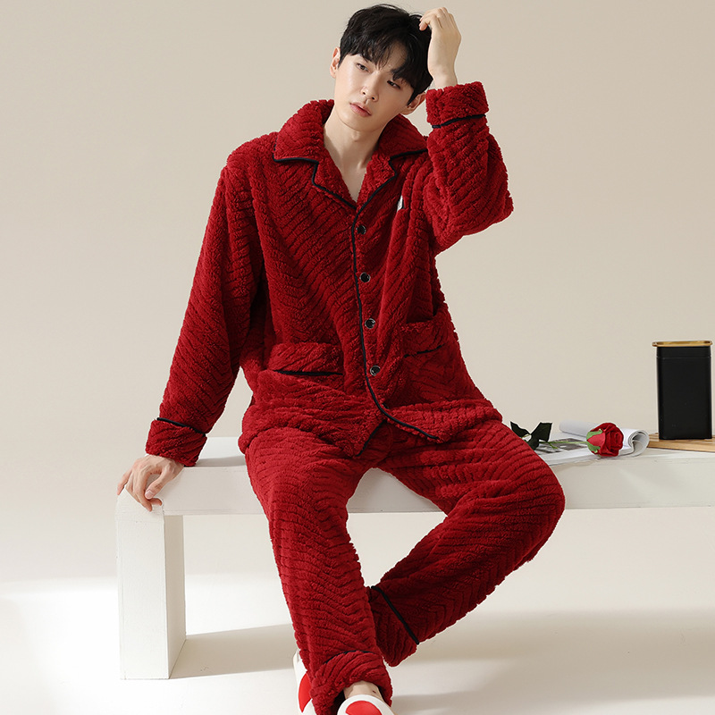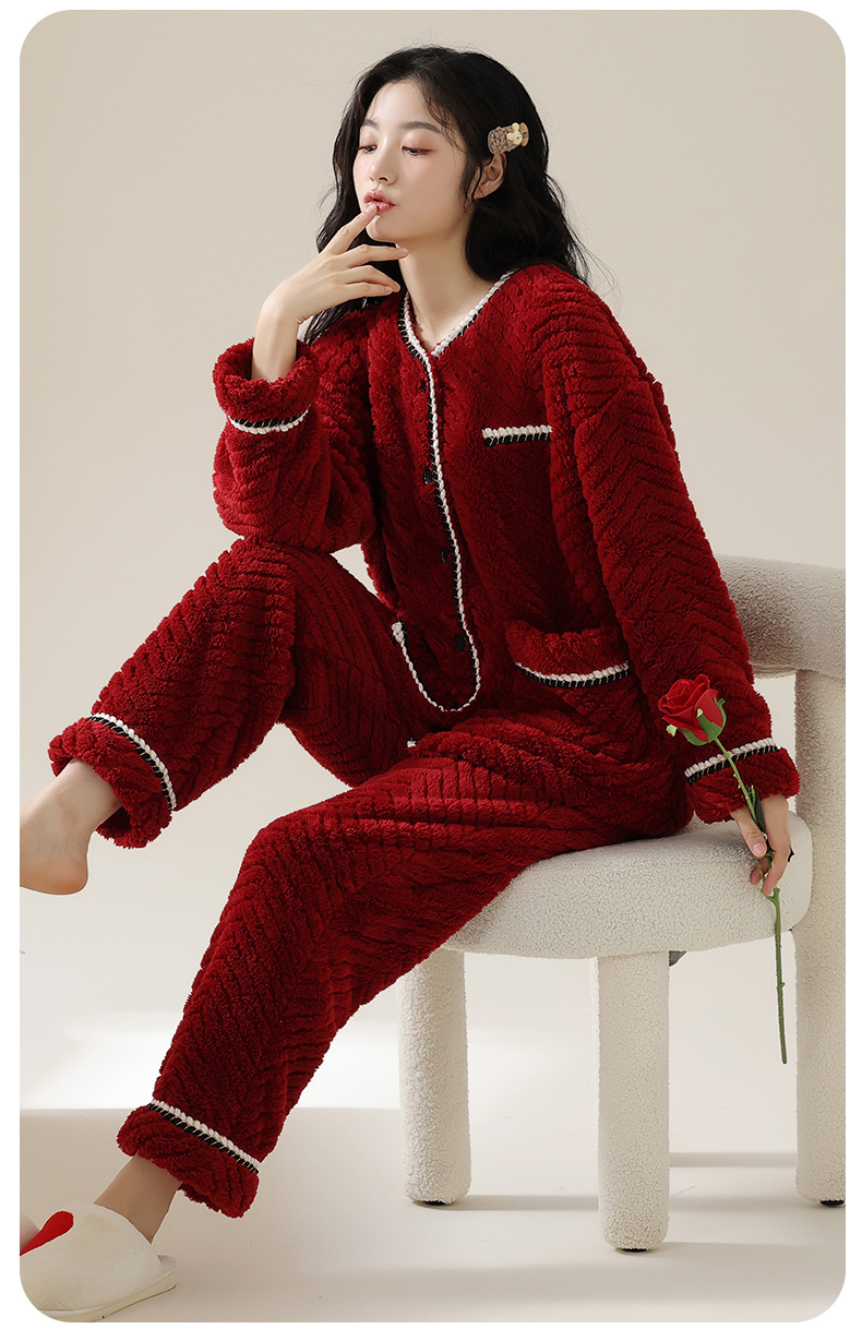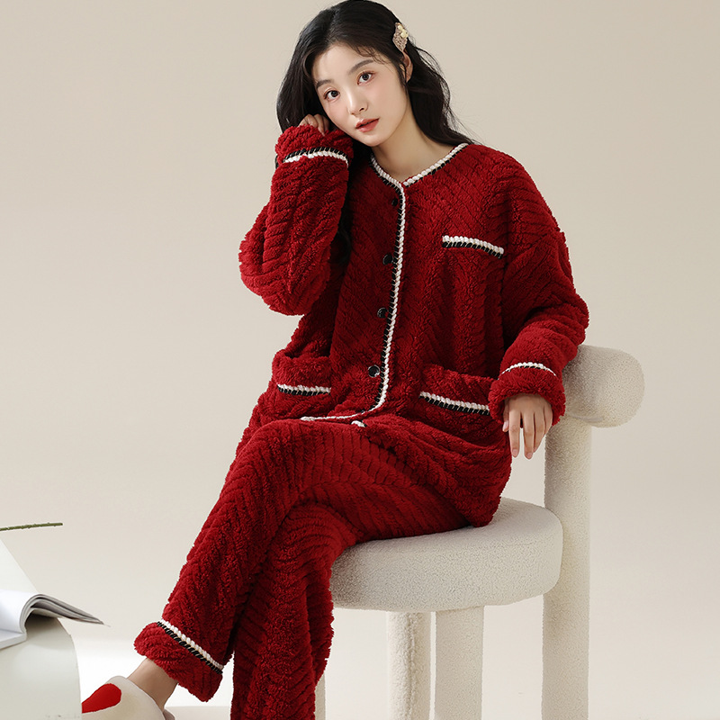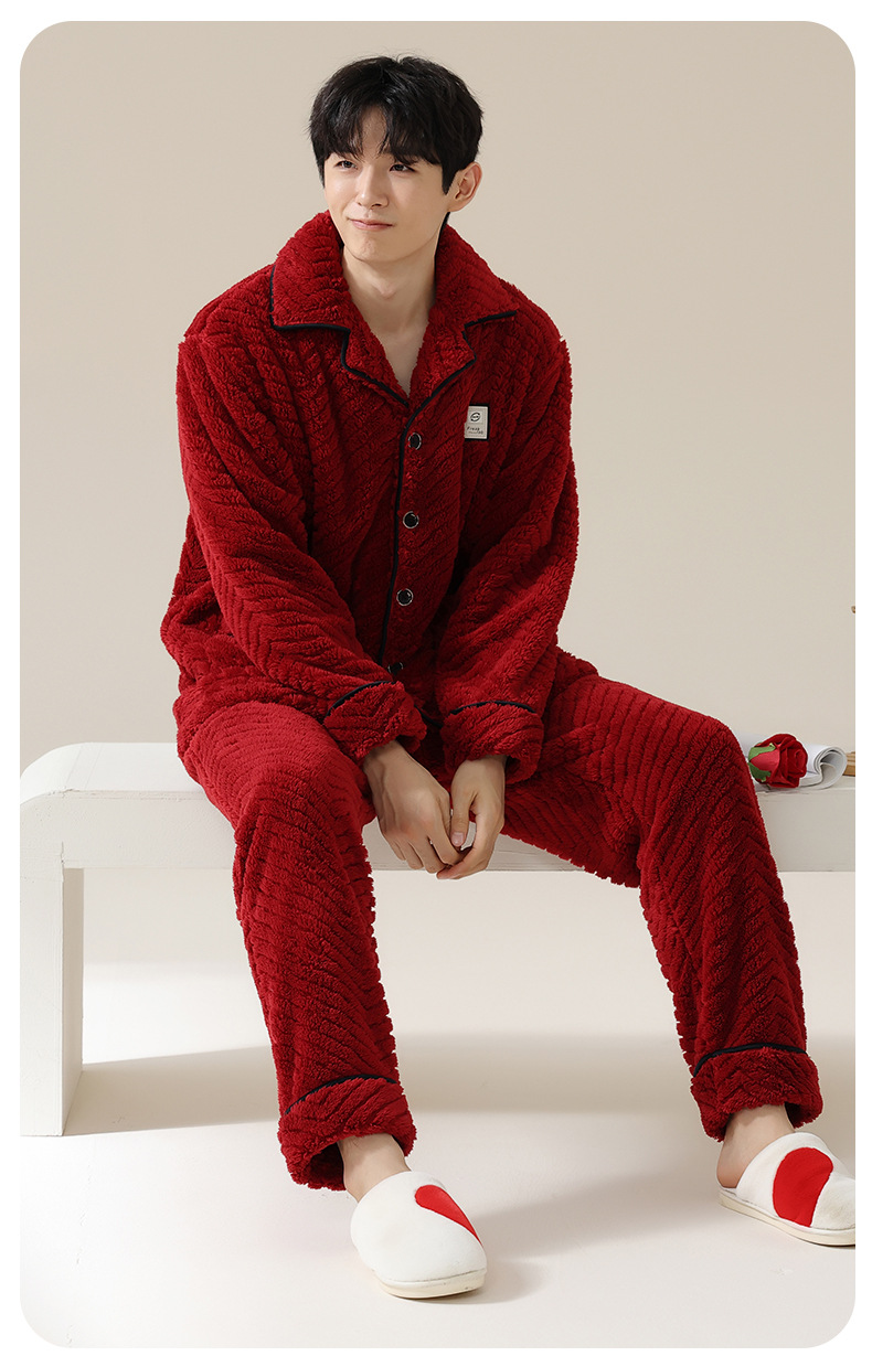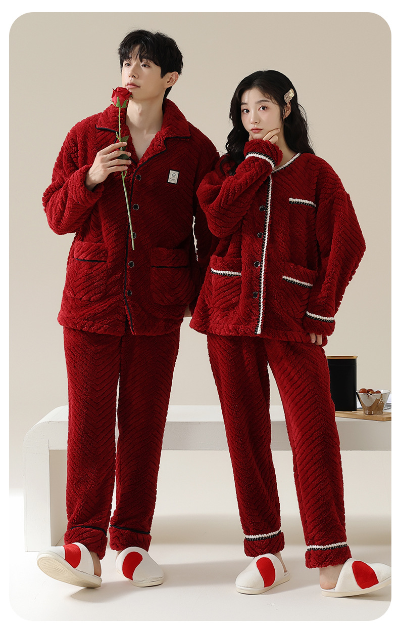 웨딩 커플 잠옷 가을과 겨울 산호 양털 두꺼운 기모 빨간색 남성과 여성의 가족 년 신혼 가정 옷 세트