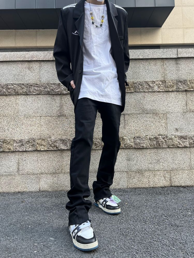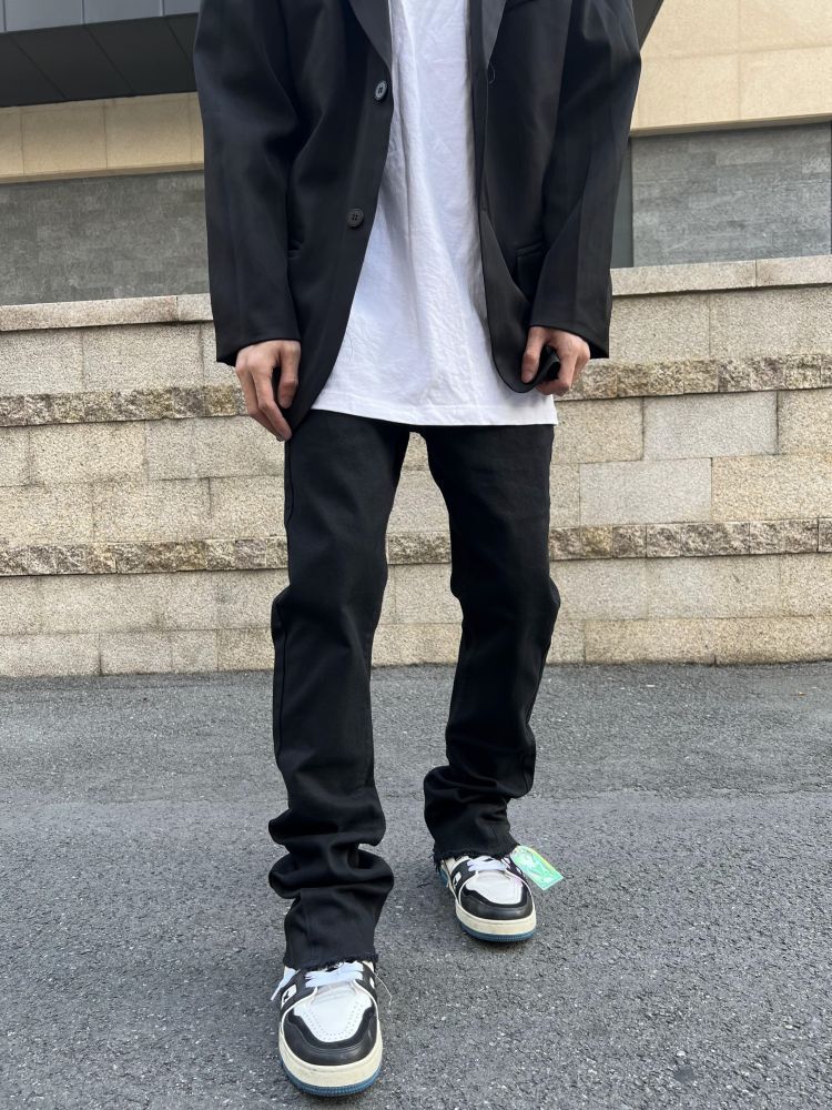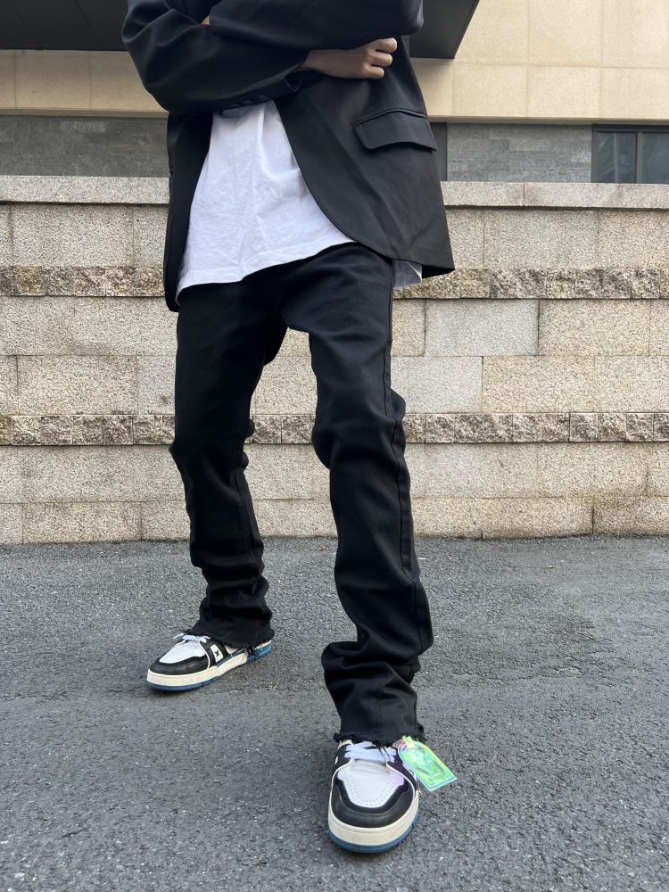 高街水洗vibe微喇叭裤子男破坏潮牌复古做旧炸街修身休闲牛仔裤男