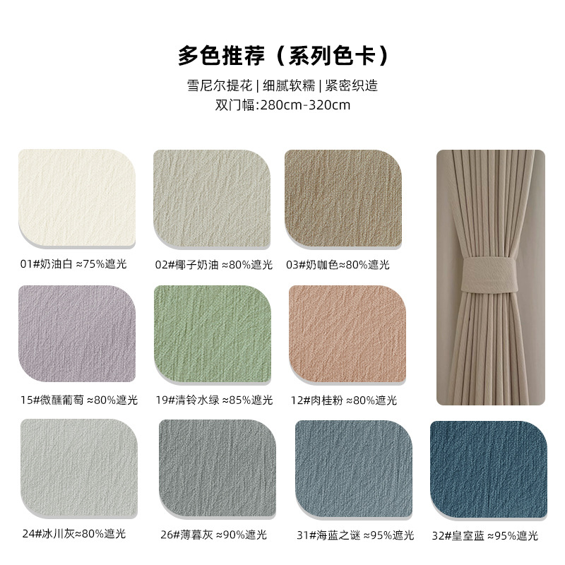 치즈 캐시미어 커튼 차광 셔닐 크림 거실 작은 빨간 책 뜨거운 판매 Shaoxing Keqiao 완성 된 직물