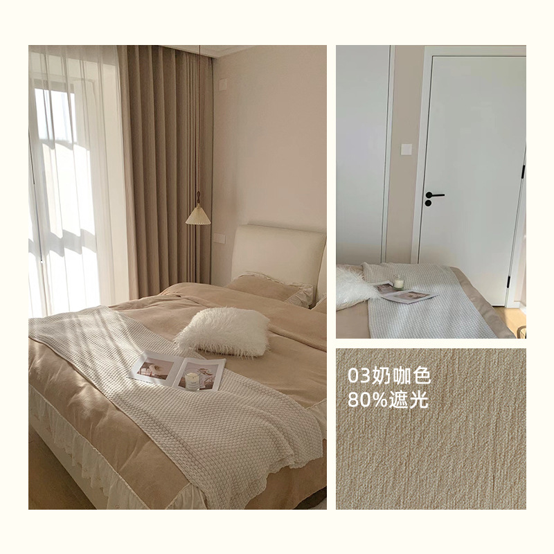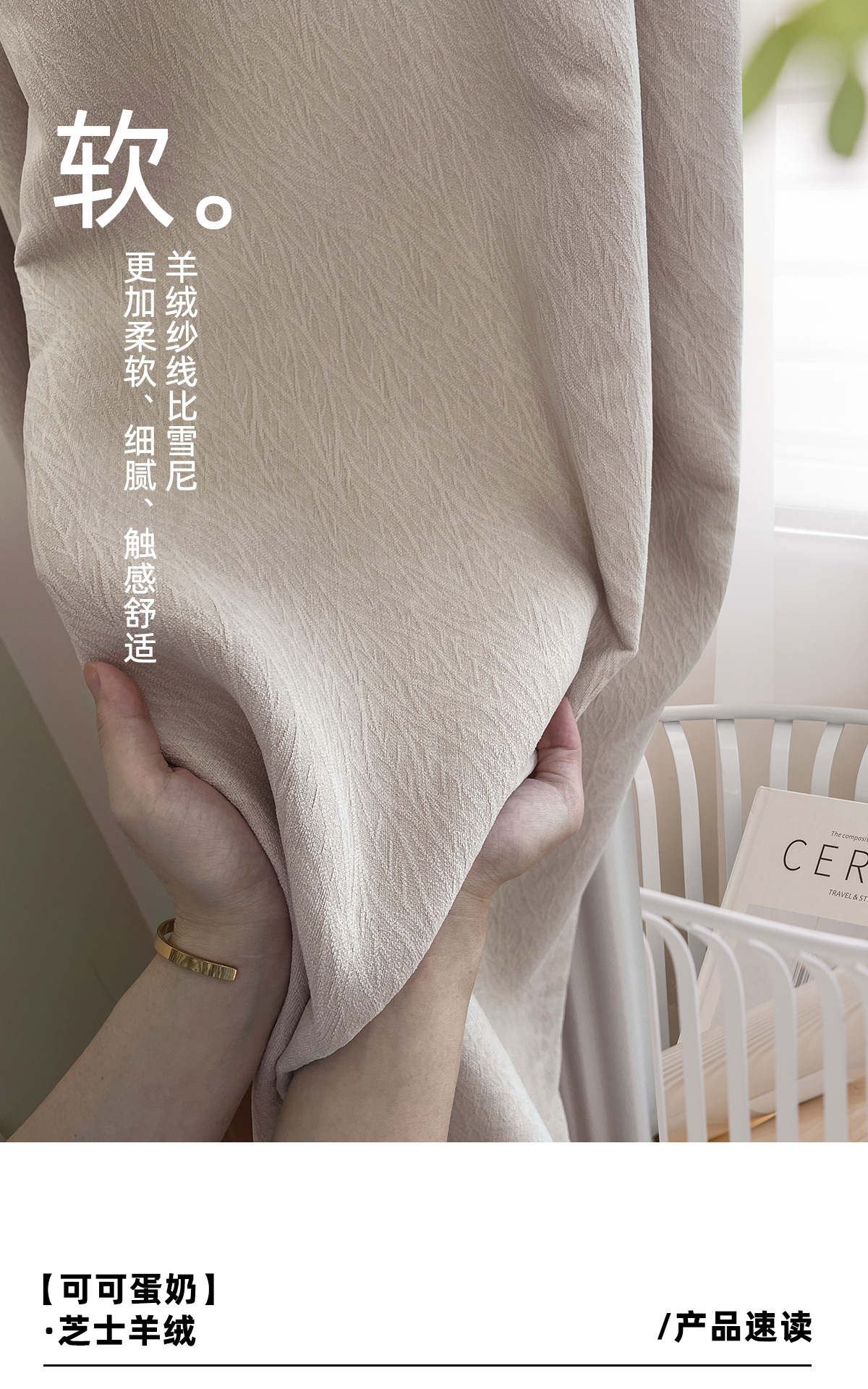 치즈 캐시미어 커튼 차광 셔닐 크림 거실 작은 빨간 책 뜨거운 판매 Shaoxing Keqiao 완성 된 직물스토어 가기