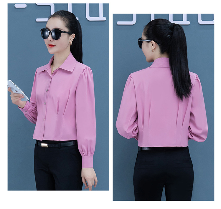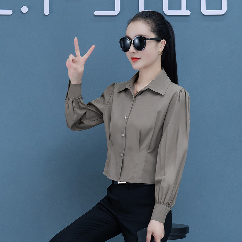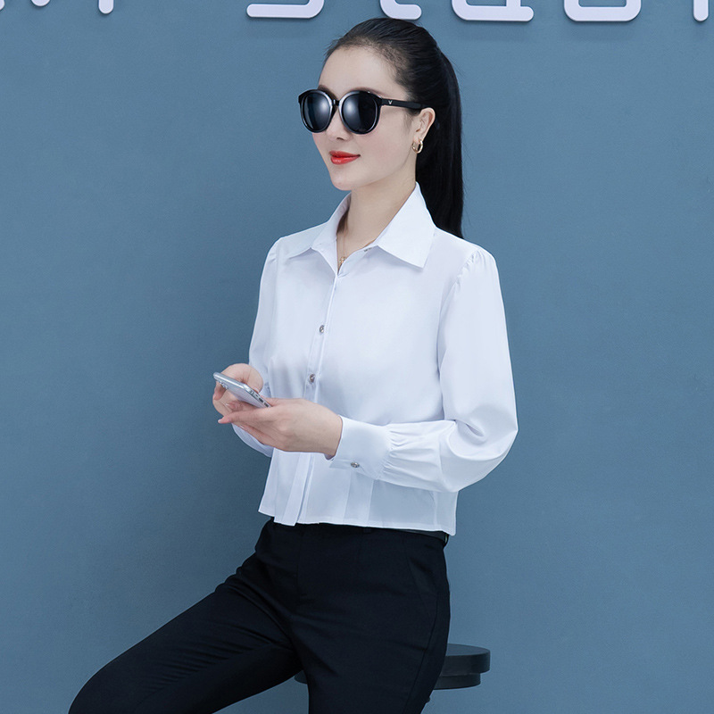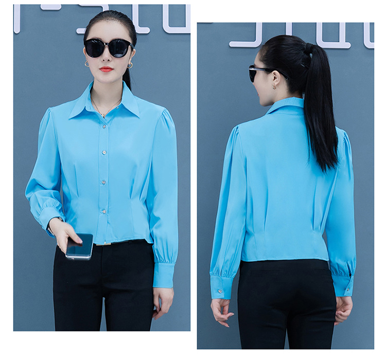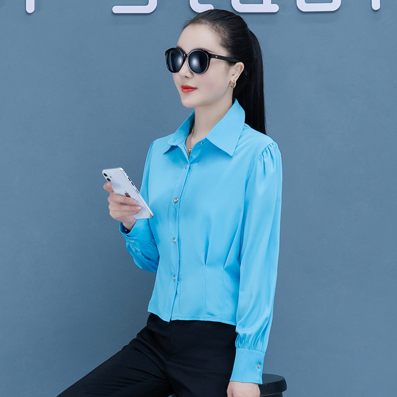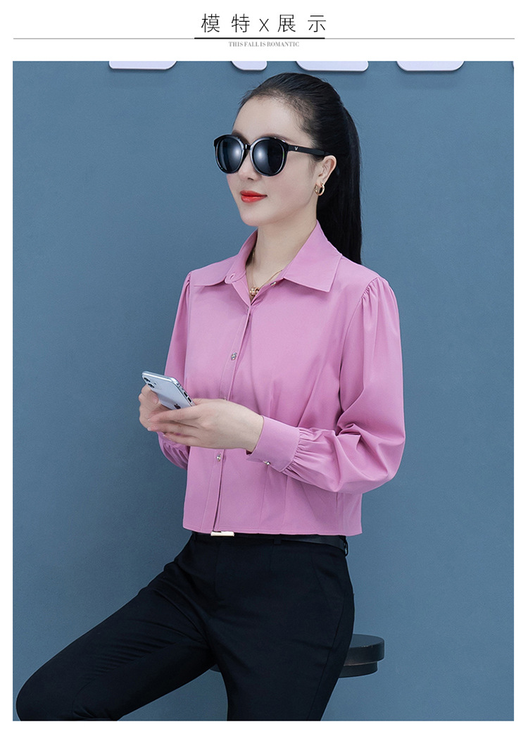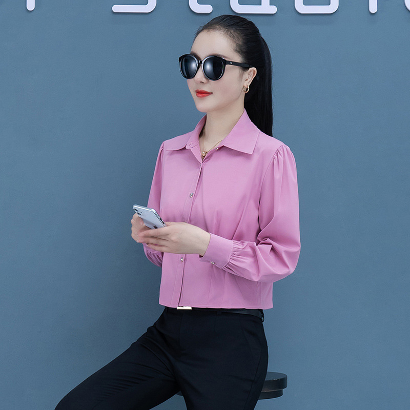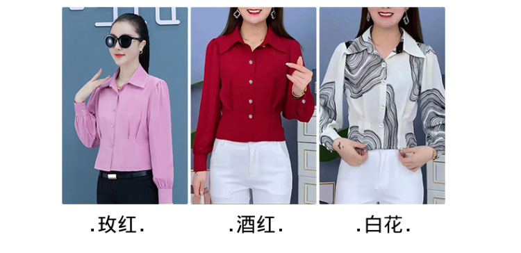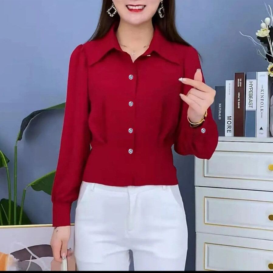 여성용 레드 새 셔츠 쉬폰 긴팔 탑 봄과 가을 카운터 패션 우아한 한국식 올매치 솔리드 컬러 스몰 셔츠스토어 가기