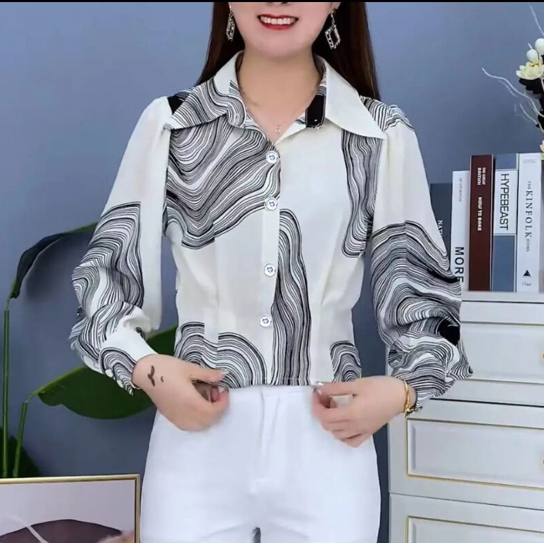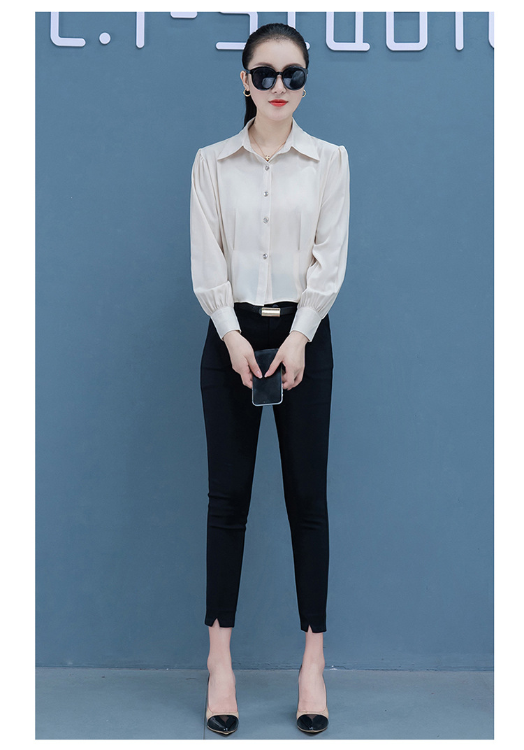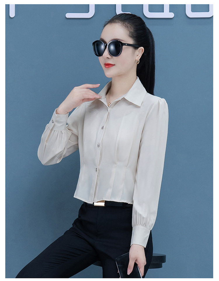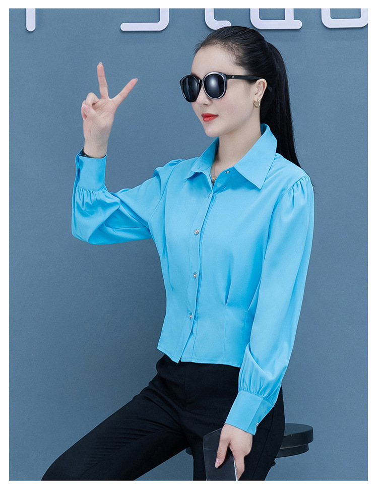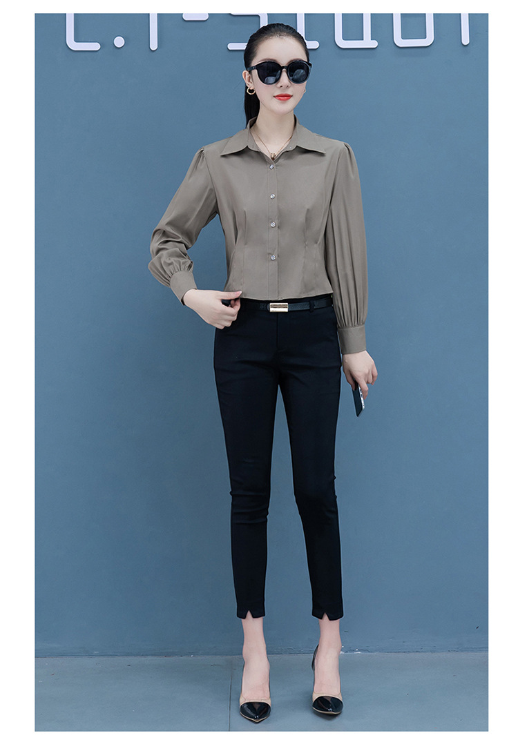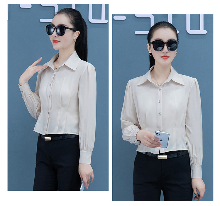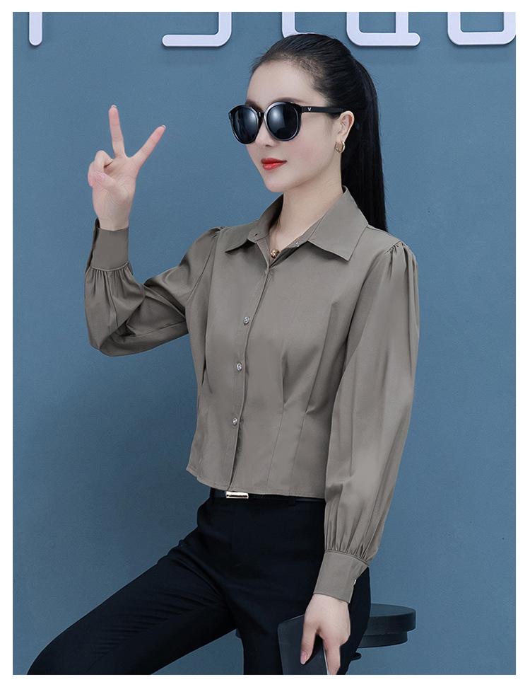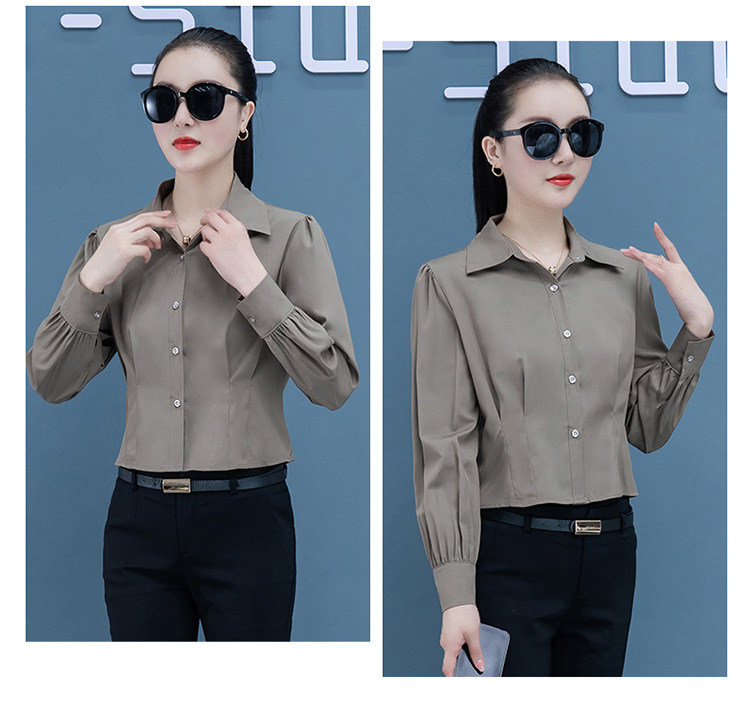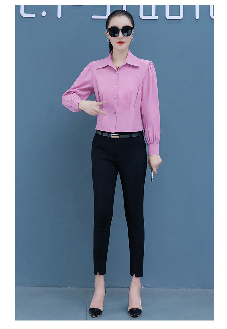 여성용 레드 새 셔츠 쉬폰 긴팔 탑 봄과 가을 카운터 패션 우아한 한국식 올매치 솔리드 컬러 스몰 셔츠스토어 가기