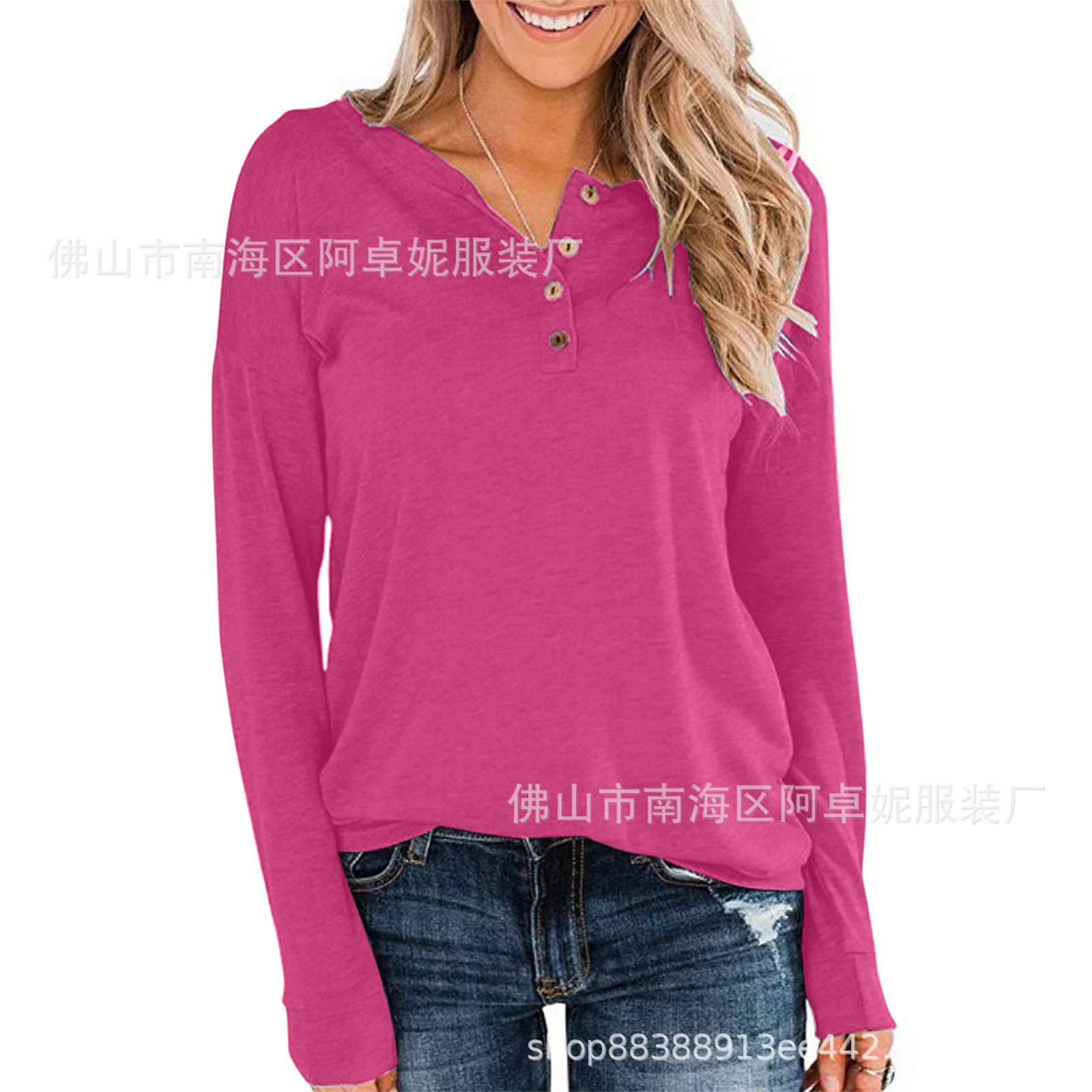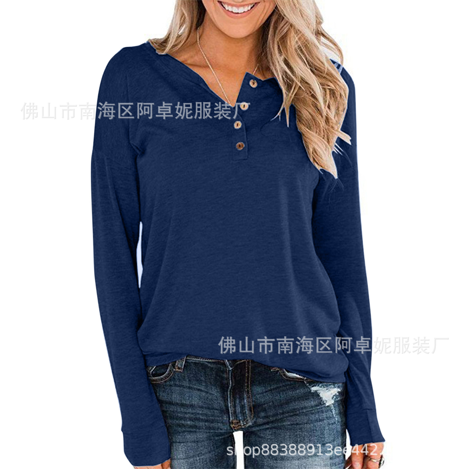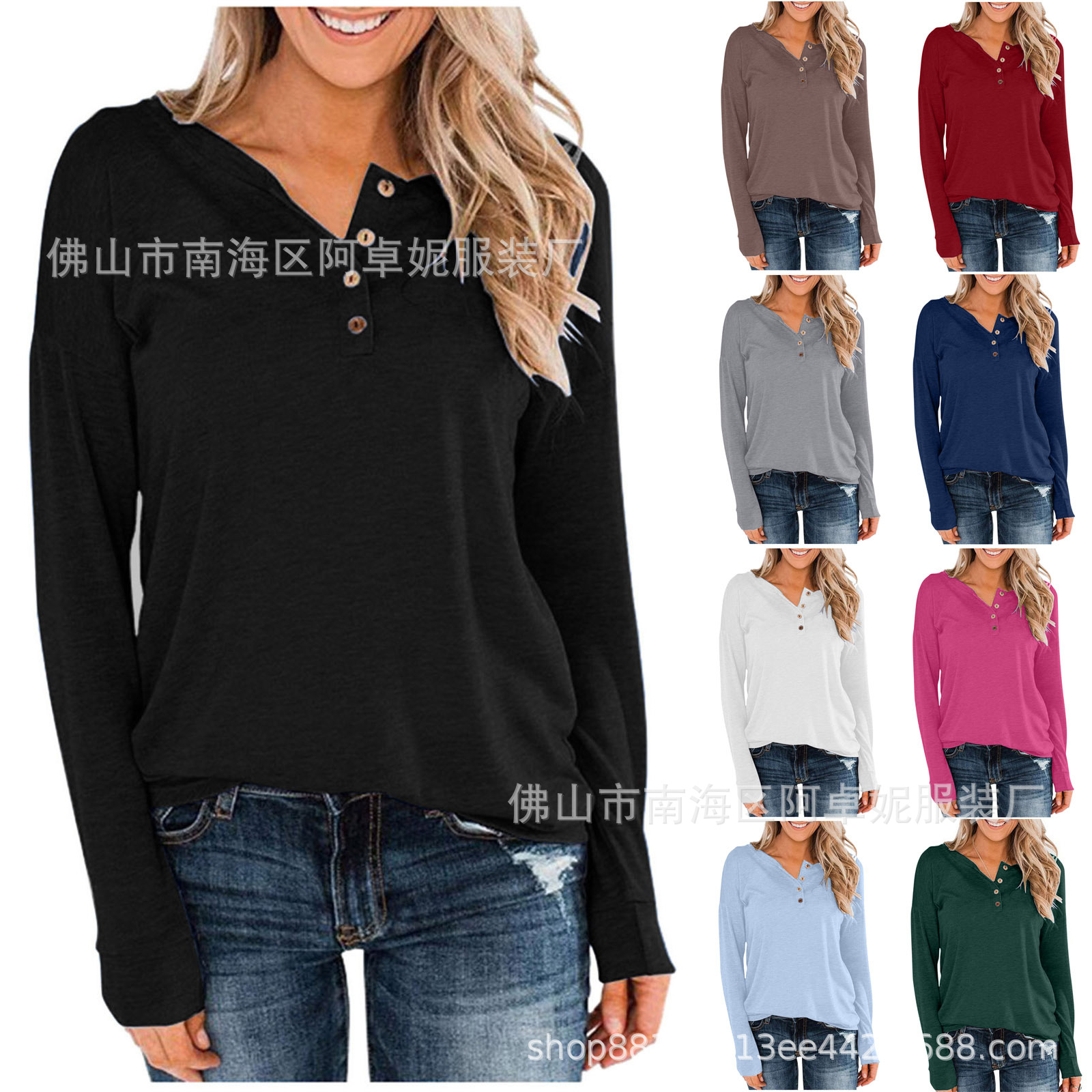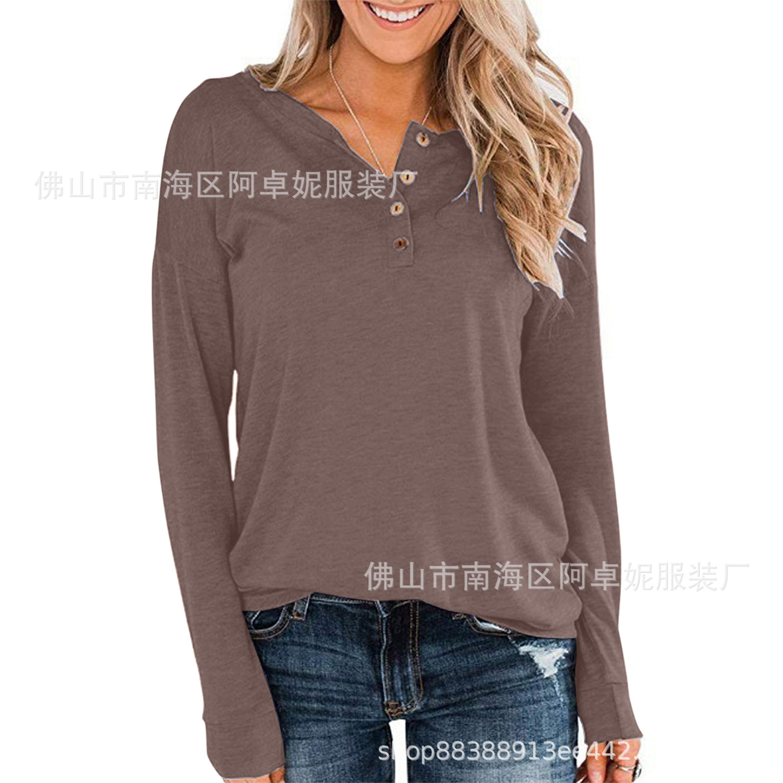 2025 가을 신상품 독립형 웹사이트 아마존 여성용 단색 니트 긴팔 라운드넥 캐주얼 버튼 탑 티셔츠스토어 가기