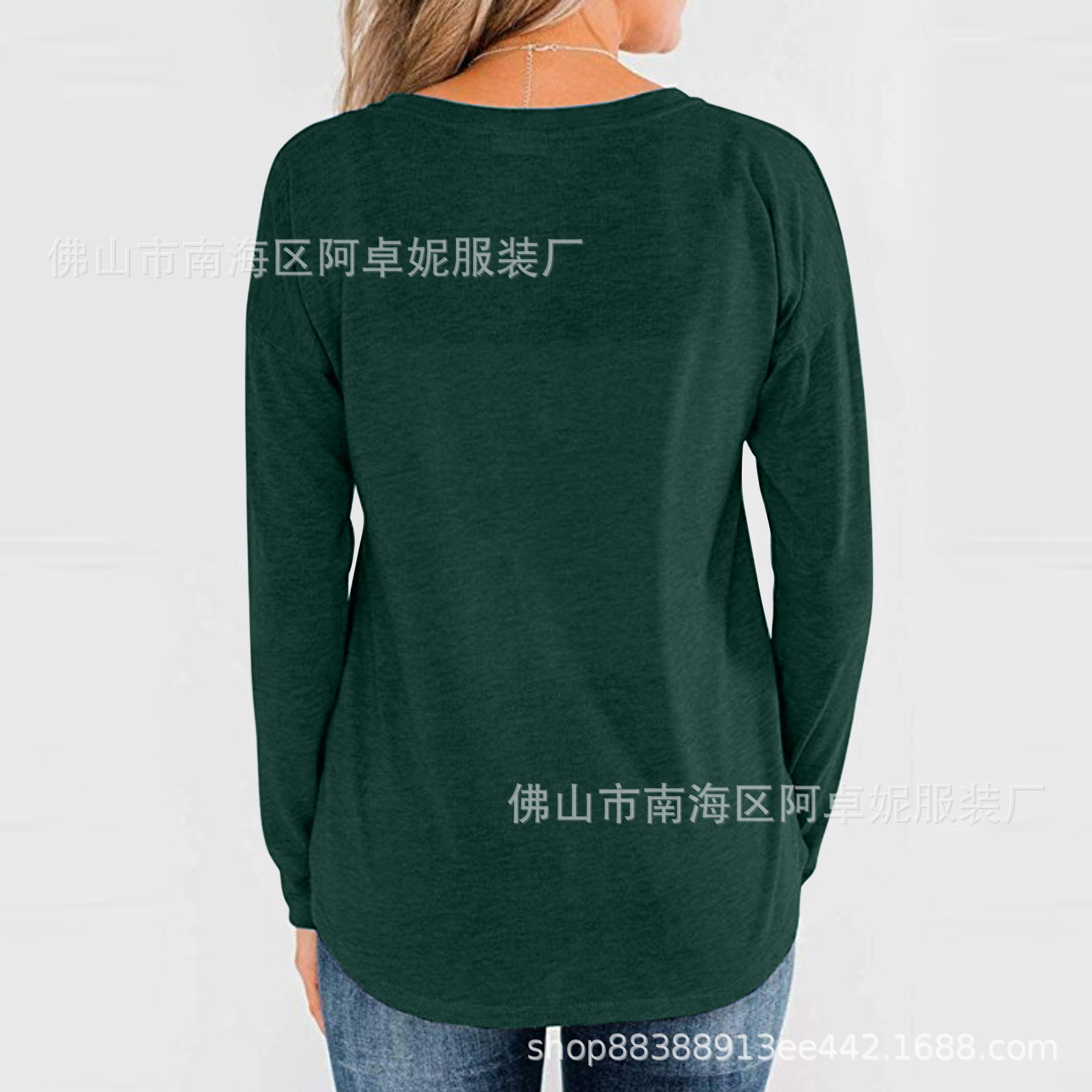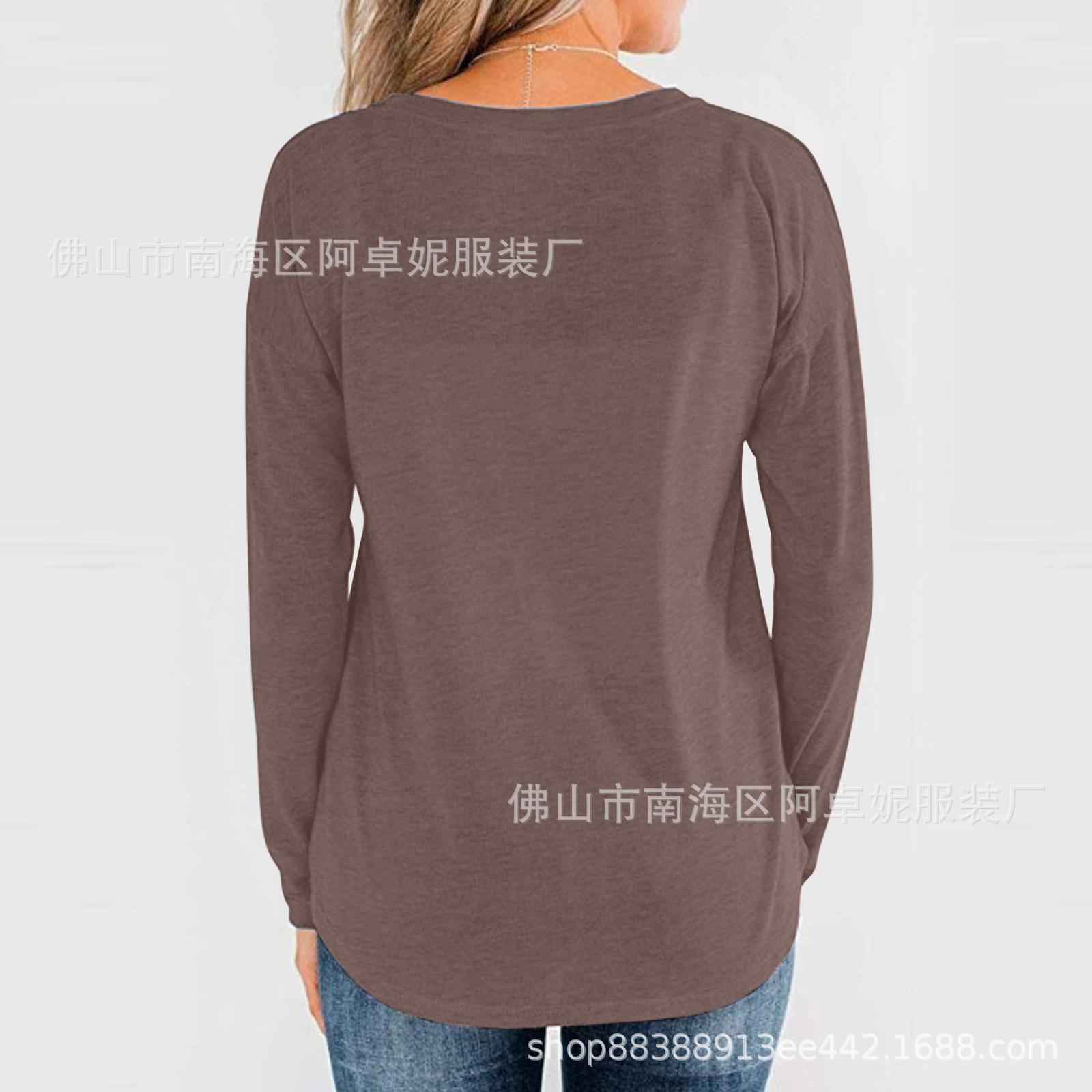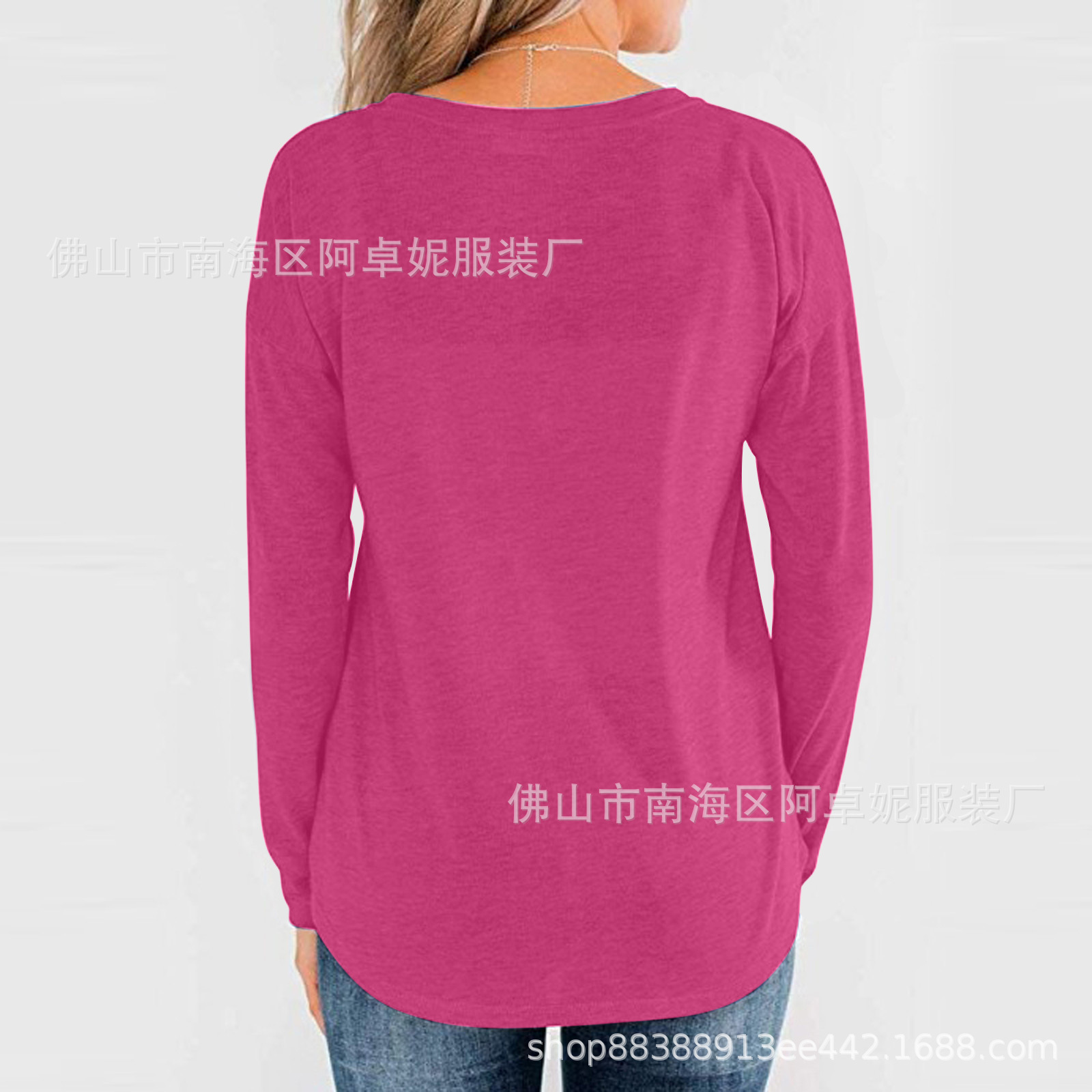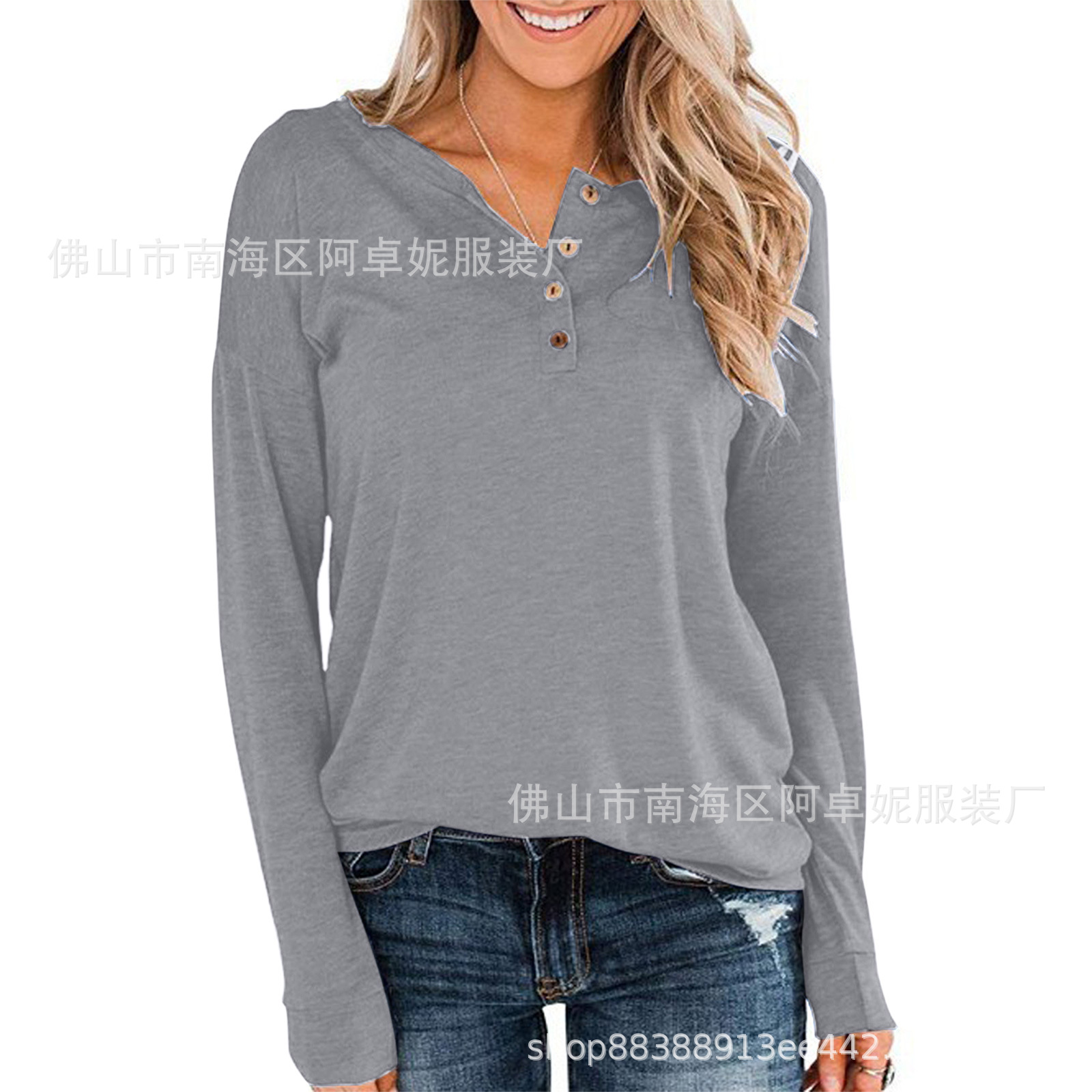 2025 가을 신상품 독립형 웹사이트 아마존 여성용 단색 니트 긴팔 라운드넥 캐주얼 버튼 탑 티셔츠스토어 가기