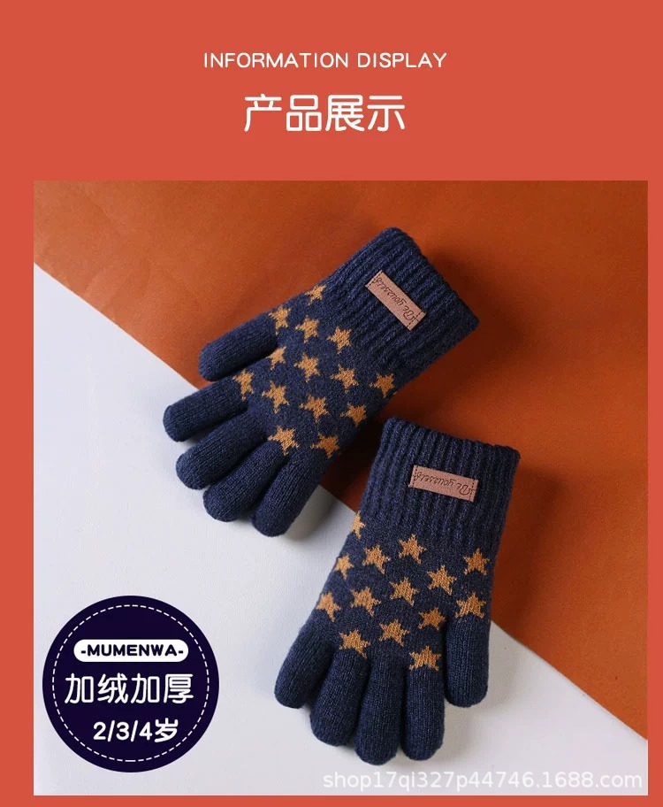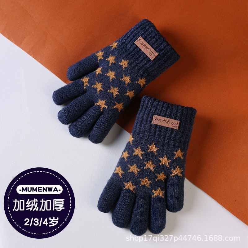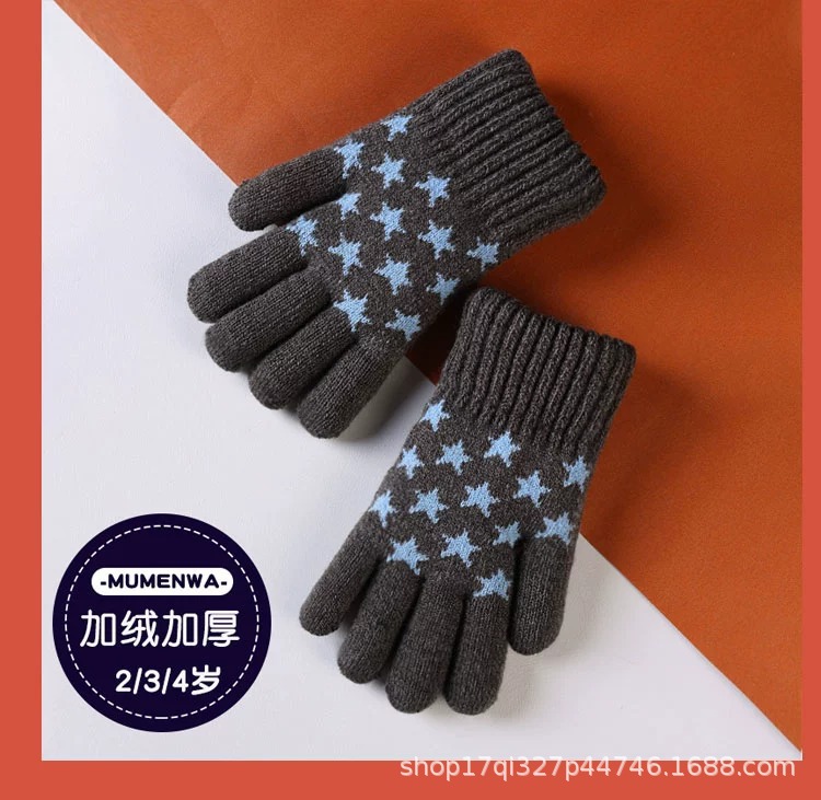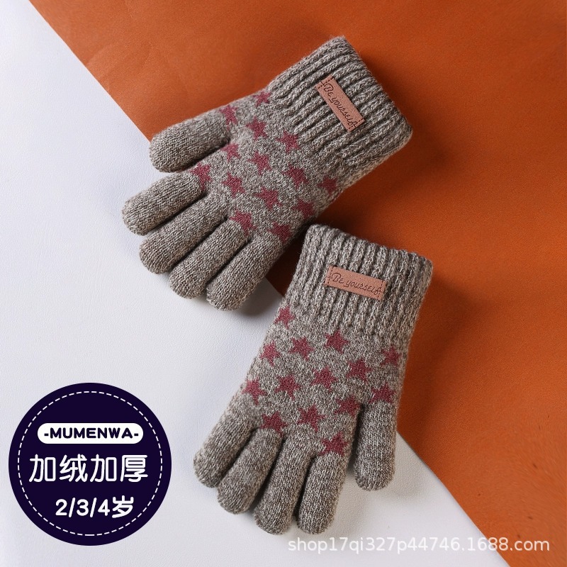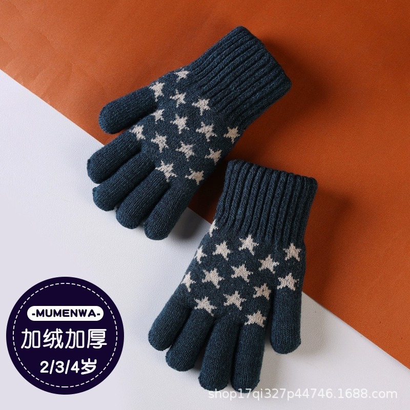 어린이 장갑 겨울 기모 두꺼운 소년 따뜻한 니트 양모 귀여운 손가락 아기 장갑 제조 업체 도매스토어 가기