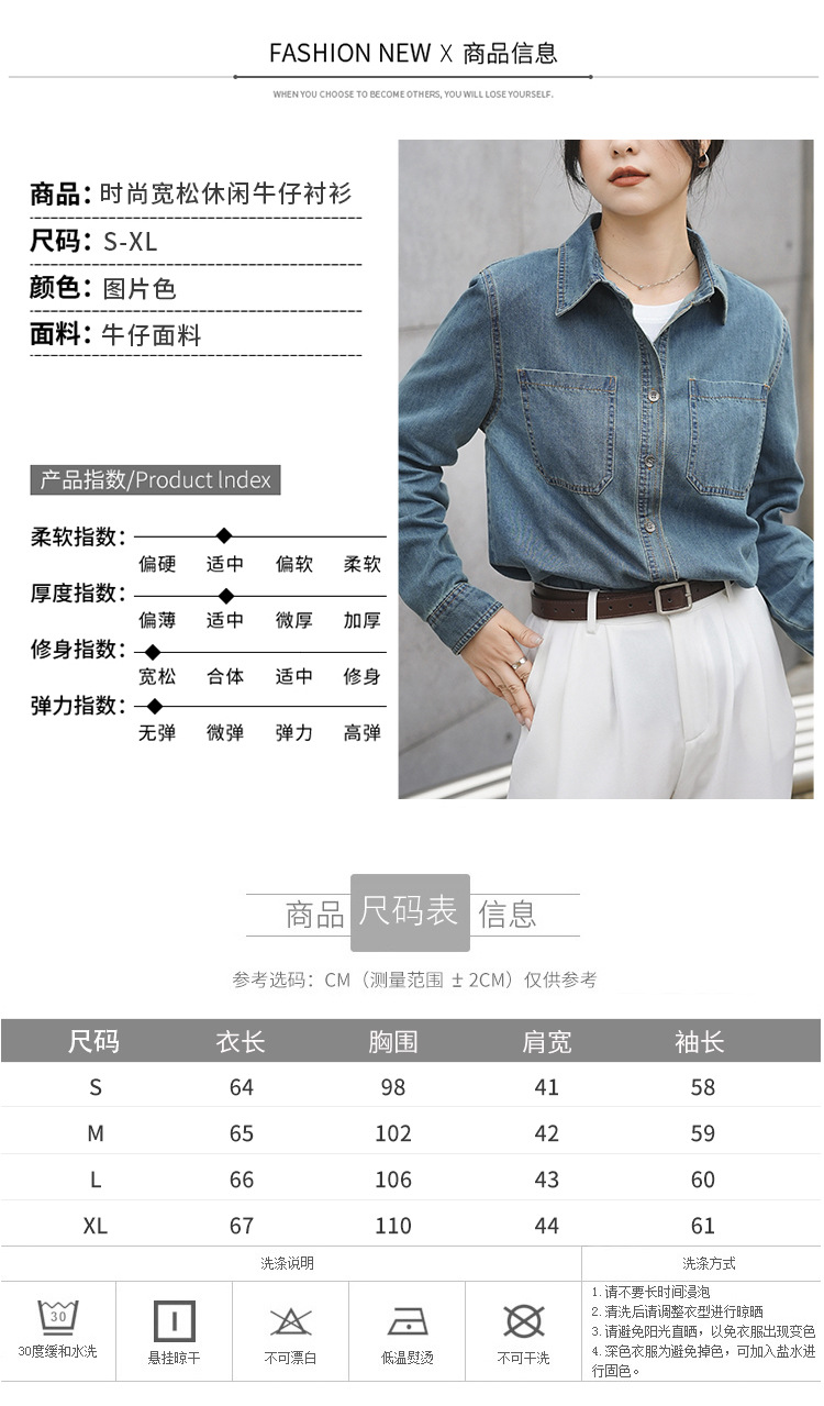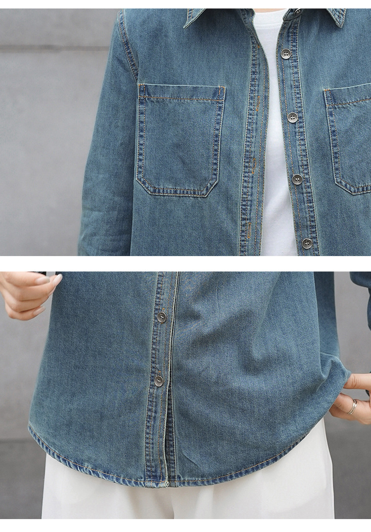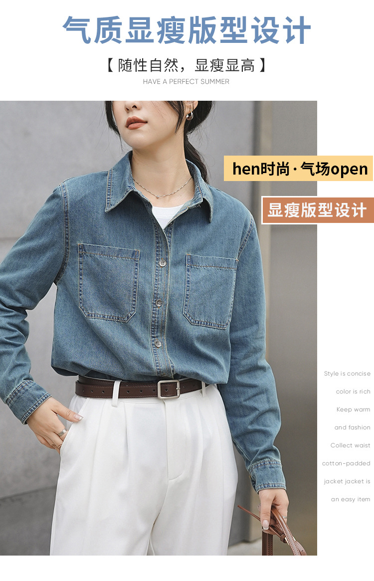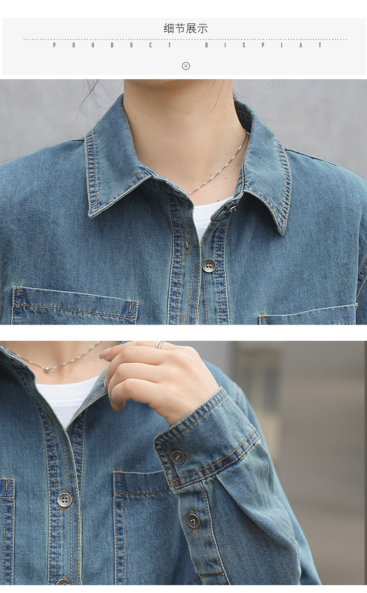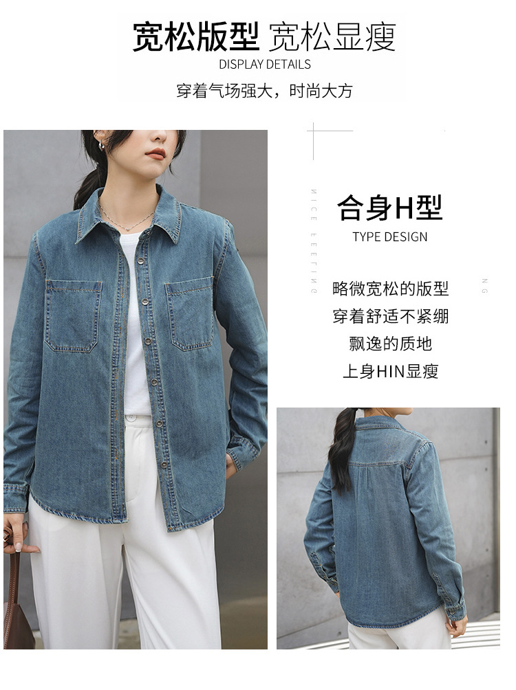빈티지 데님 고뇌 블루 소프트 데님 셔츠 여자의 가을 2023 새로운 모든 경기 앞 어깨 접힌 긴 소매 셔츠스토어 가기