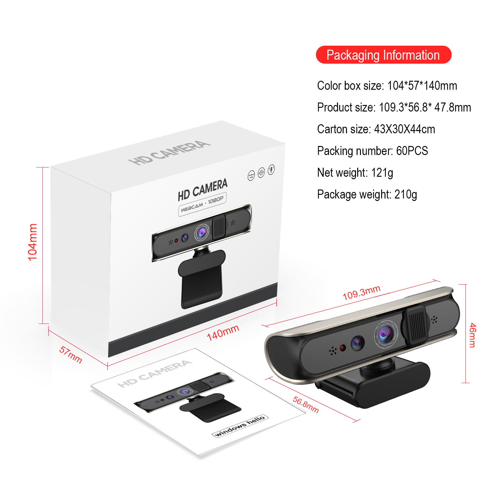 윈도우 헬로 카메라 얼굴 인식 5 백만 픽셀 화상 회의 교육 3D 잠금 해제 재고