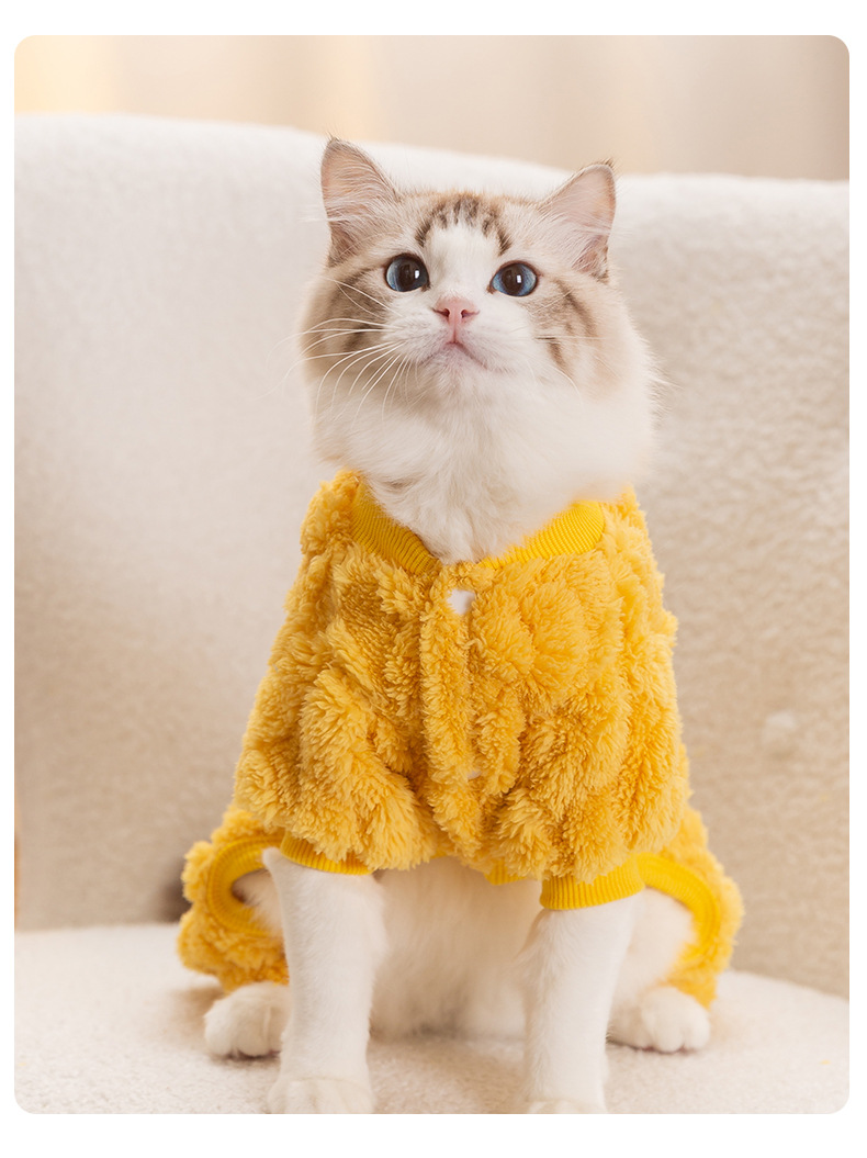 강아지 옷 가을 겨울용 편안한 면 벨벳 보온 네발옷 중소형견 래그돌 고양이 애완동물 의류스토어 가기