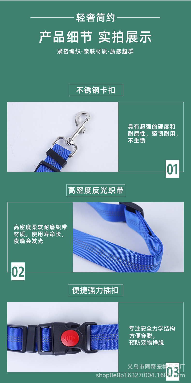 애완 동물 제품 자동차 안전 벨트 견인 벨트 개 로프 고양이 로프 개폐식 조절 가능한 반사 발광 견인 로프