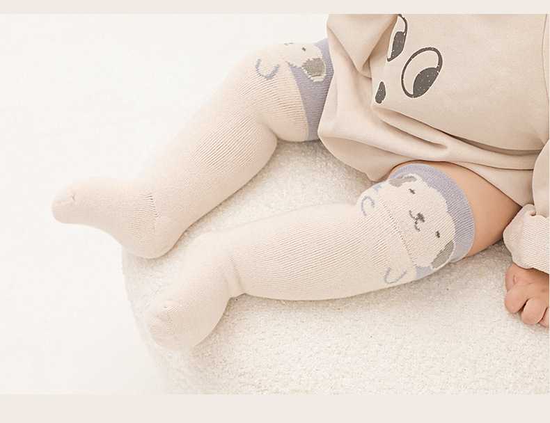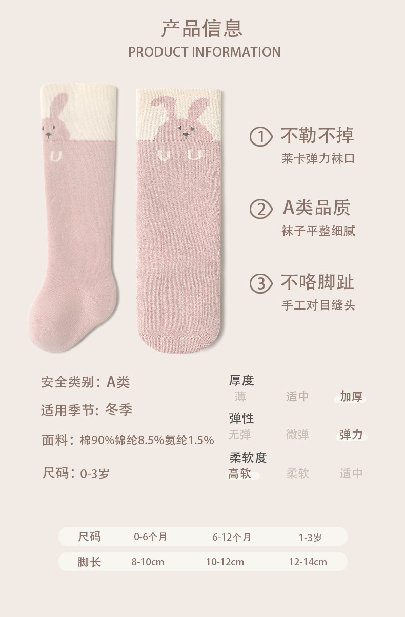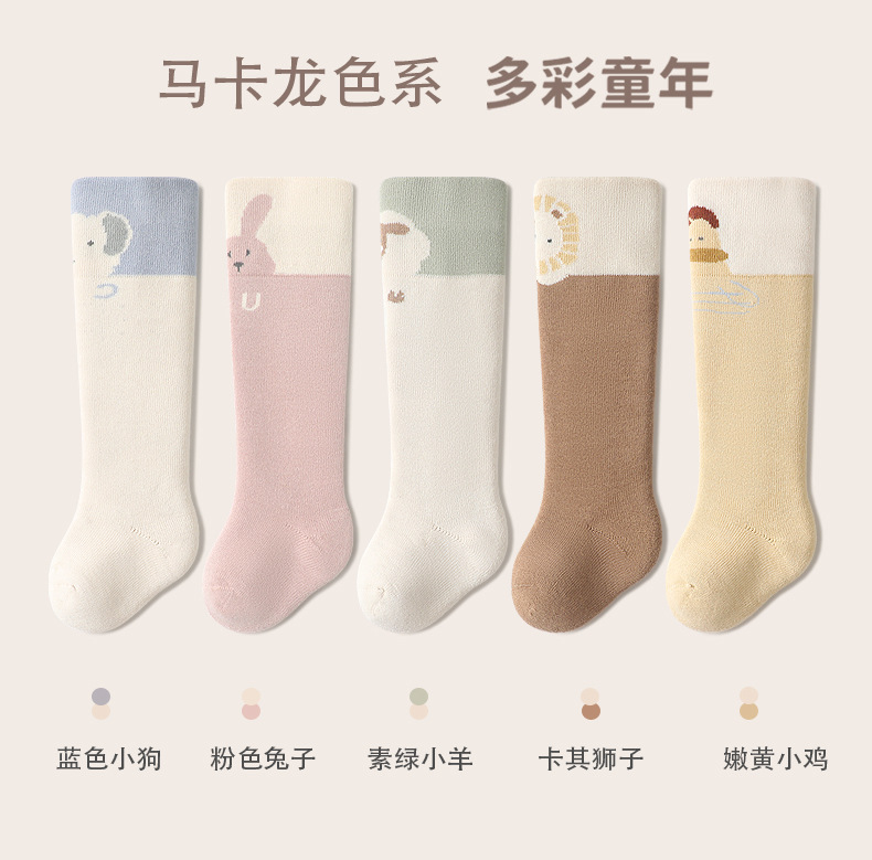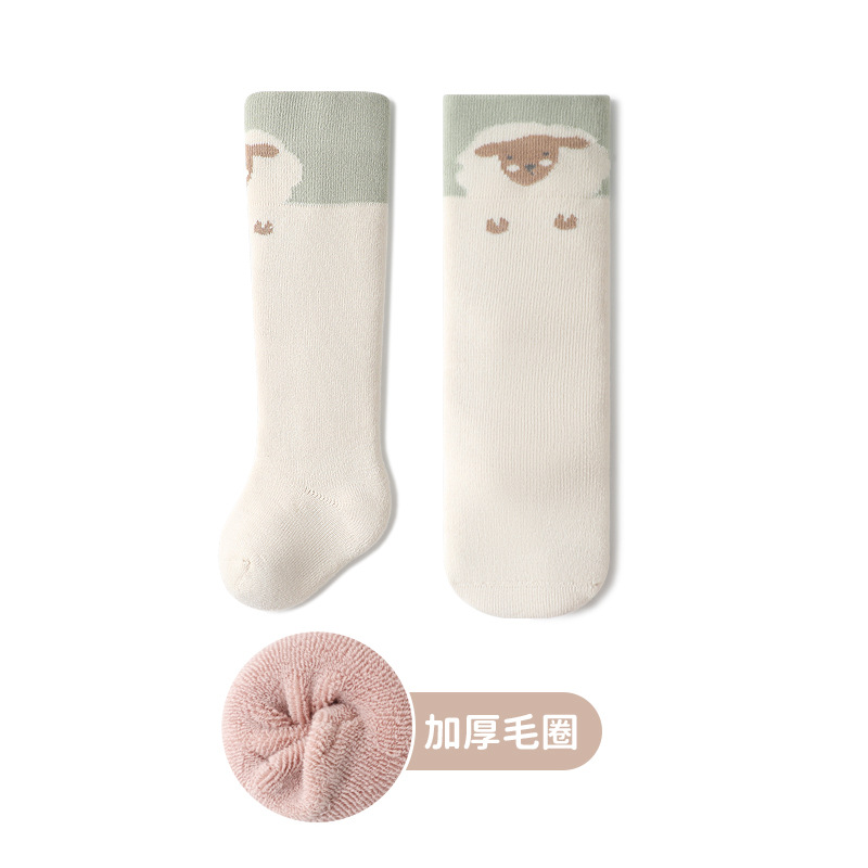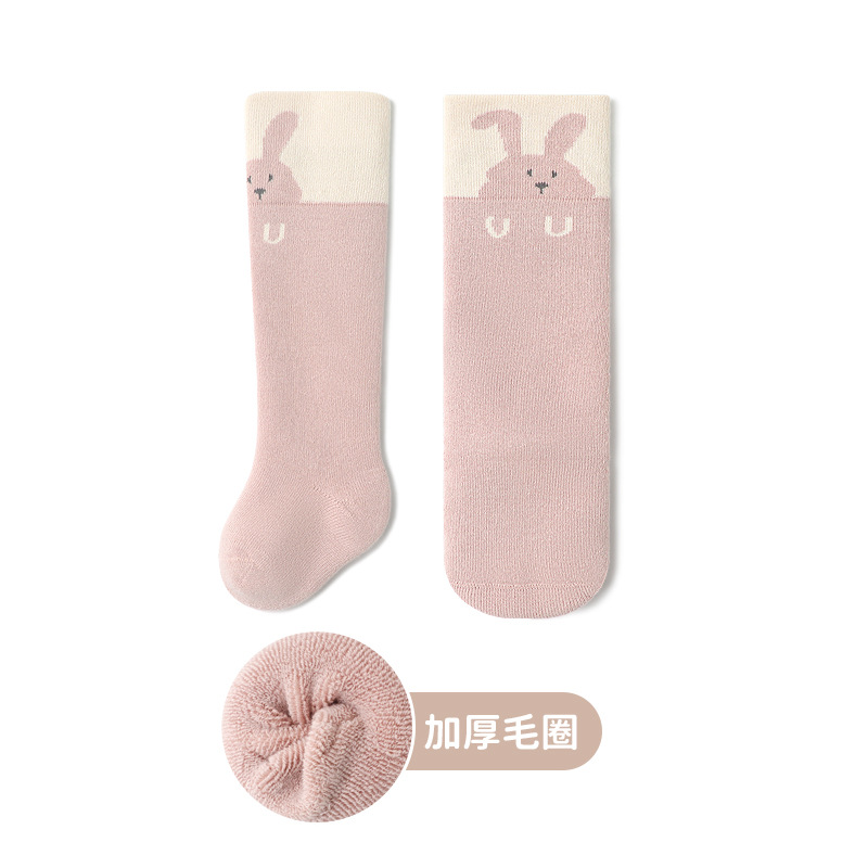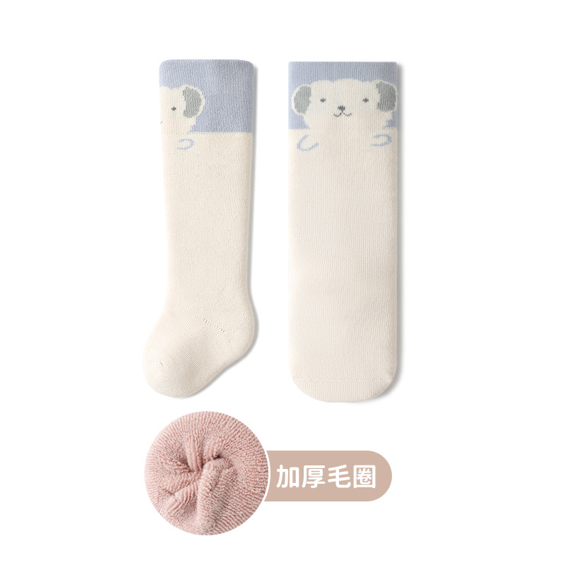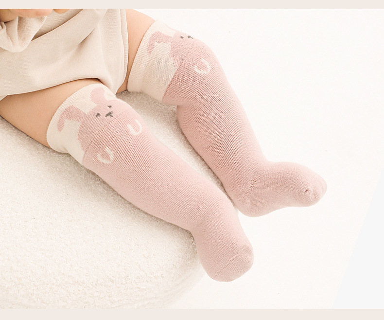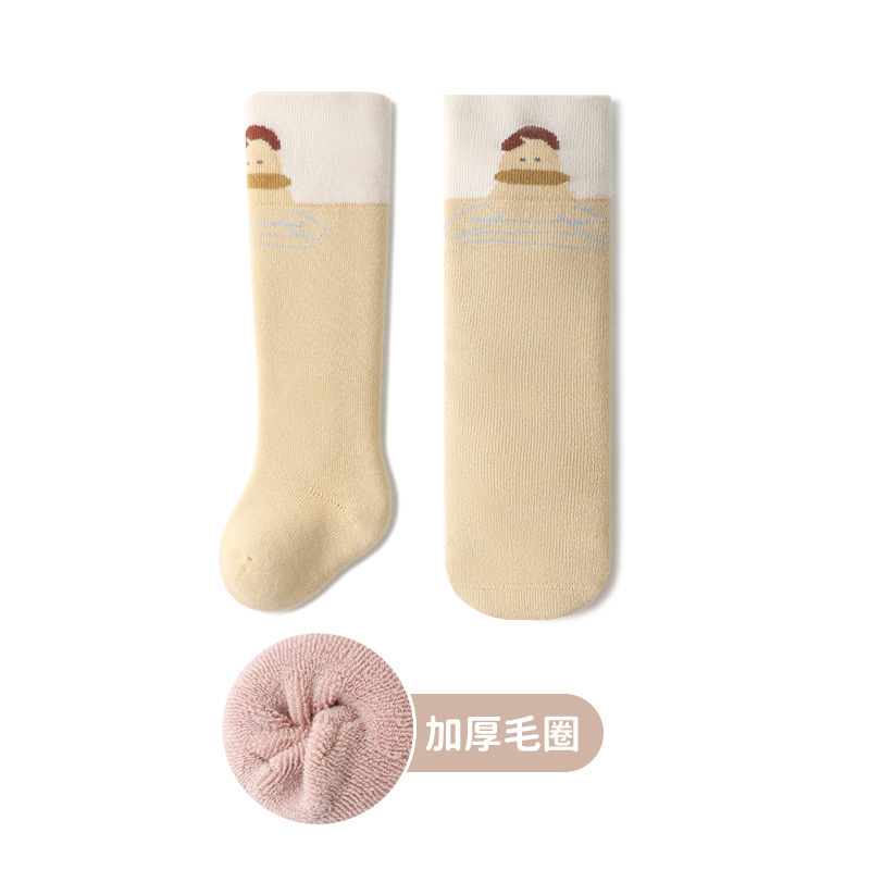 2024 겨울 신제품 신생아 만화 긴 두꺼운 테리 아기 양말, 뼈없는 헐렁한 하이컷 면 양말