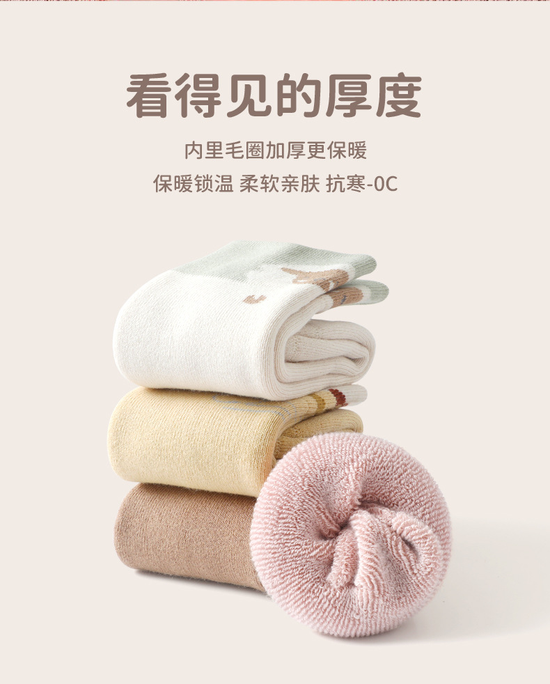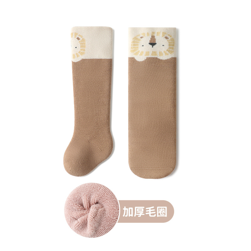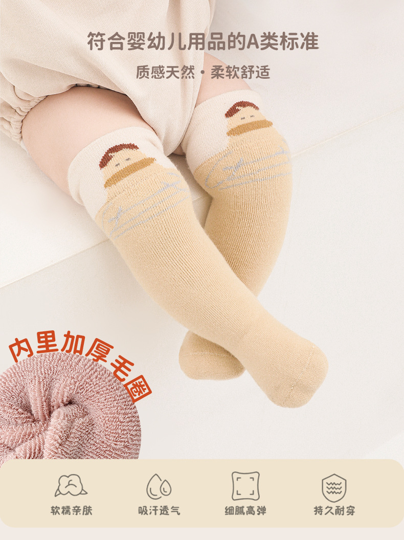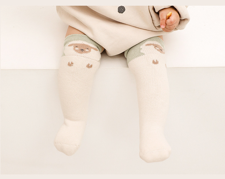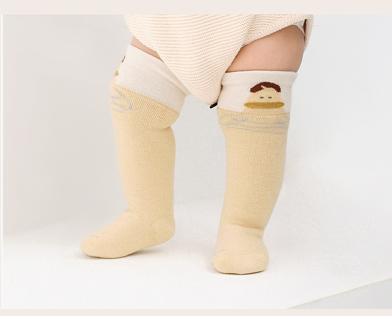 2024 겨울 신제품 신생아 만화 긴 두꺼운 테리 아기 양말, 뼈없는 헐렁한 하이컷 면 양말스토어 가기