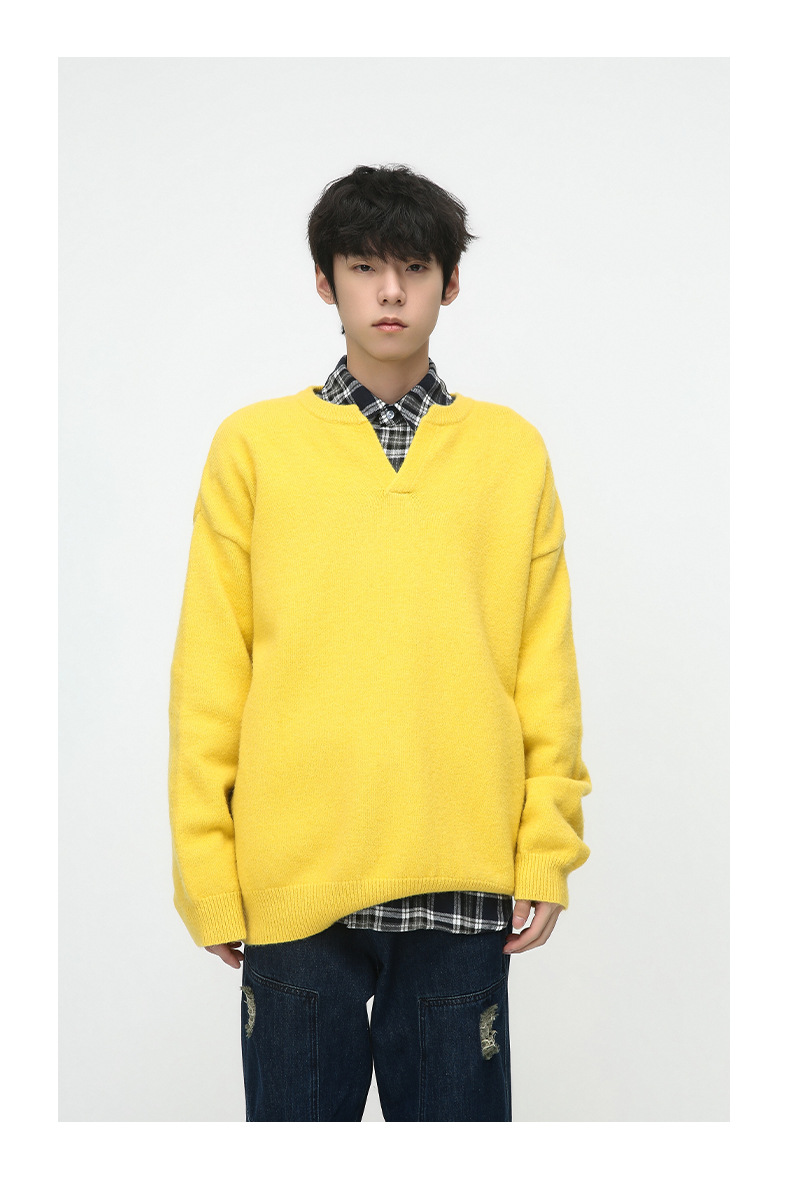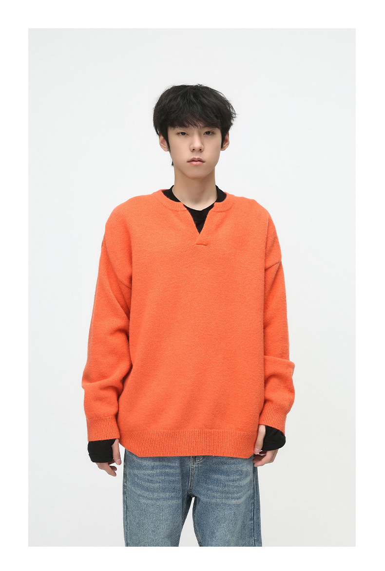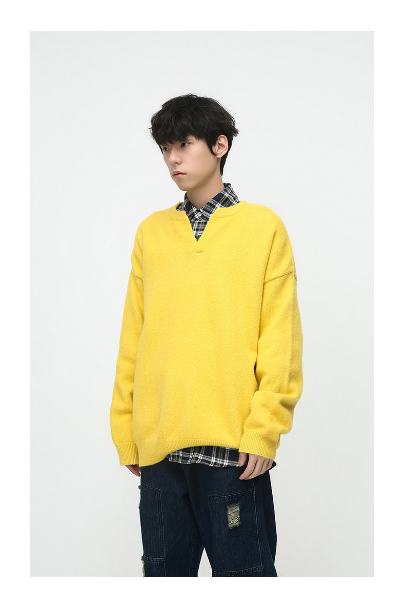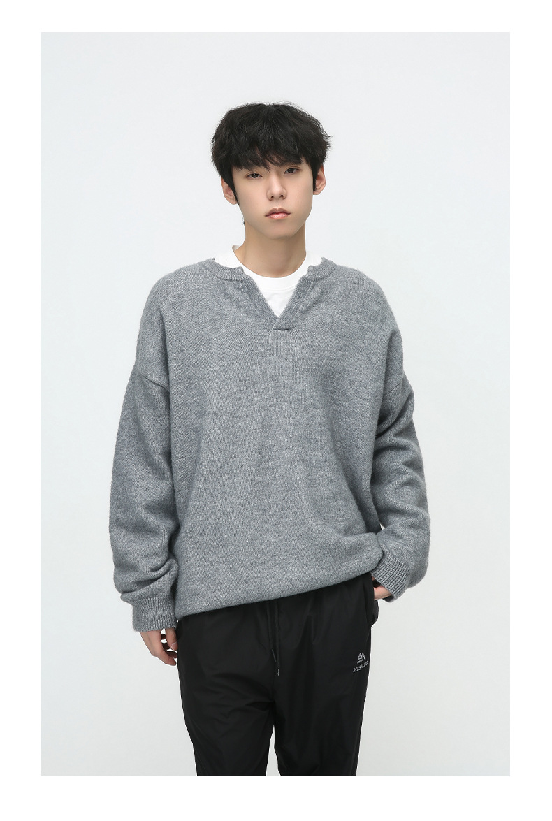 MTLCLOTHES 남성 의류 | 2023 가을 새로운 한국 작은 V-목 게으른 바람 단색 풀오버 스웨터 재킷