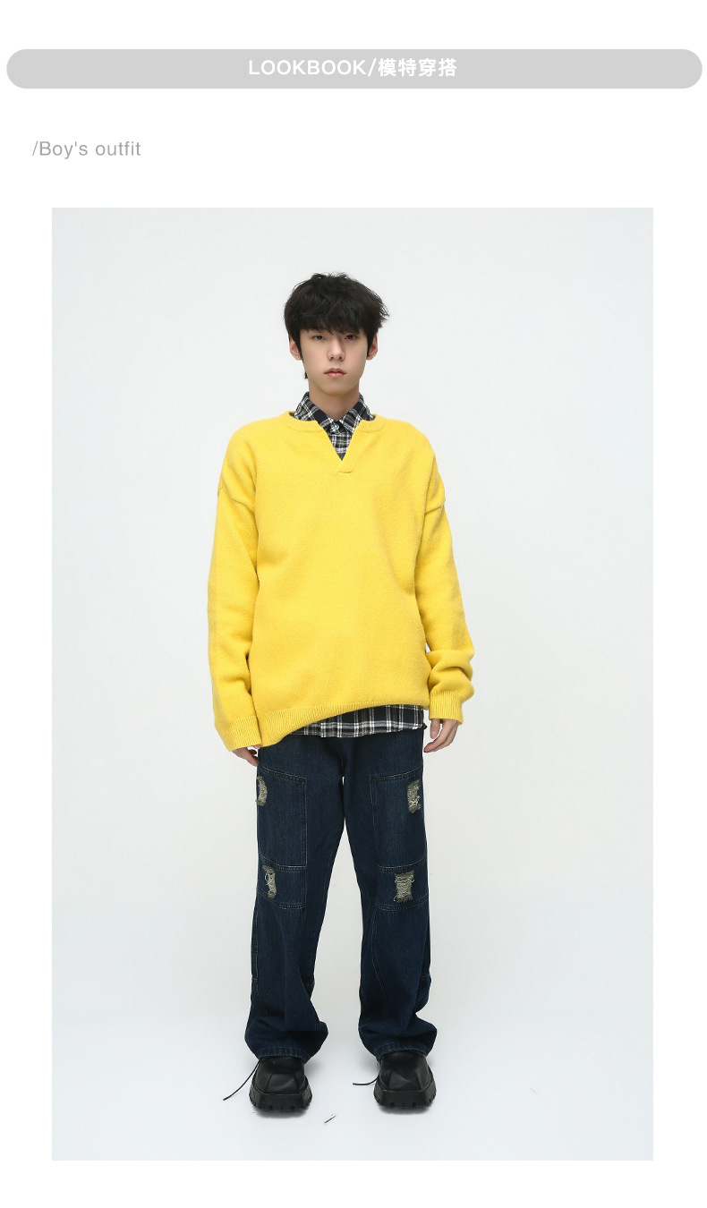 MTLCLOTHES 남성 의류 | 2023 가을 새로운 한국 작은 V-목 게으른 바람 단색 풀오버 스웨터 재킷스토어 가기
