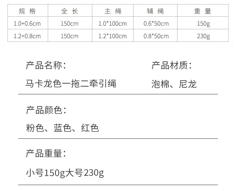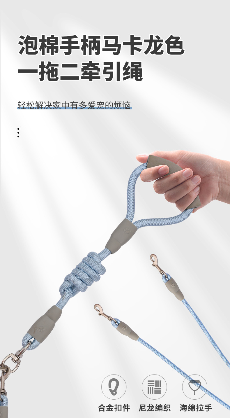 개 견인 로프 워킹 로프 중형 더블 개 체인 이중 견인 1 드래그 2 견인 벨트 애완 동물 용품 도매