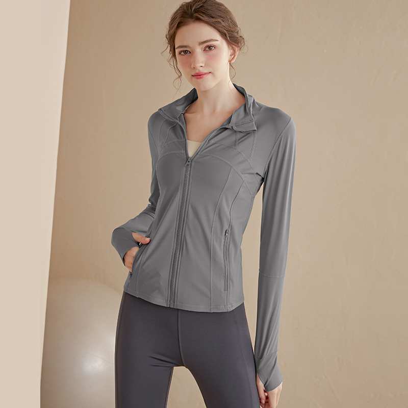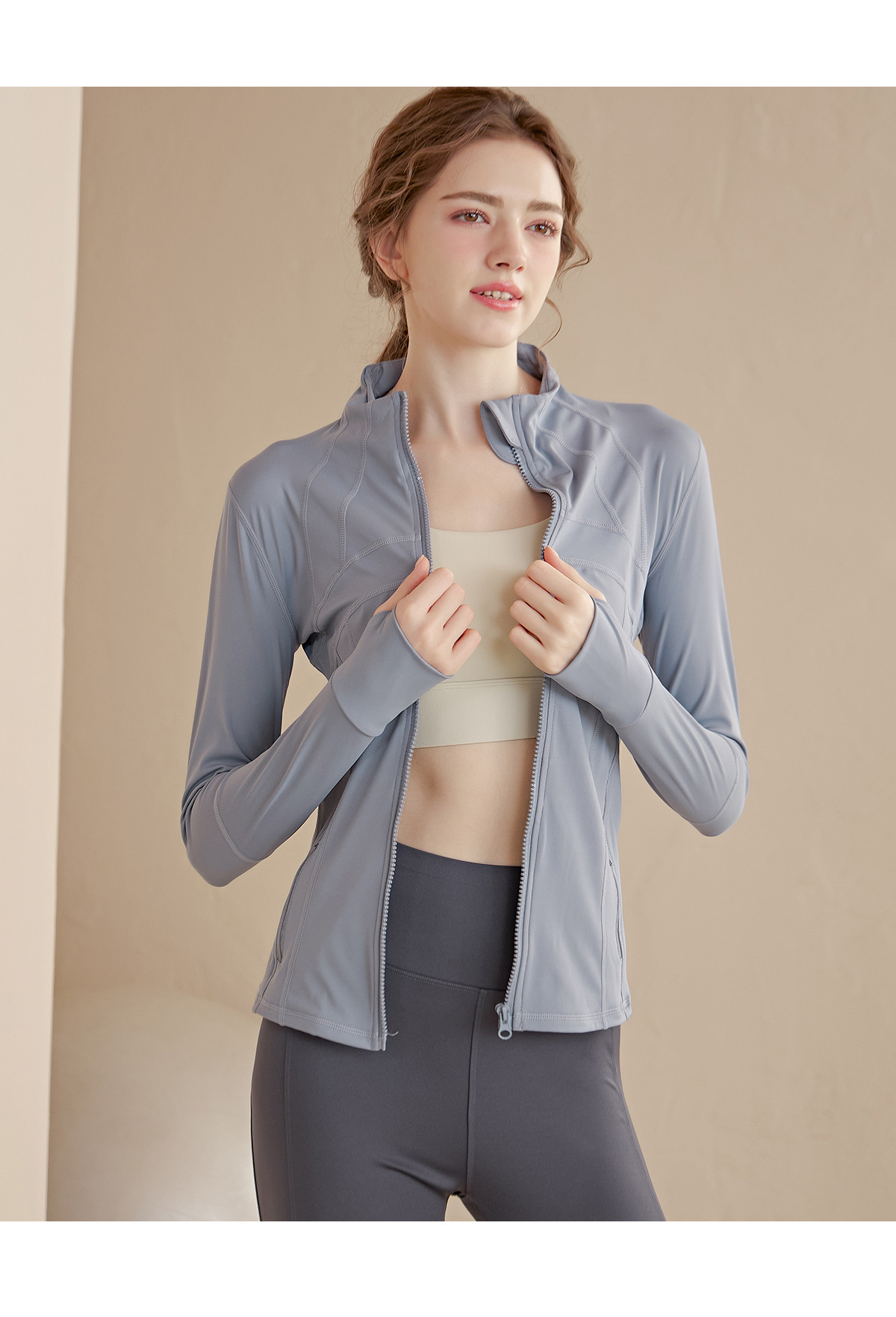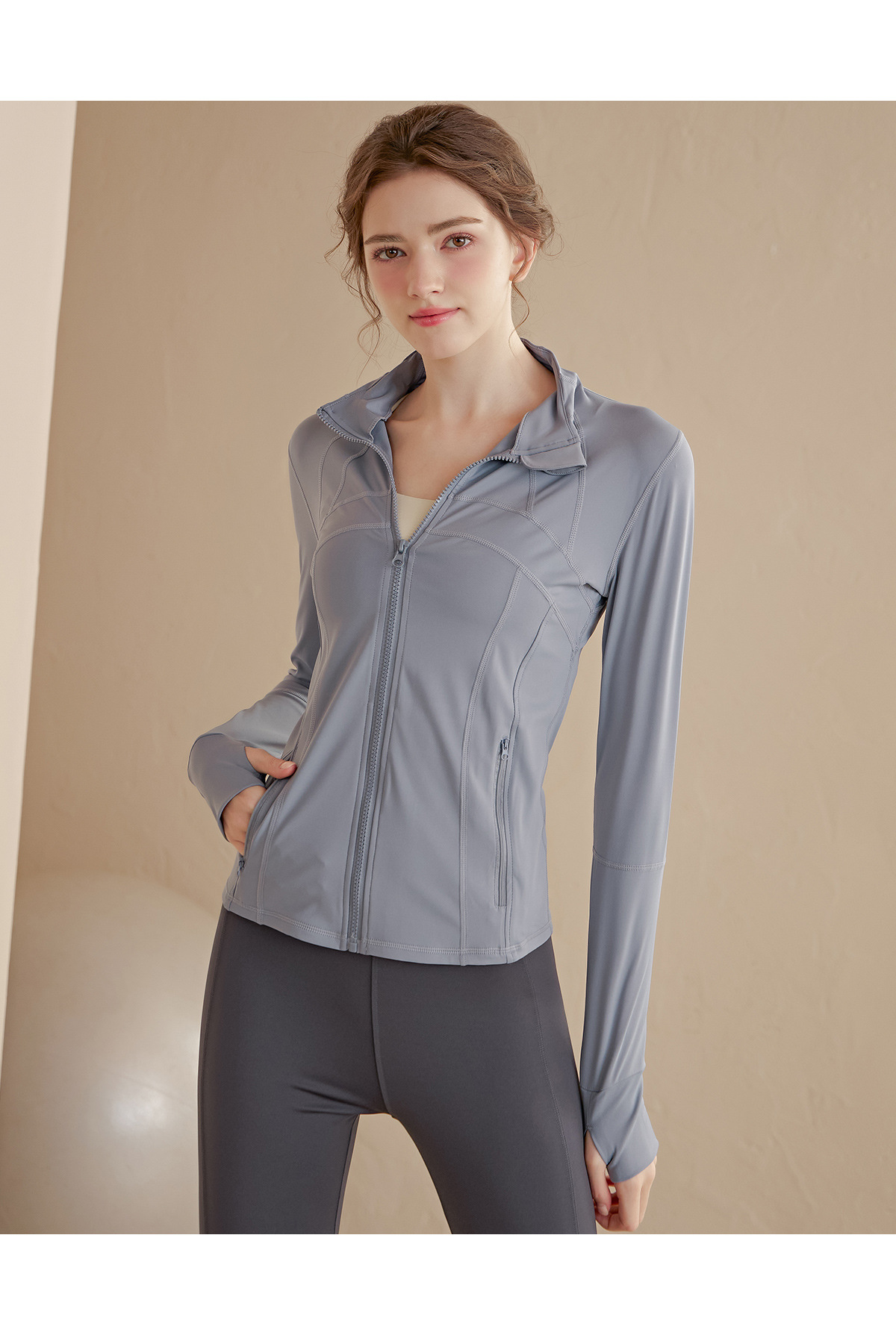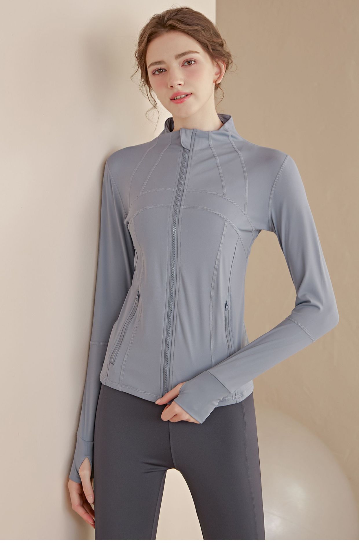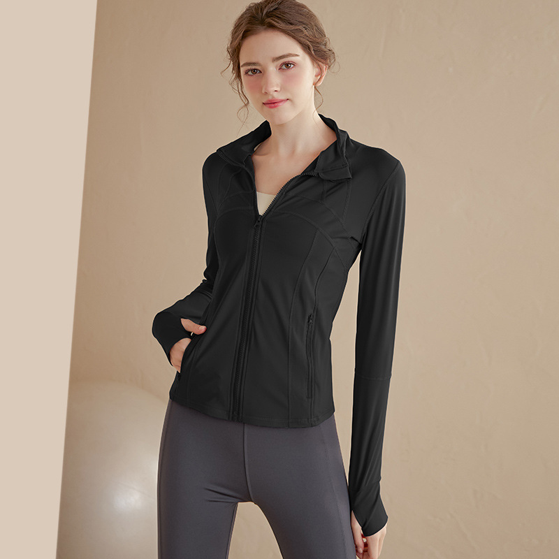 2025 신상 스탠드 칼라 지퍼 요가복 여성용 타이트 핏 사이클링 속건 스포츠 상의 긴팔 피트니스복스토어 가기