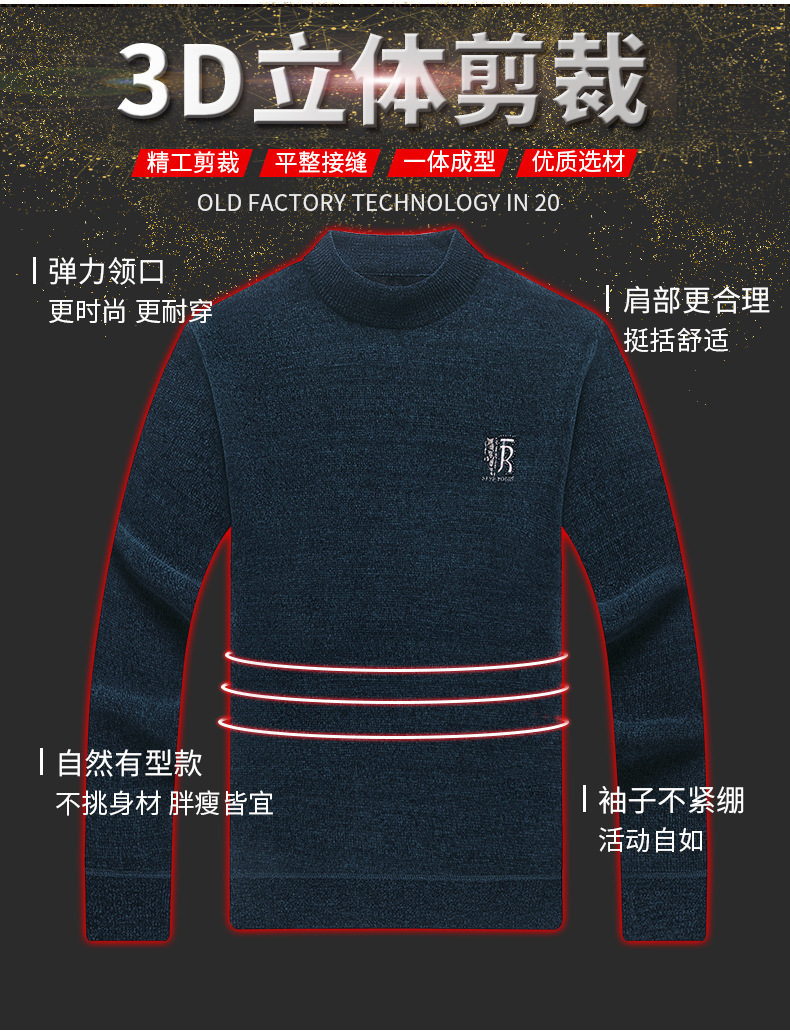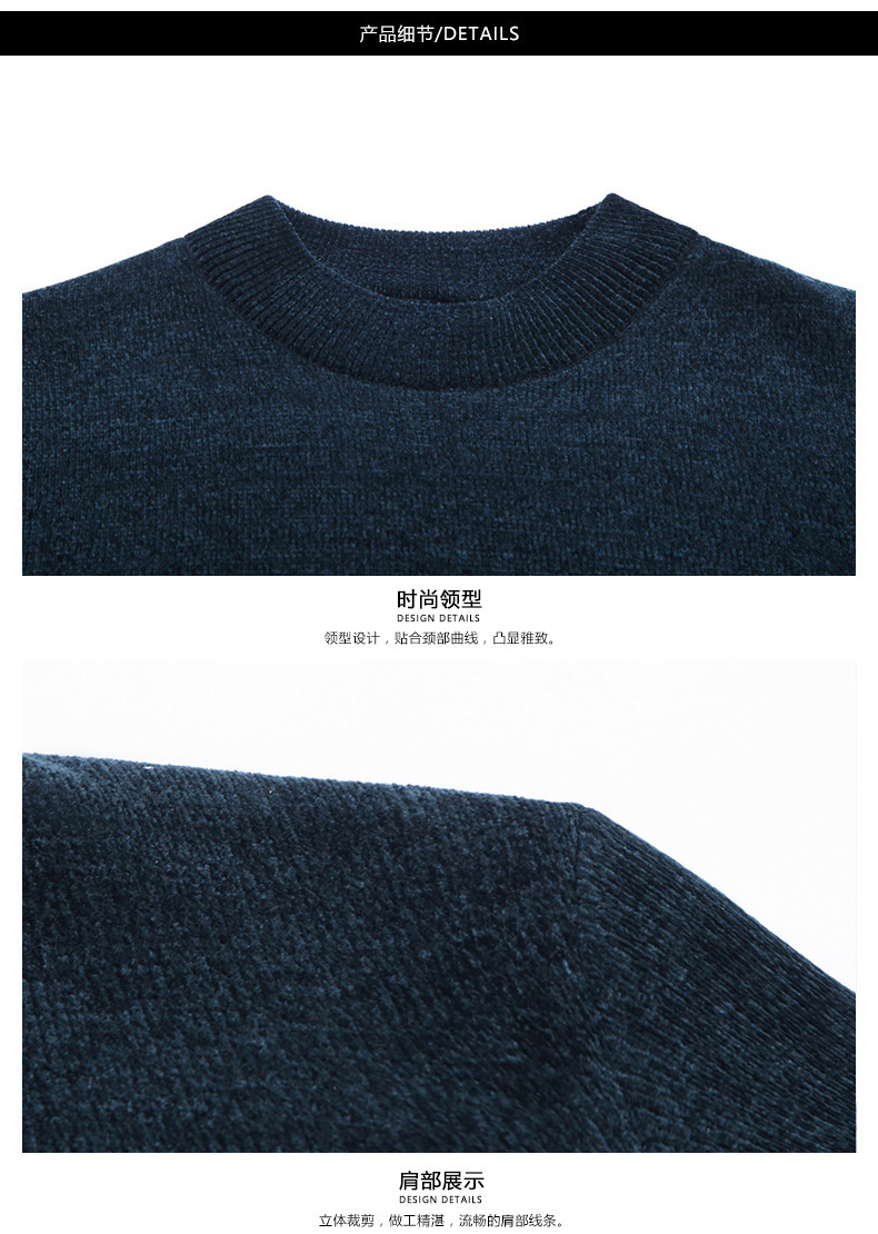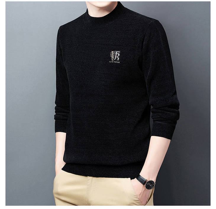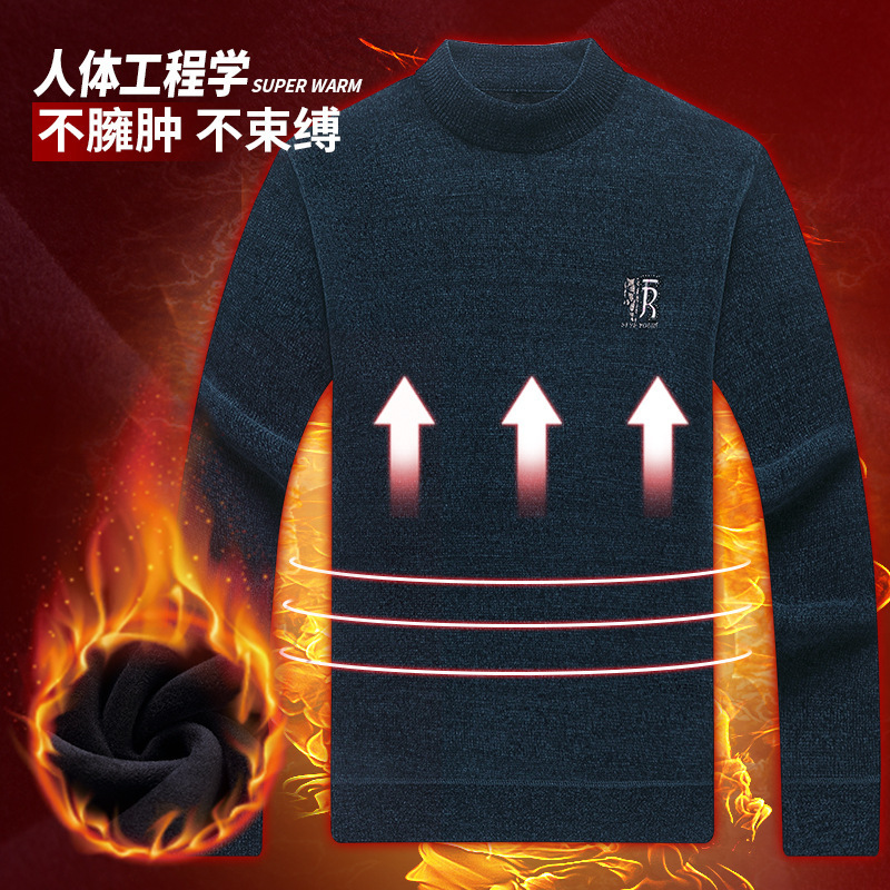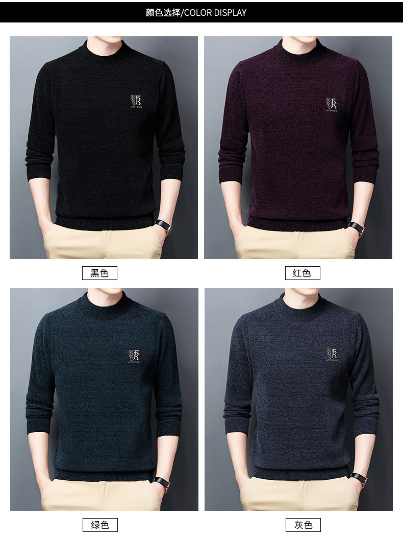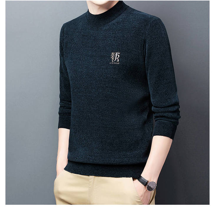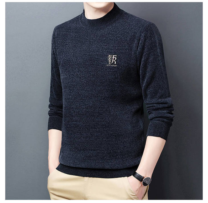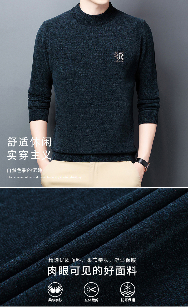 남자의 기모 두꺼운 셔닐 실 남자의 니트웨어 가을과 겨울 새로운 하프 하이 넥 두꺼운 따뜻한 기본 자수 스웨터