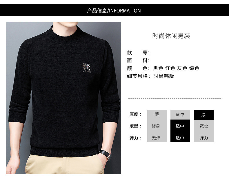 남자의 기모 두꺼운 셔닐 실 남자의 니트웨어 가을과 겨울 새로운 하프 하이 넥 두꺼운 따뜻한 기본 자수 스웨터스토어 가기