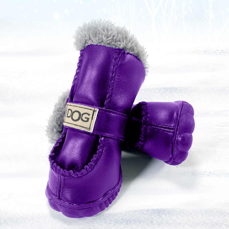 따뜻한 애완견 면화 신발 강아지 스노우 부츠 개 가죽 신발 플러스 벨벳 두꺼운 따뜻한 부츠 애완견 신발 미끄럼 방지