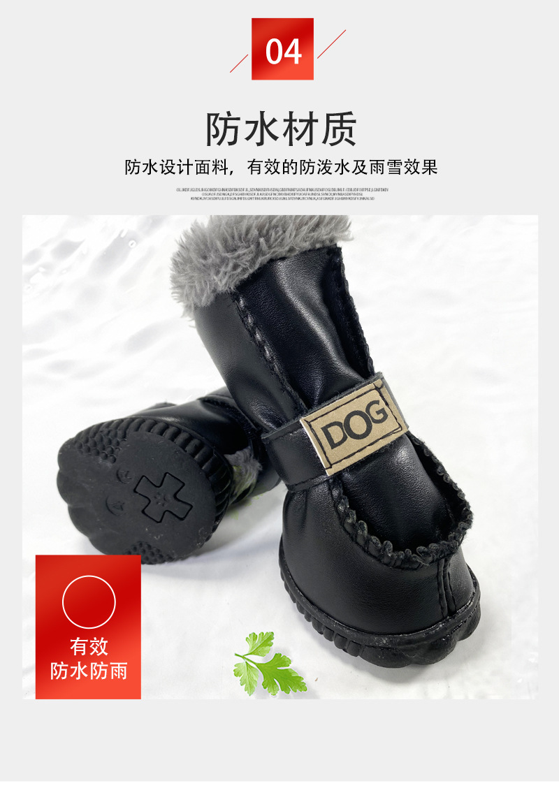 宠物狗鞋 雪地靴 加厚保暖 防水 防滑 橡胶鞋底 内里加绒 保暖狗狗鞋 一套四只