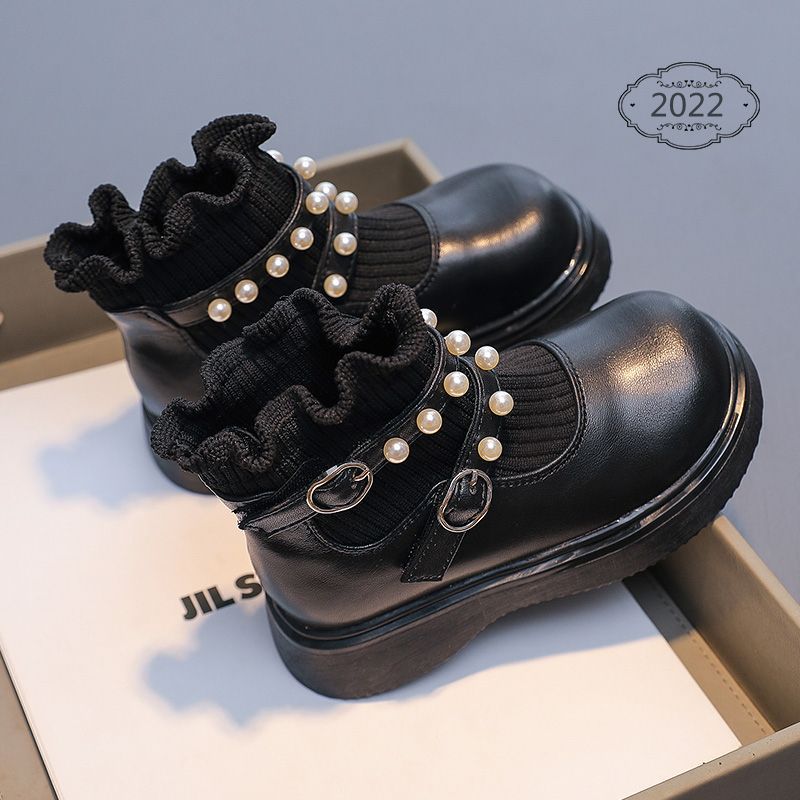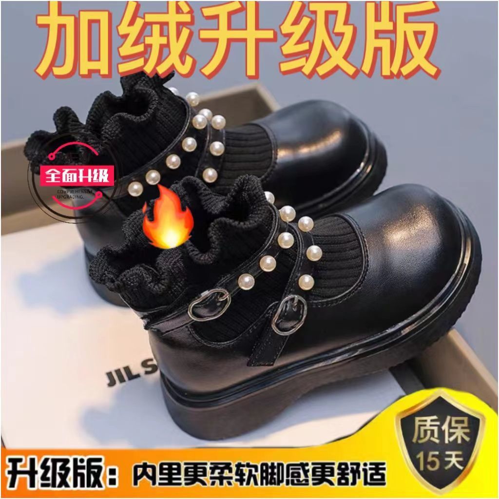 어린이 마틴 부츠 여자 짧은 부츠 2023 가을과 겨울 새 부츠 짧은 배럴 아기 양말 부츠 싱글 부츠 두 면화 신발 기모