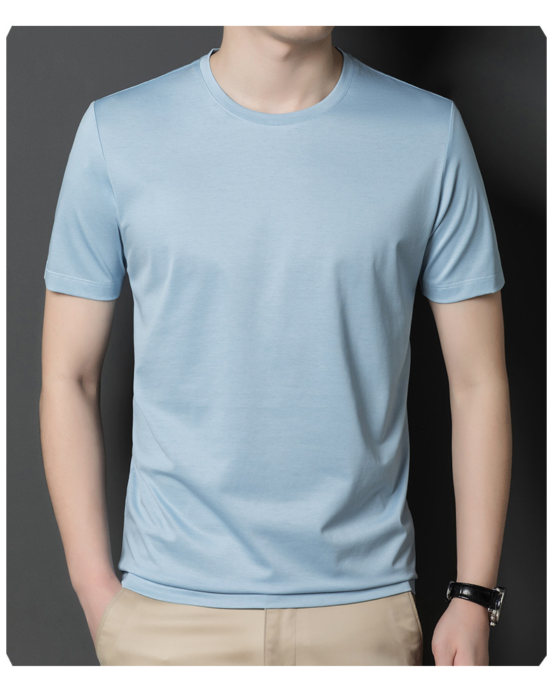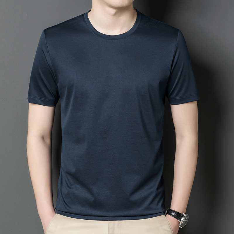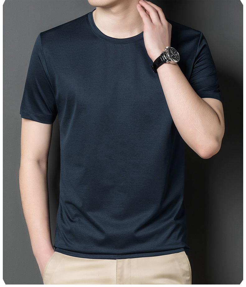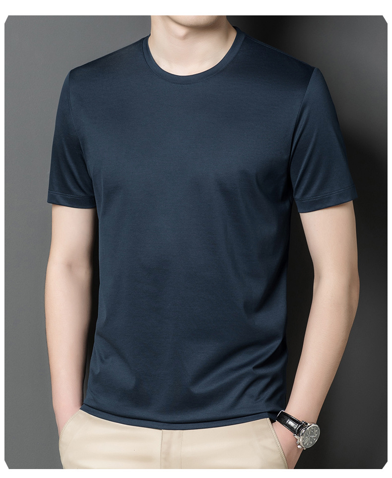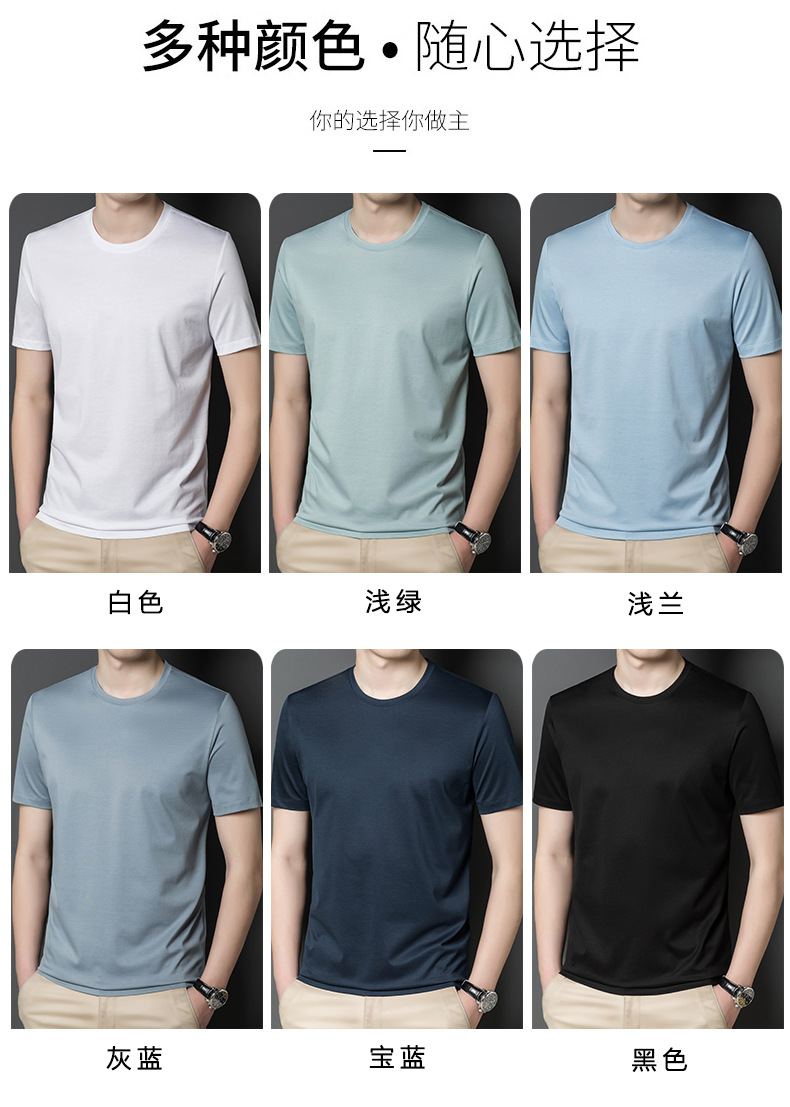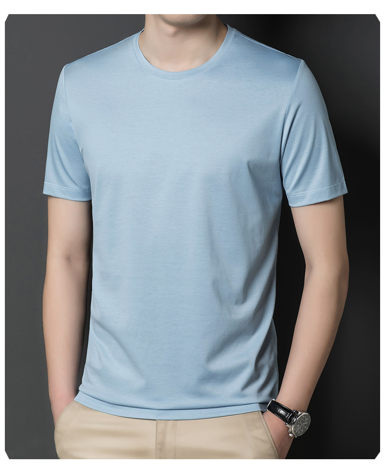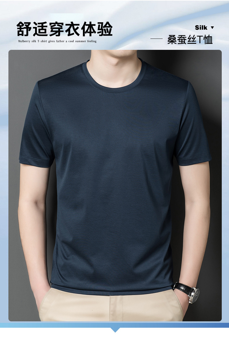 하이 엔드 뽕나무 실크 반팔 라운드 넥 티셔츠 남성 단색 조커 심플 여름 아이스 실크 반 소매 셔츠 도매스토어 가기