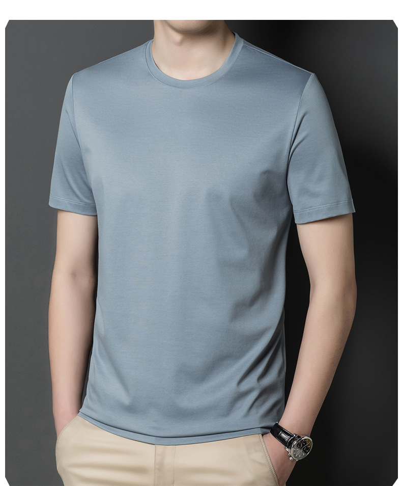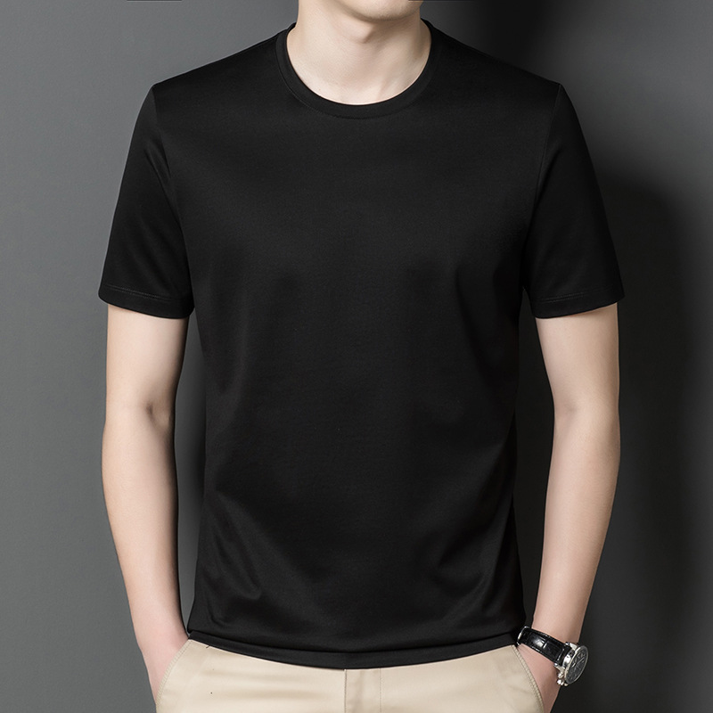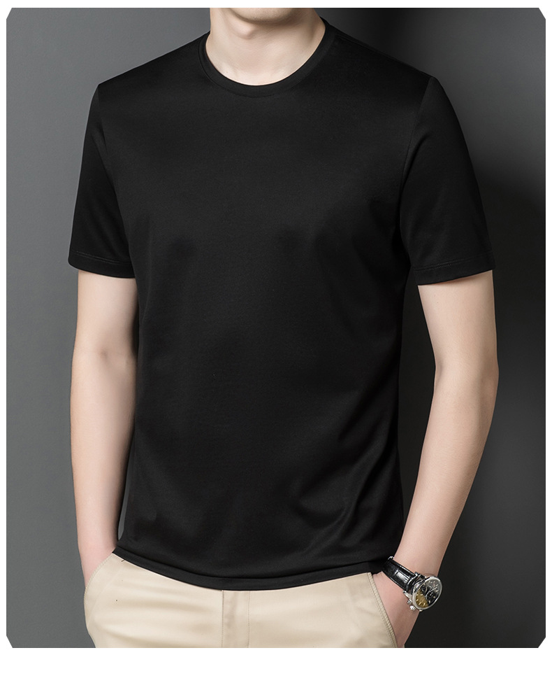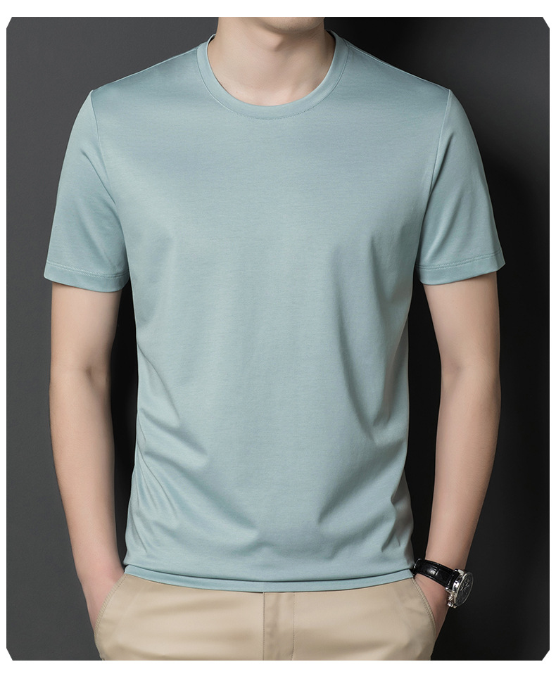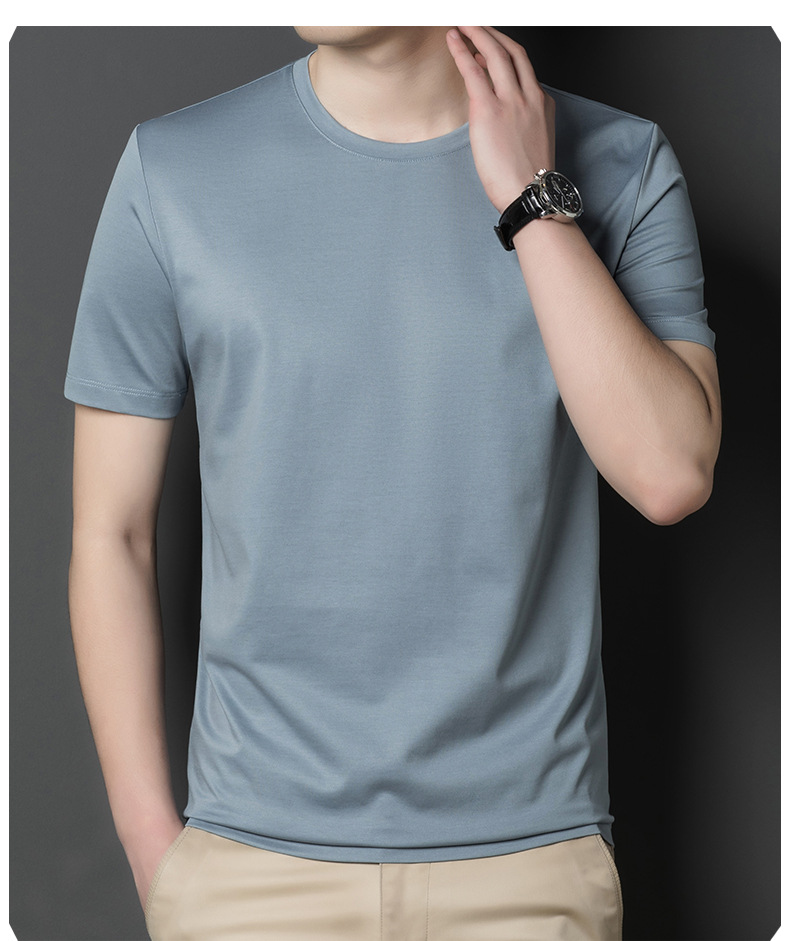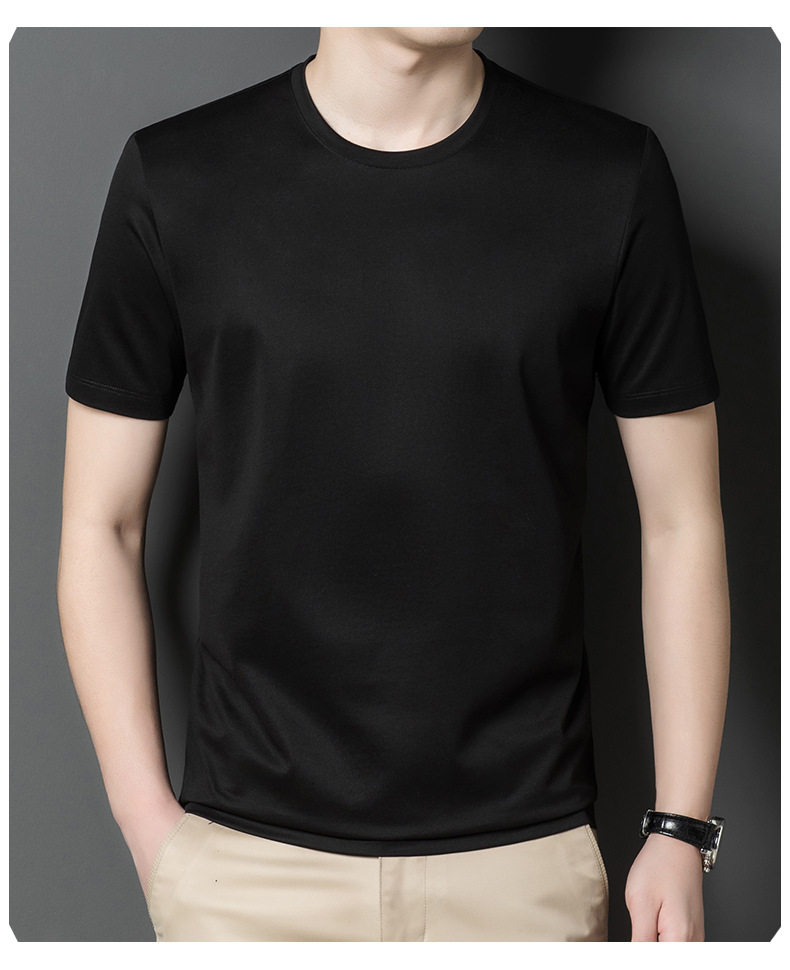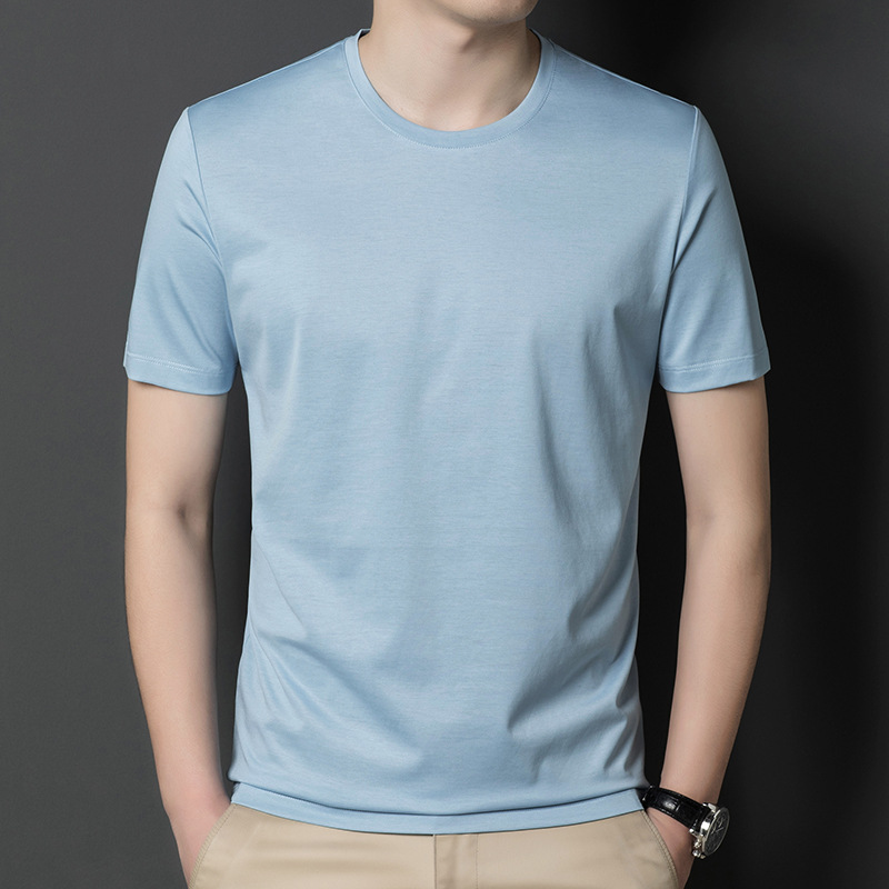 하이 엔드 뽕나무 실크 반팔 라운드 넥 티셔츠 남성 단색 조커 심플 여름 아이스 실크 반 소매 셔츠 도매스토어 가기