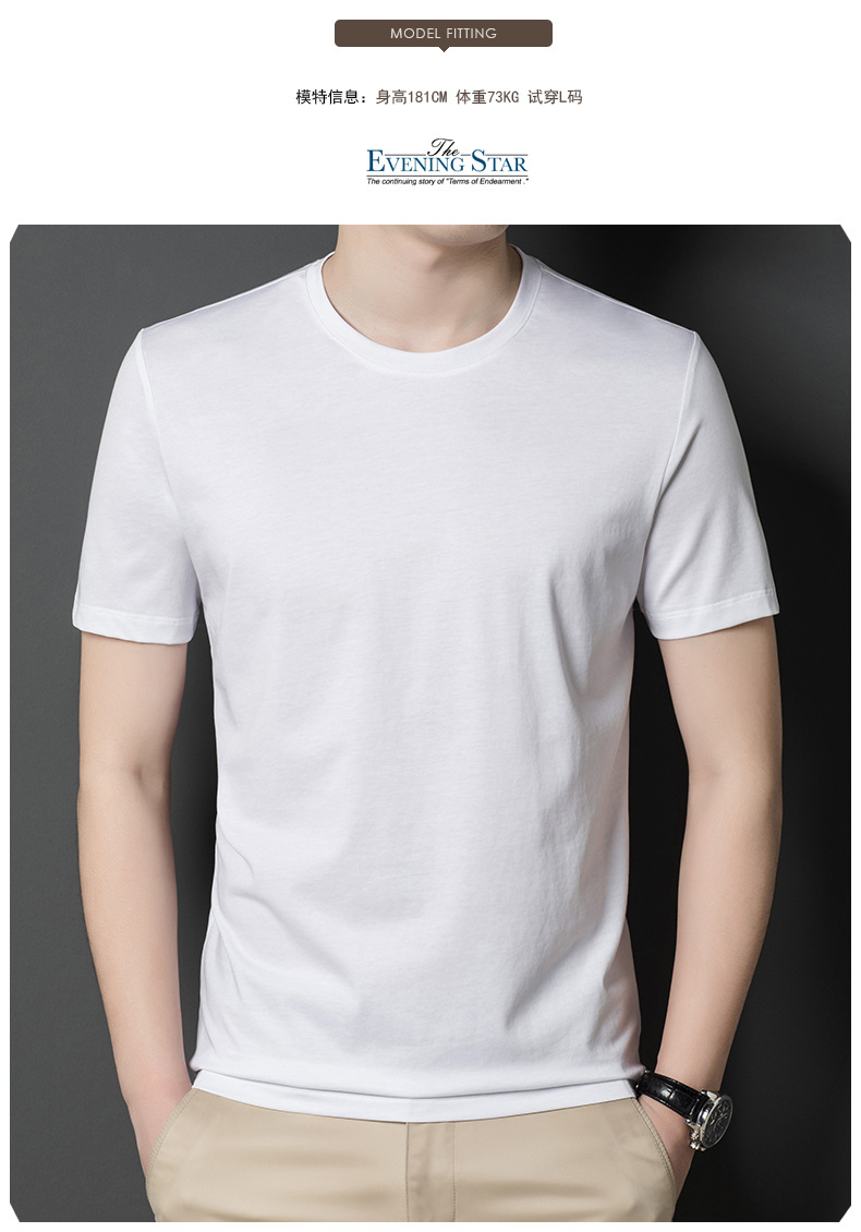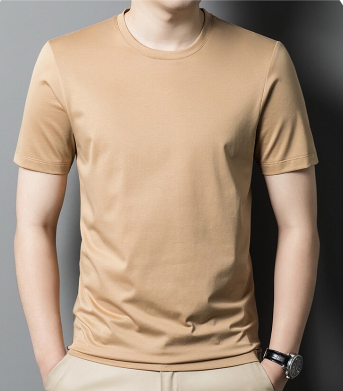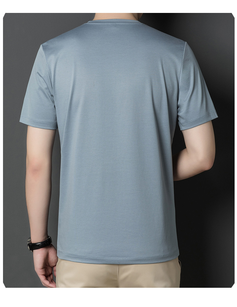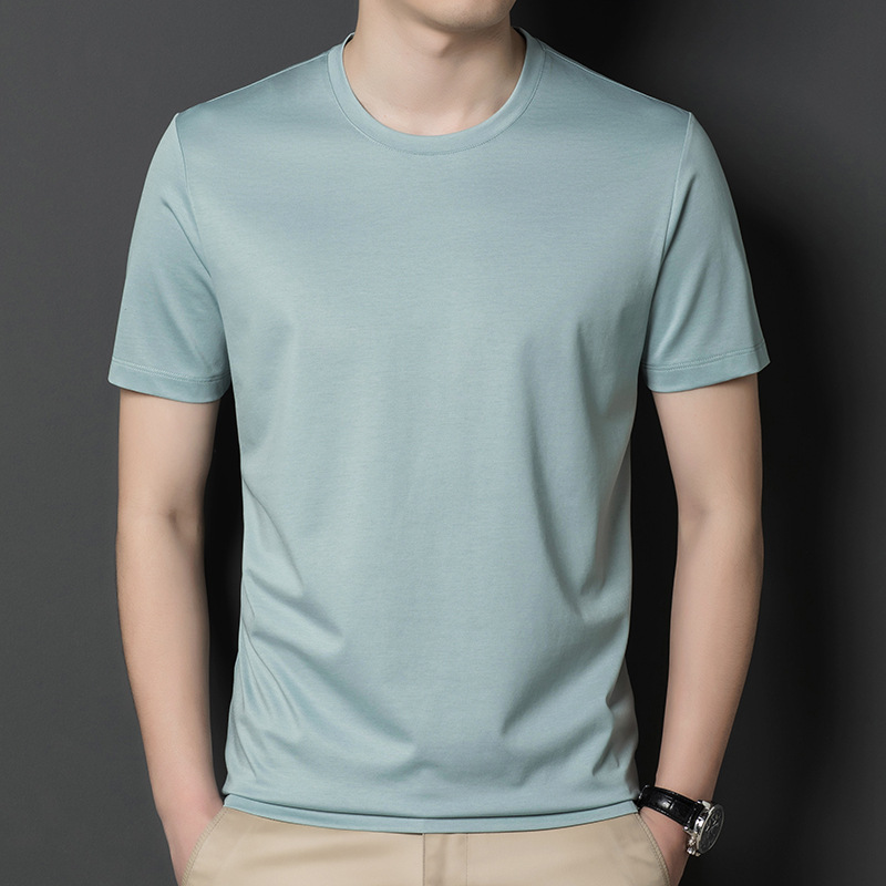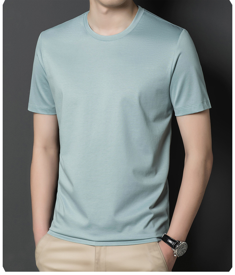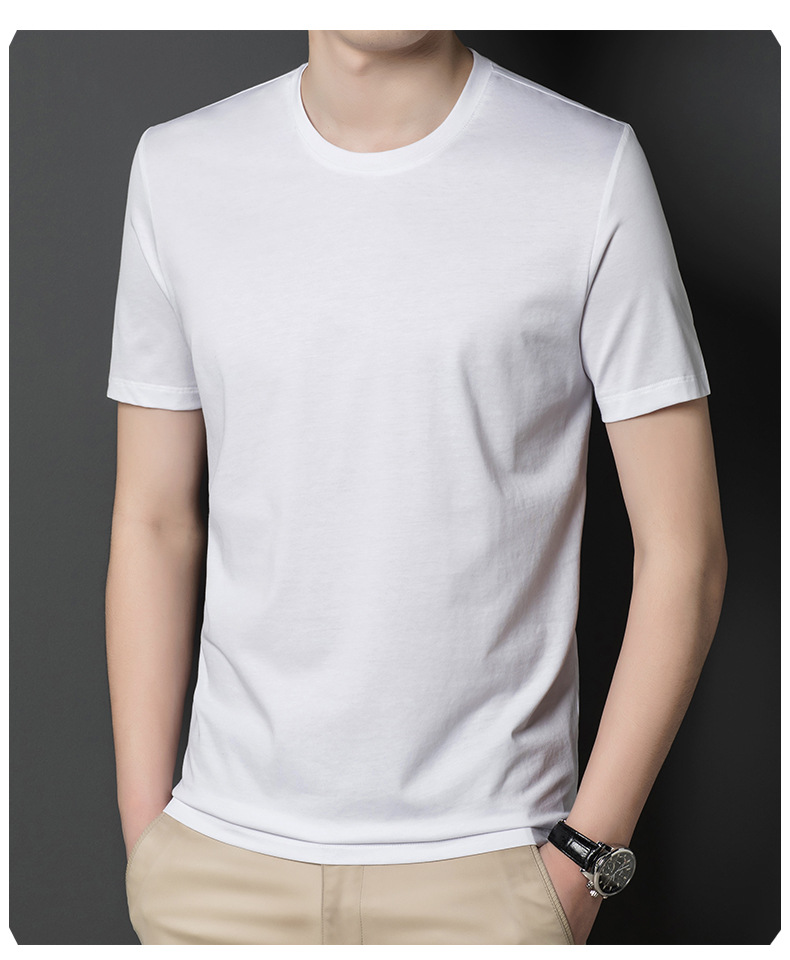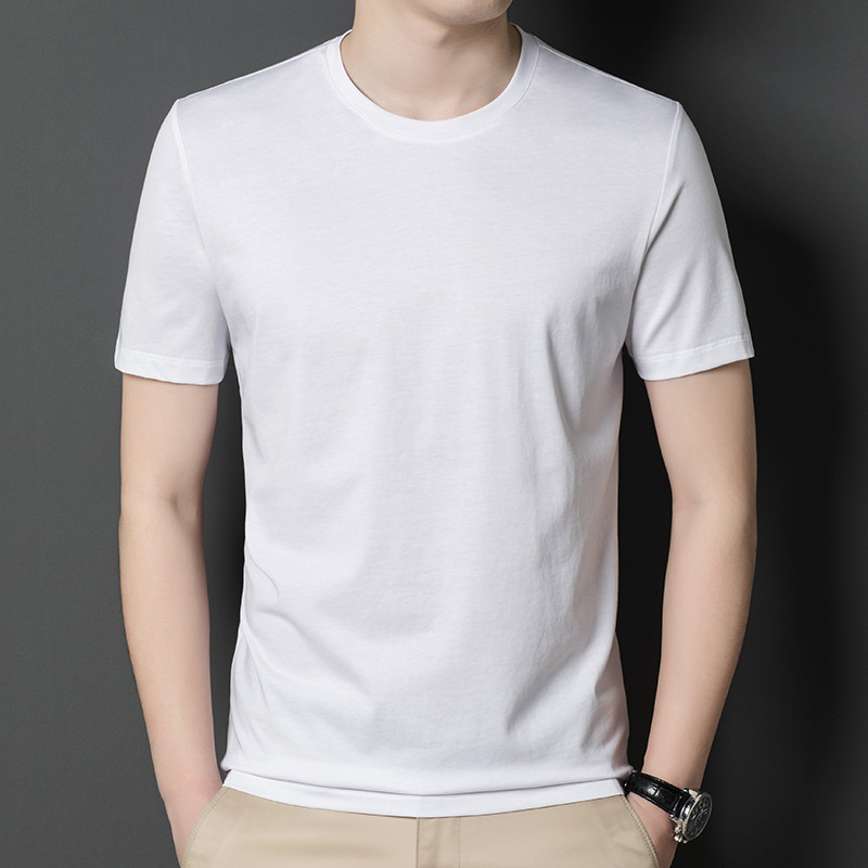 하이 엔드 뽕나무 실크 반팔 라운드 넥 티셔츠 남성 단색 조커 심플 여름 아이스 실크 반 소매 셔츠 도매스토어 가기