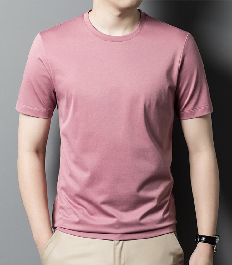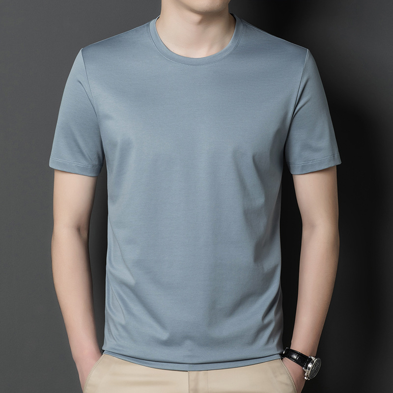 하이 엔드 뽕나무 실크 반팔 라운드 넥 티셔츠 남성 단색 조커 심플 여름 아이스 실크 반 소매 셔츠 도매