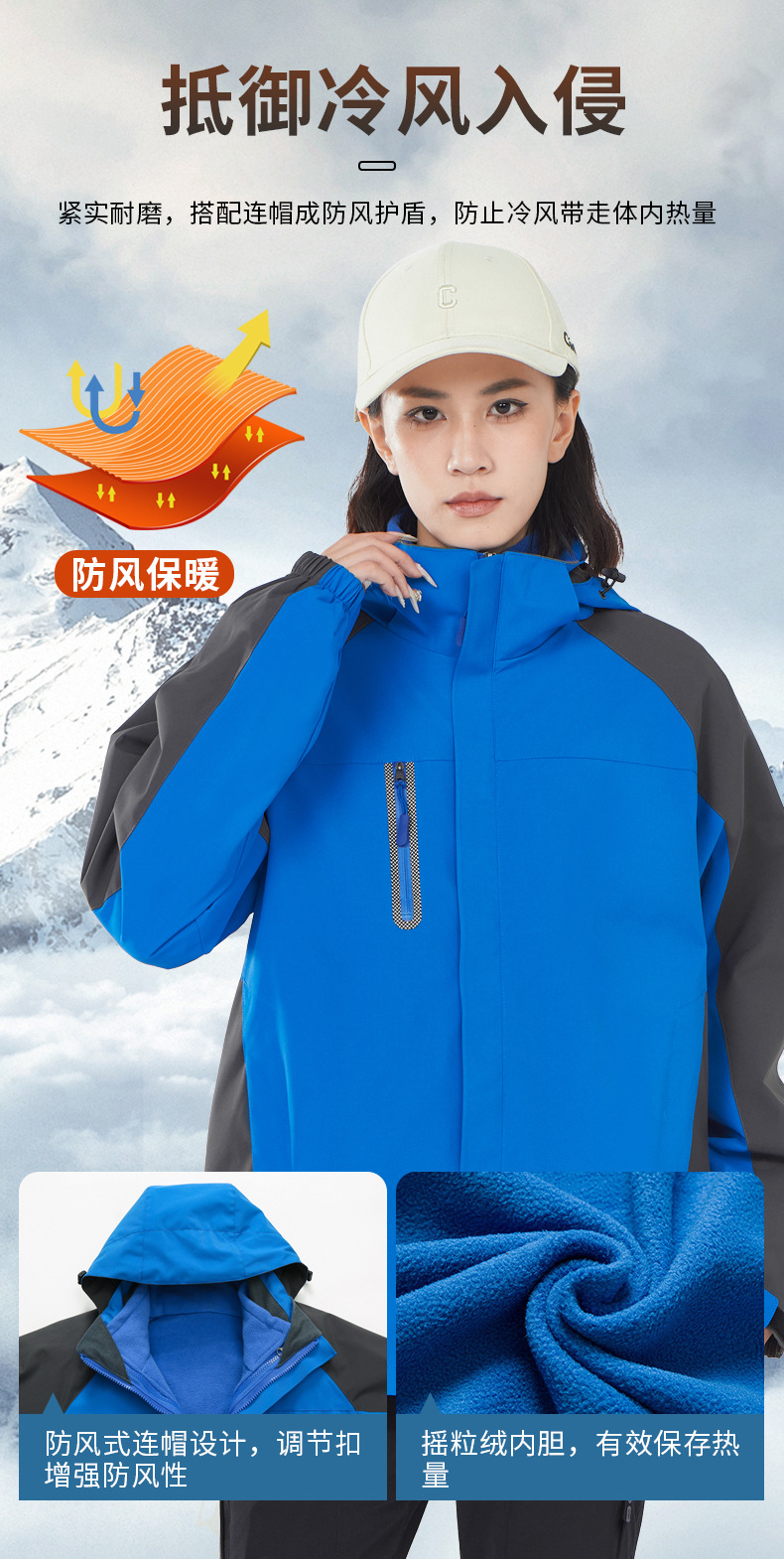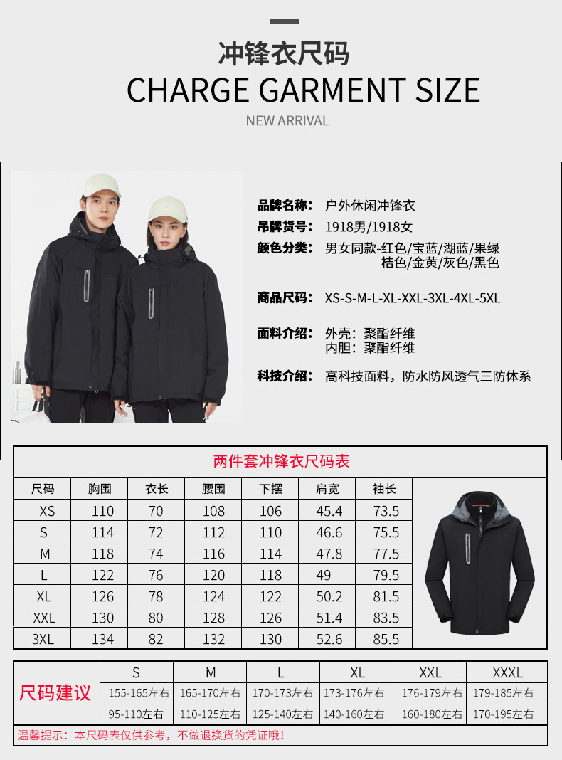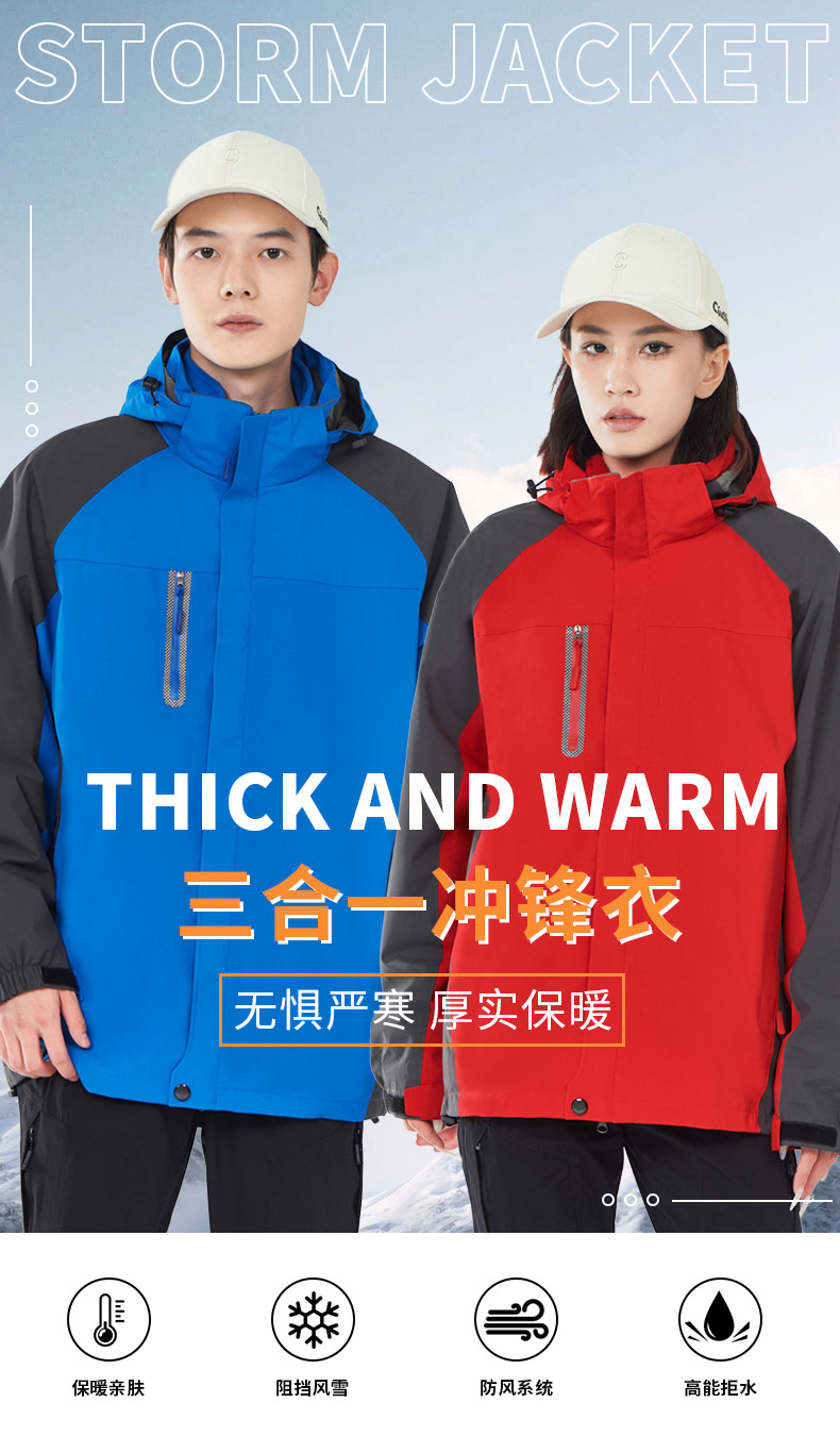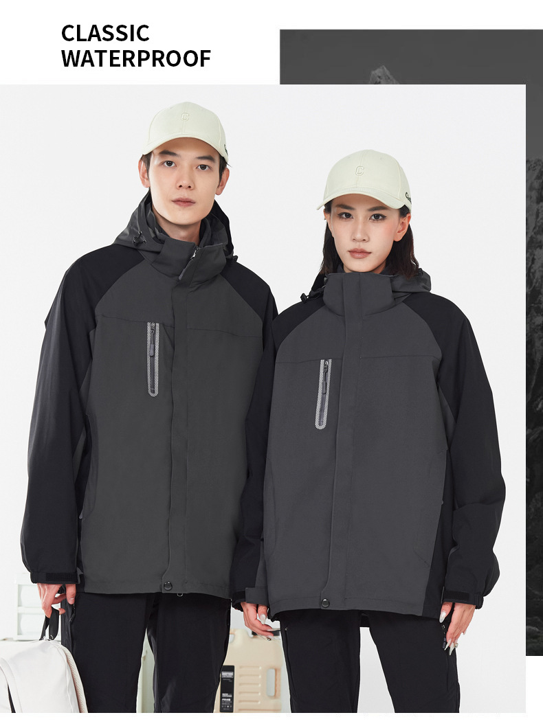 충전 의류 쓰리인원 남녀 가을 겨울 자켓 탈부착 라이너 방풍 따뜻한 투피스 툴링 로고 인쇄