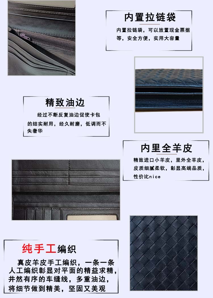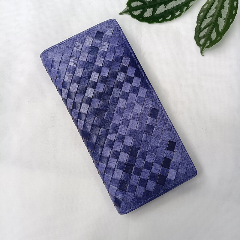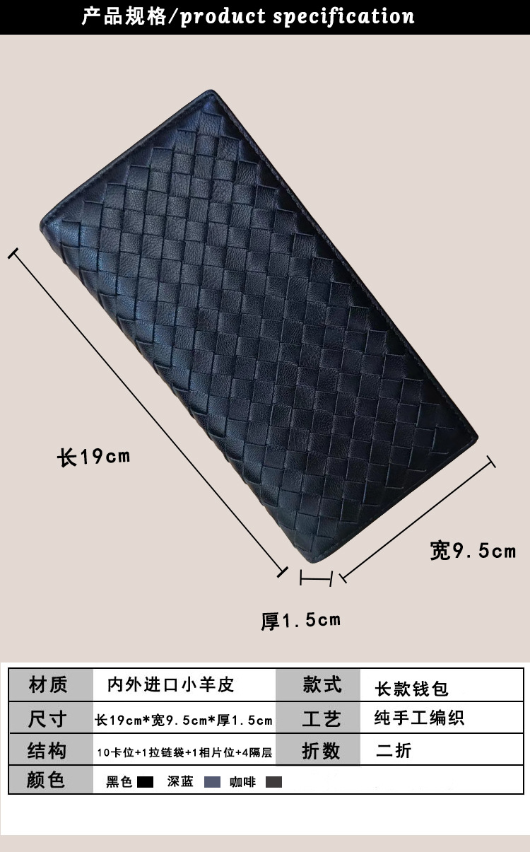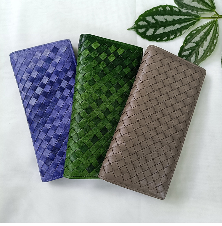 공장 도매 남녀 가죽 손으로 짠 긴 지갑 양가죽 얇은 지갑 대용량 카드 가방스토어 가기
